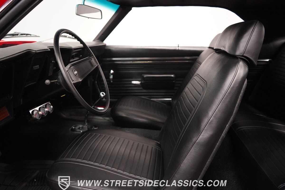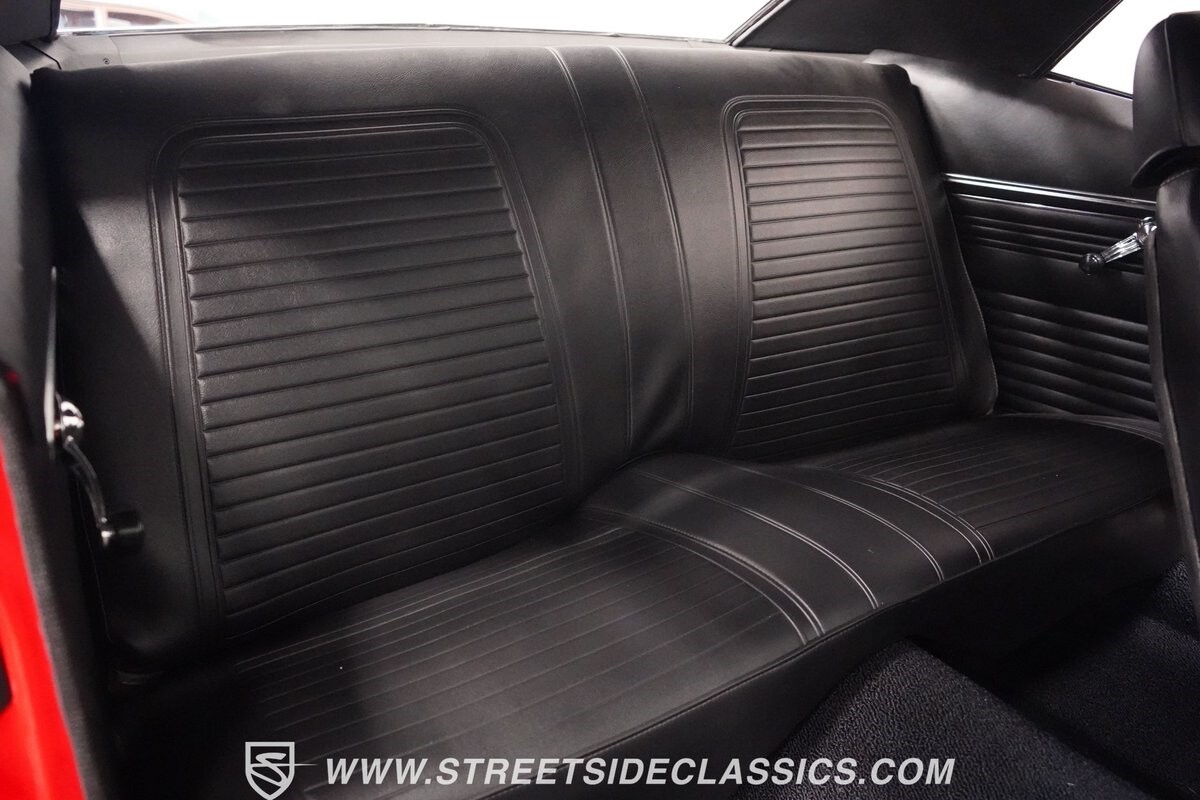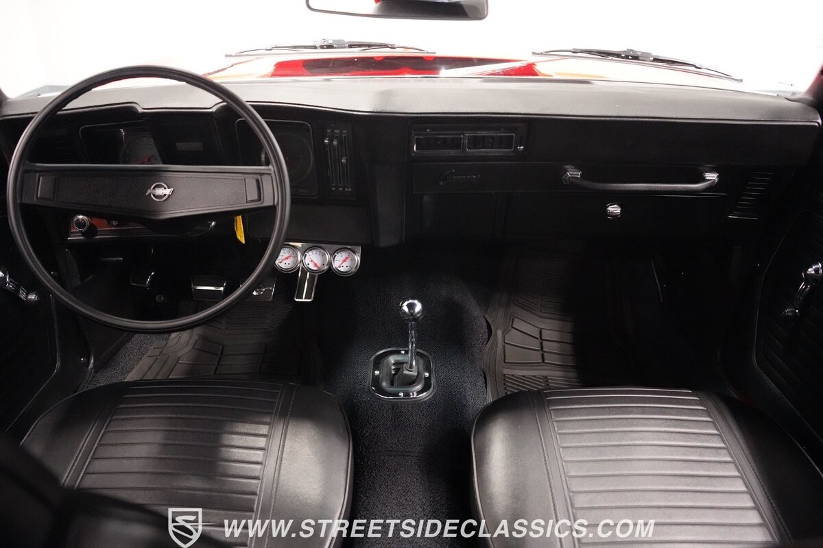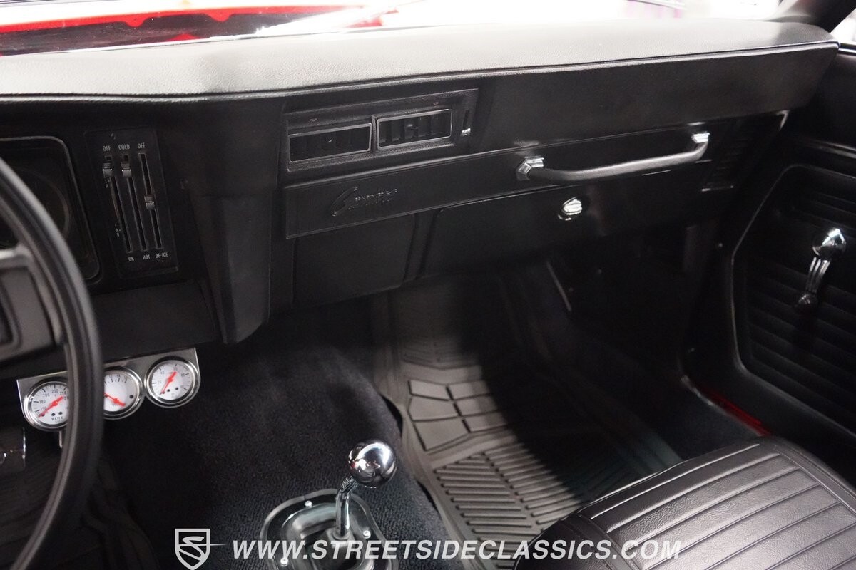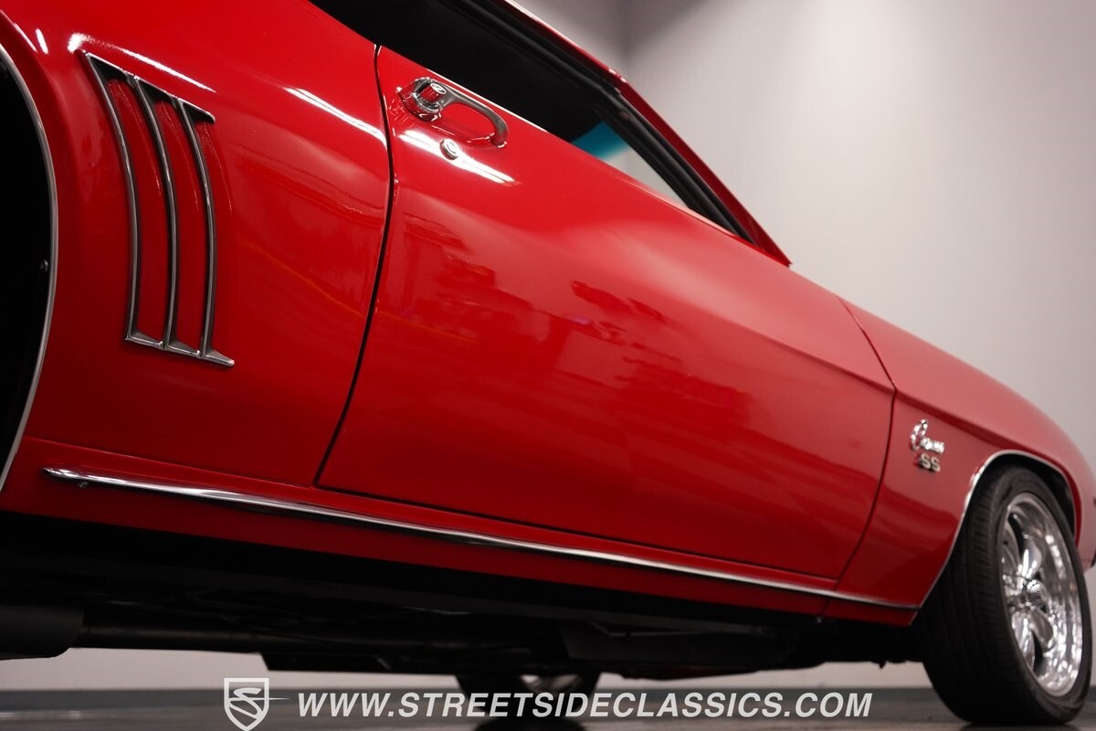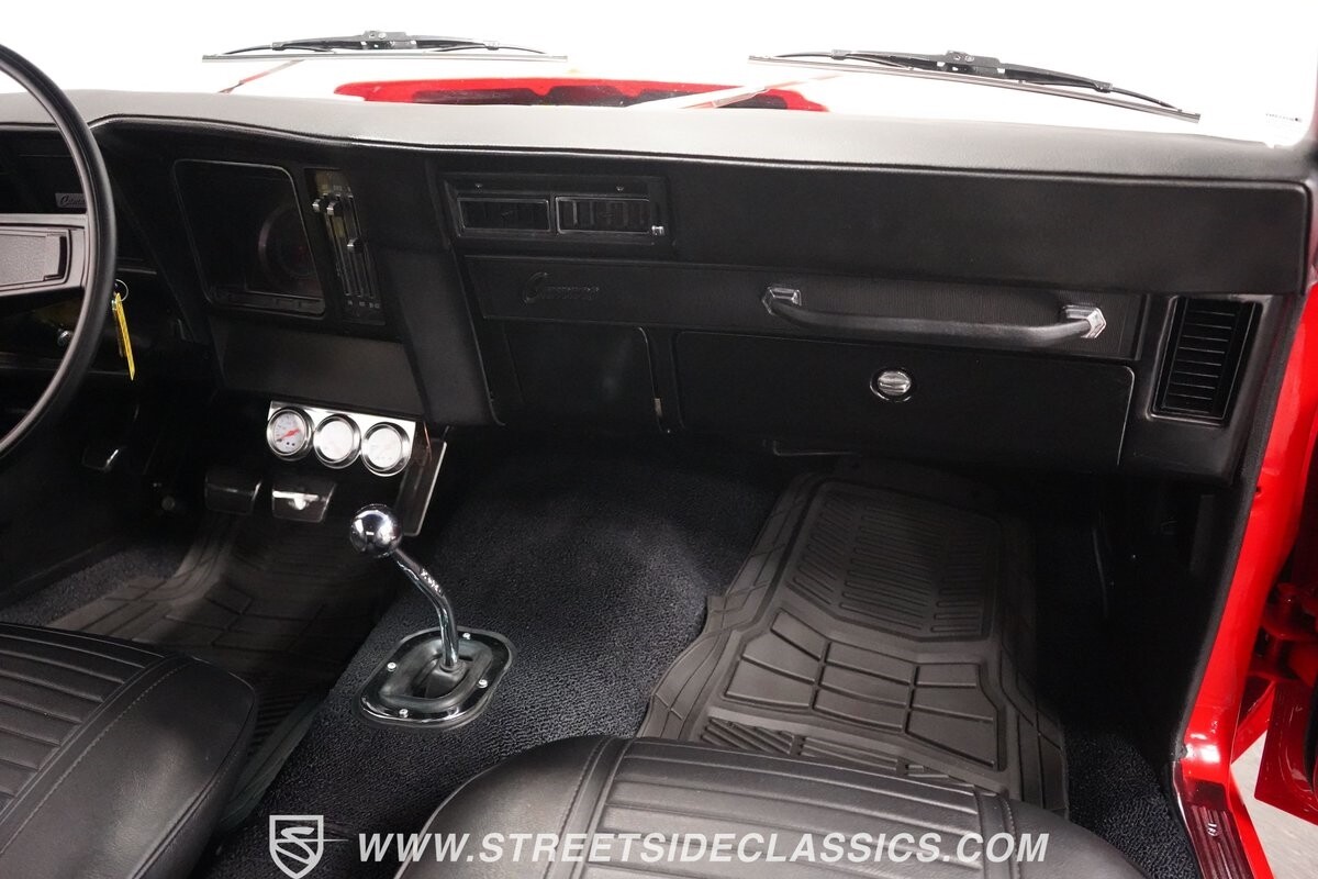 The 1969 Camaro is considered by many to be the best of the breed when it comes to GM's first-generation (1967-1969) F-Body cars, and by looking at this exceptional example, it is clear to see why so many enthusiasts are drawn to it. This stunning 1969 Camaro has had a restoration some years ago and has been beautifully maintained since. Built as a SS396 Tribute car, under the hood lurks a recently rebuilt big block 454 engine, complete with factory Winters aluminum intake manifold topped with a Holly Performance 4-barrel carburetor. Factory-style chrome valve covers and air cleaner on the detailed engine compartment complete the clean, period, all-business look under the hood. An aluminum radiator keeps this big block running cool. Power to the rear wheels is transferred through a Muncie M20 4-speed manual transmission shifted with a Hurst shifter with chrome shift ball. The interior is stock in appearance, with the exception of a set of aftermarket gauges under the dash to monitor the powerful big bock engine. Stopping power is aided by a set of factory front disc brakes.
