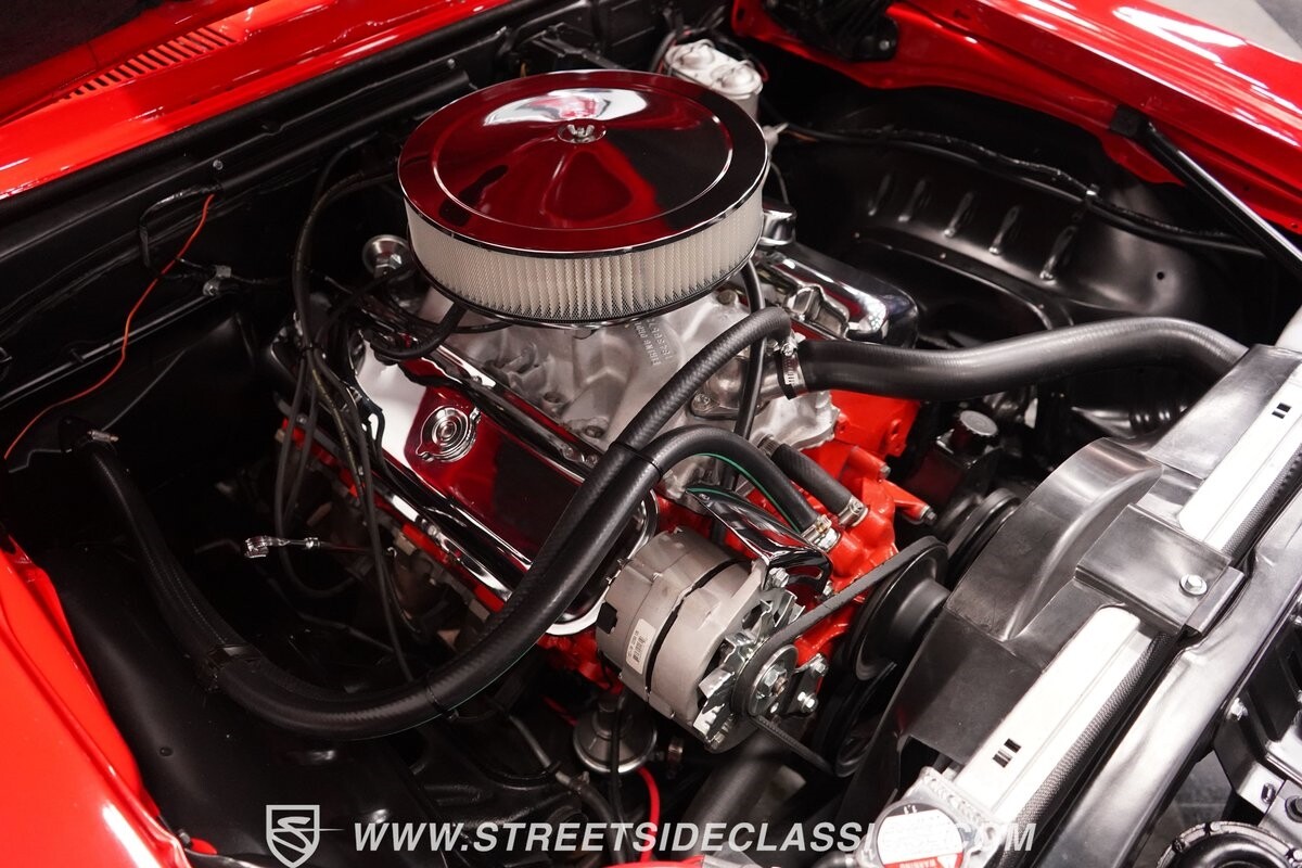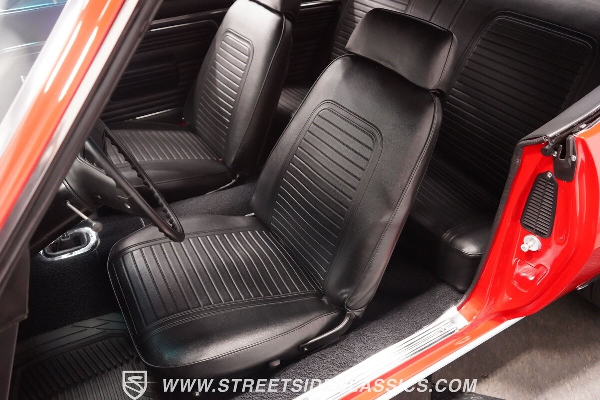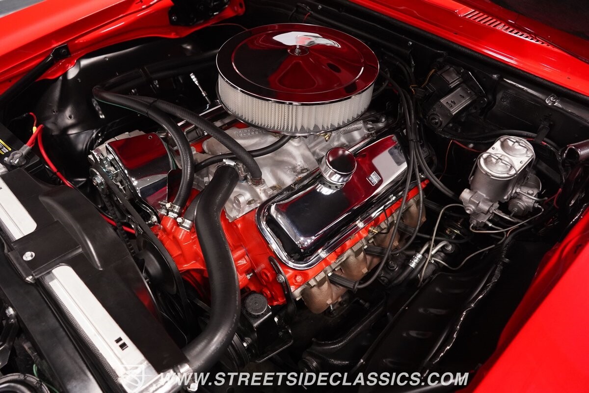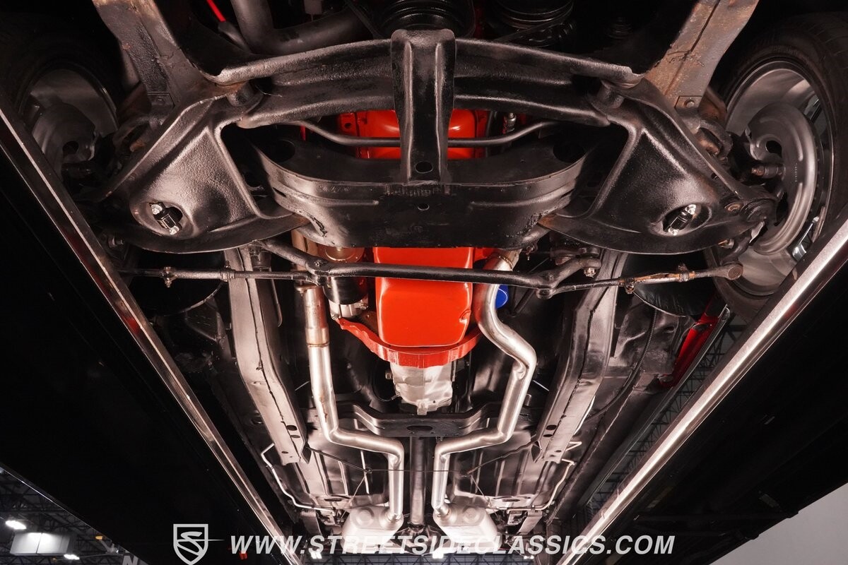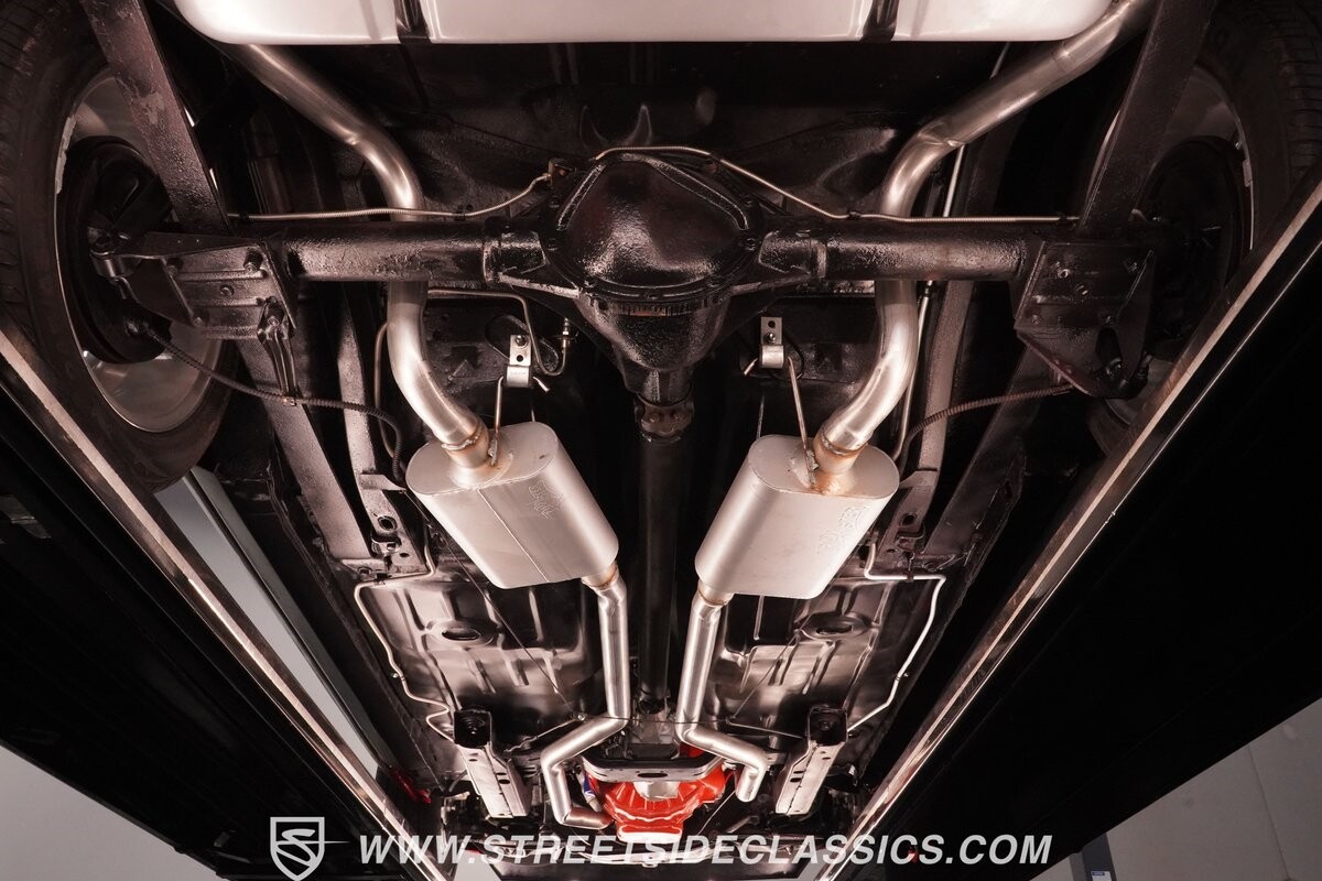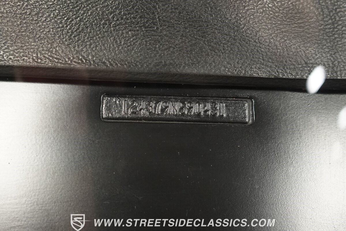 All the classic Camaro styling ques are on this car, highlighted with a factory-style cowl hood, front air dam and rear spoiler. Additionally, the tail panel and grill are blacked out just as a factory SS396 car should be. SS396 badging completes the look of this big block tribute Camaro. The body panel fit and finish are excellent – consistent with the high-quality restoration and care this car has received over the years. The undercarriage is very clean as well, highlighted by a dual exhaust system that features a set of throaty-sounding Flowmaster mufflers. The Camaro rides on a set of 17" Rev wheels that improve handling and help give this classic muscle car a little more attitude. If you have been looking for a great big block Camaro that looks and drives great, you have found it!