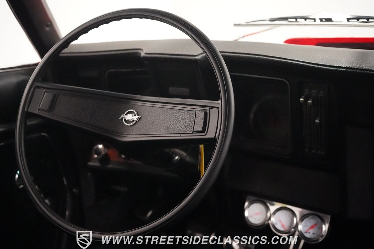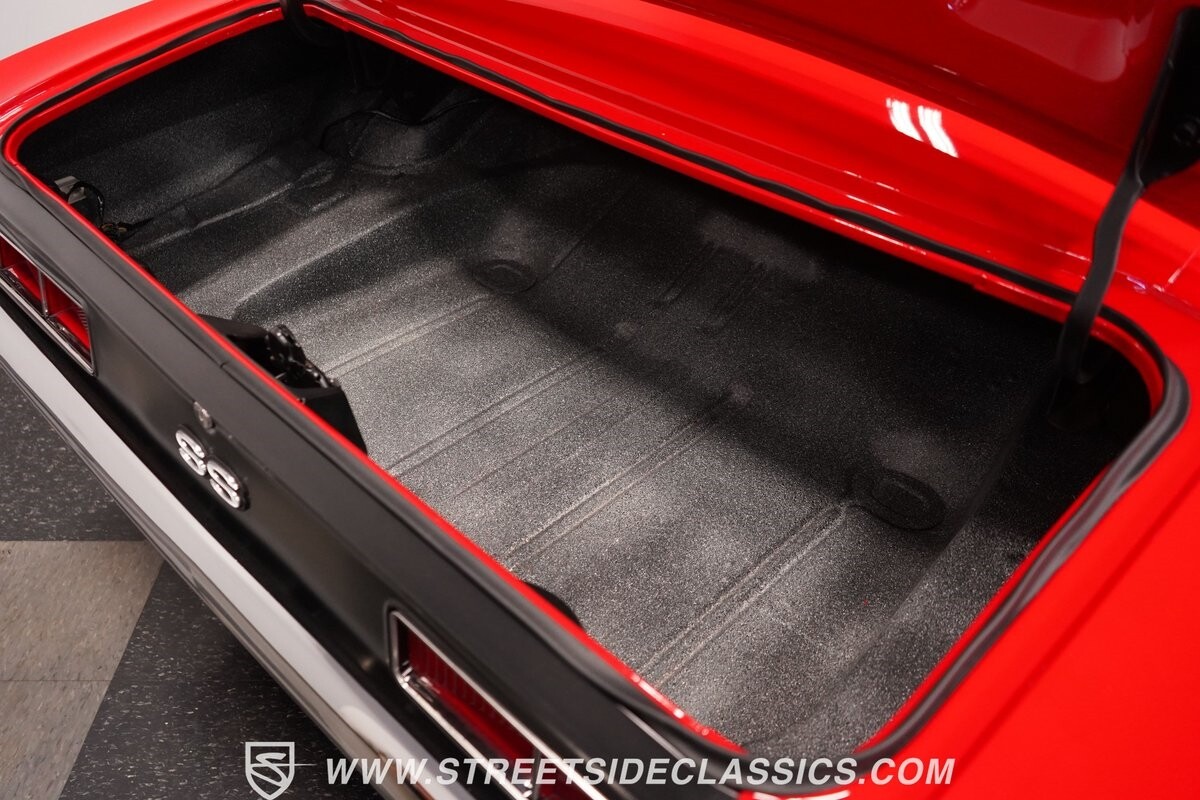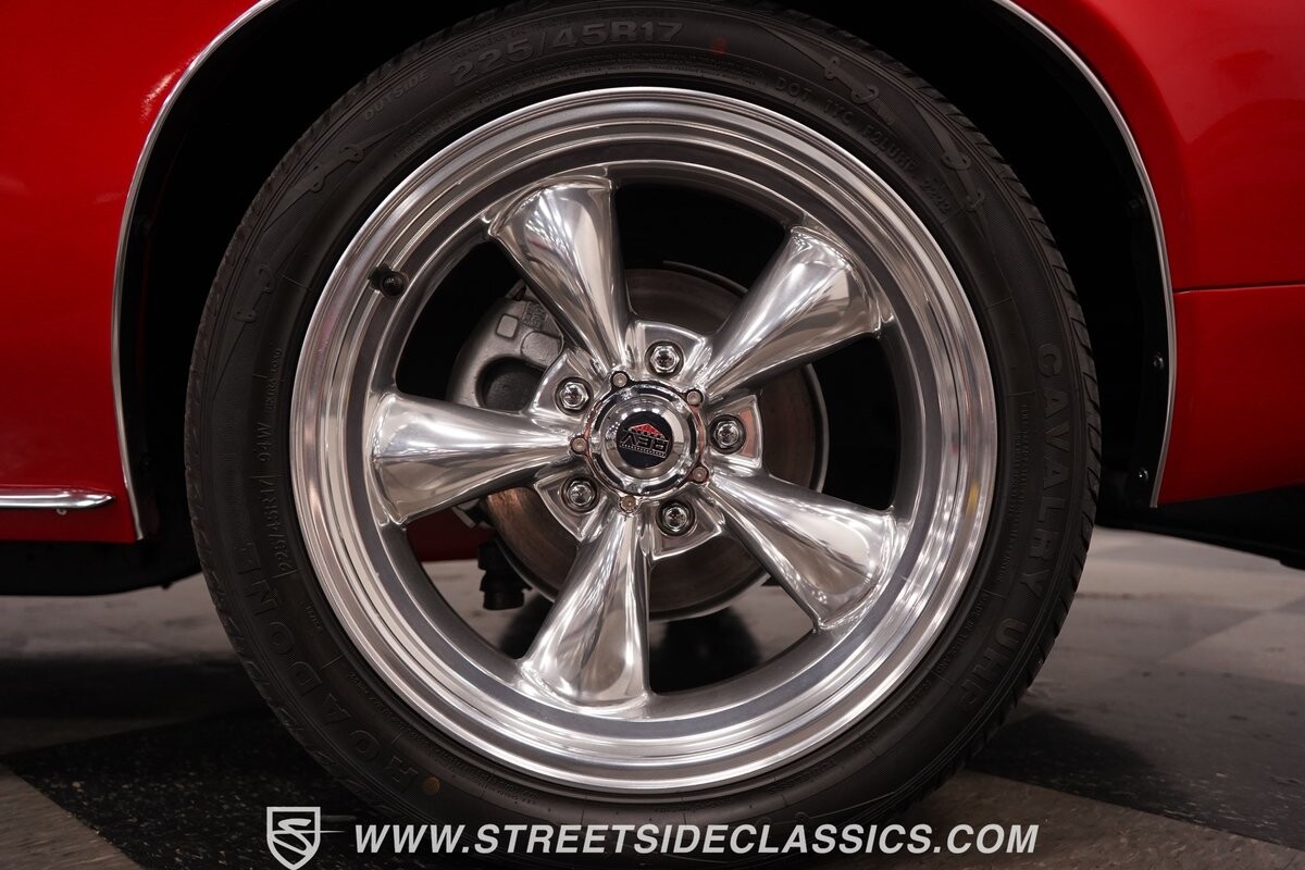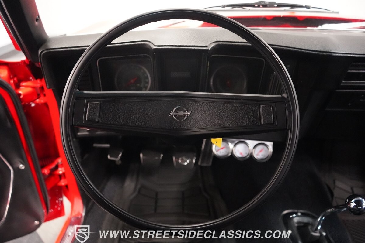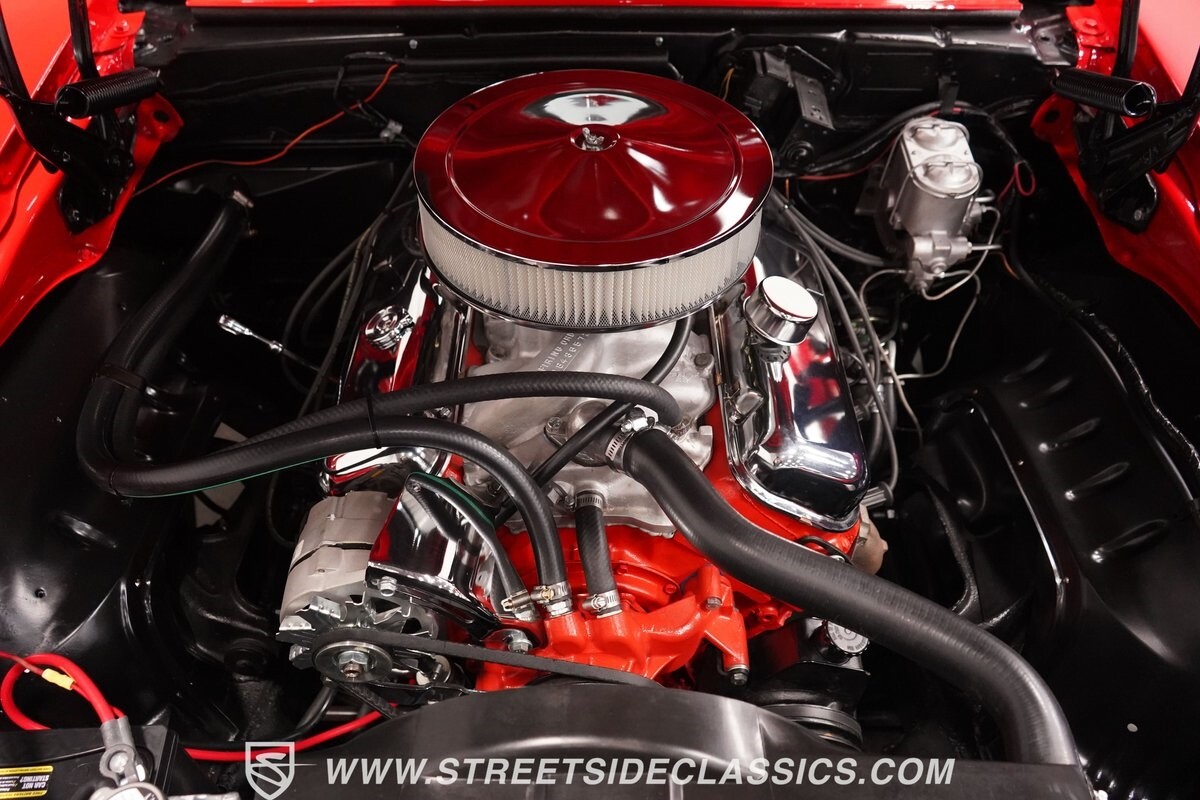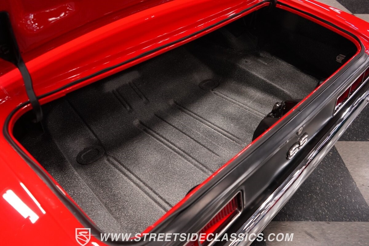 All the classic Camaro styling ques are on this car, highlighted with a factory-style cowl hood, front air dam and rear spoiler. Additionally, the tail panel and grill are blacked out just as a factory SS396 car should be. SS396 badging completes the look of this big block tribute Camaro. The body panel fit and finish are excellent – consistent with the high-quality restoration and care this car has received over the years. The undercarriage is very clean as well, highlighted by a dual exhaust system that features a set of throaty-sounding Flowmaster mufflers. The Camaro rides on a set of 17" Rev wheels that improve handling and help give this classic muscle car a little more attitude. If you have been looking for a great big block Camaro that looks and drives great, you have found it!