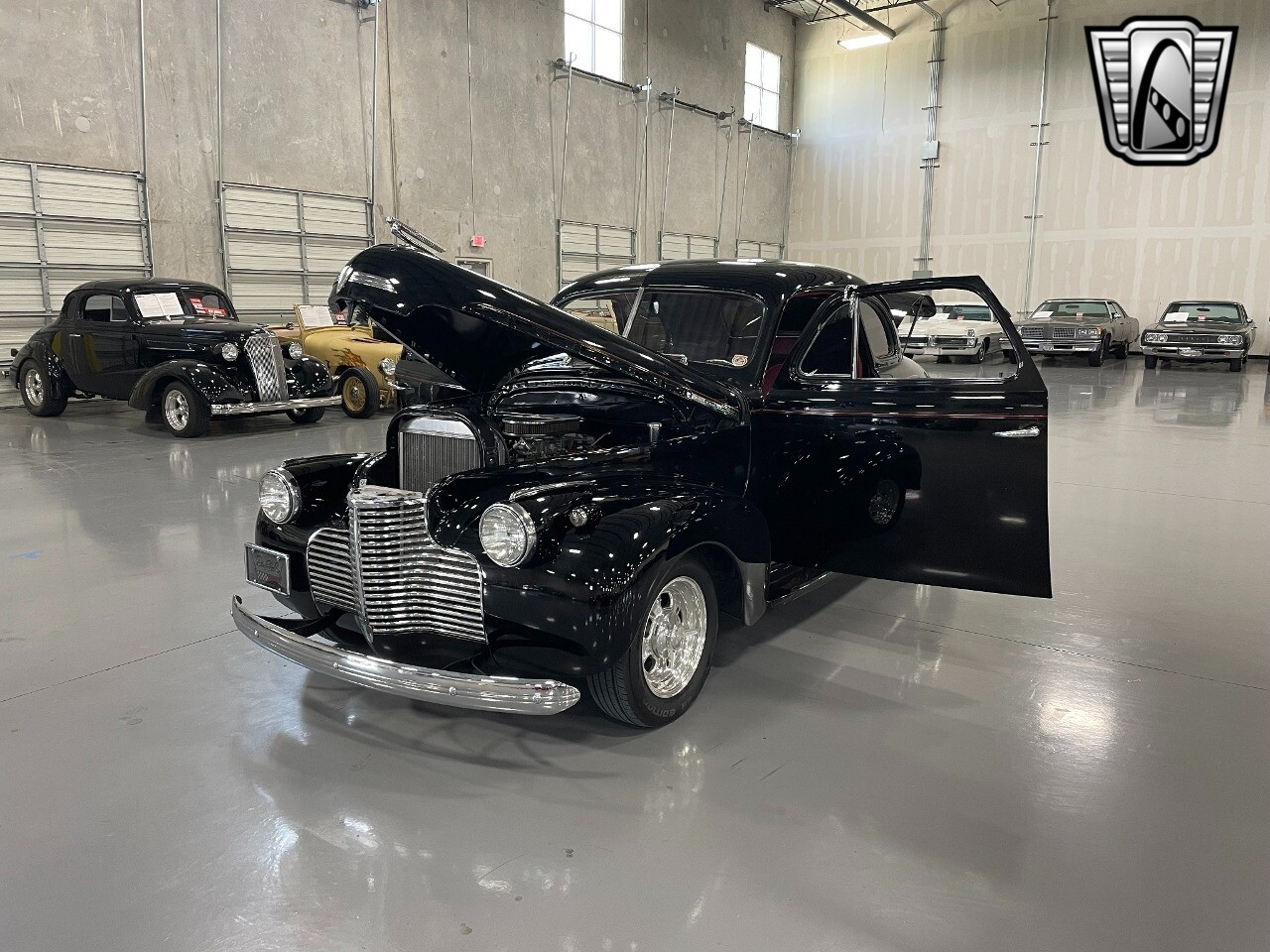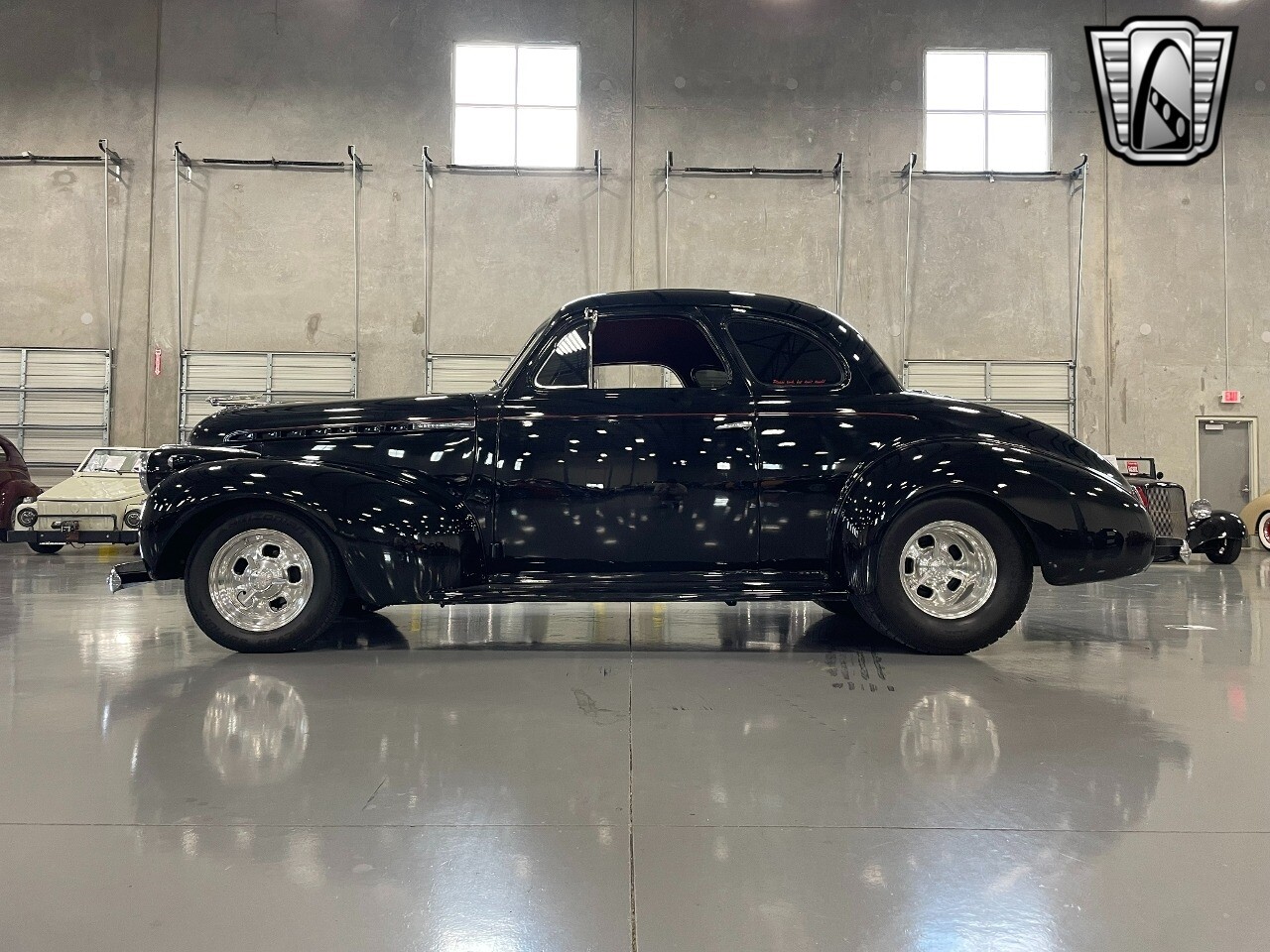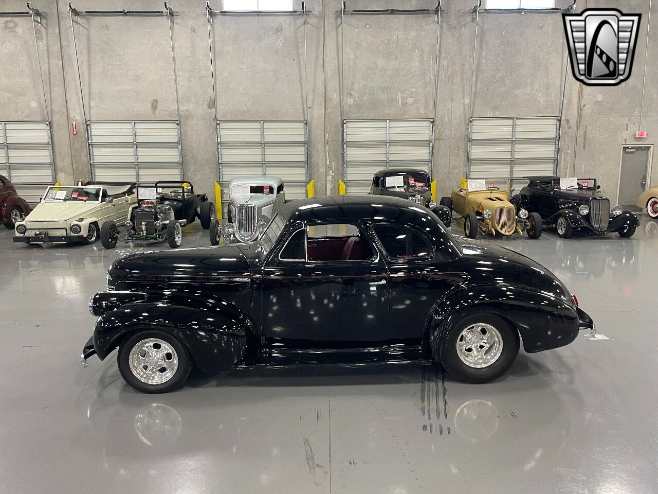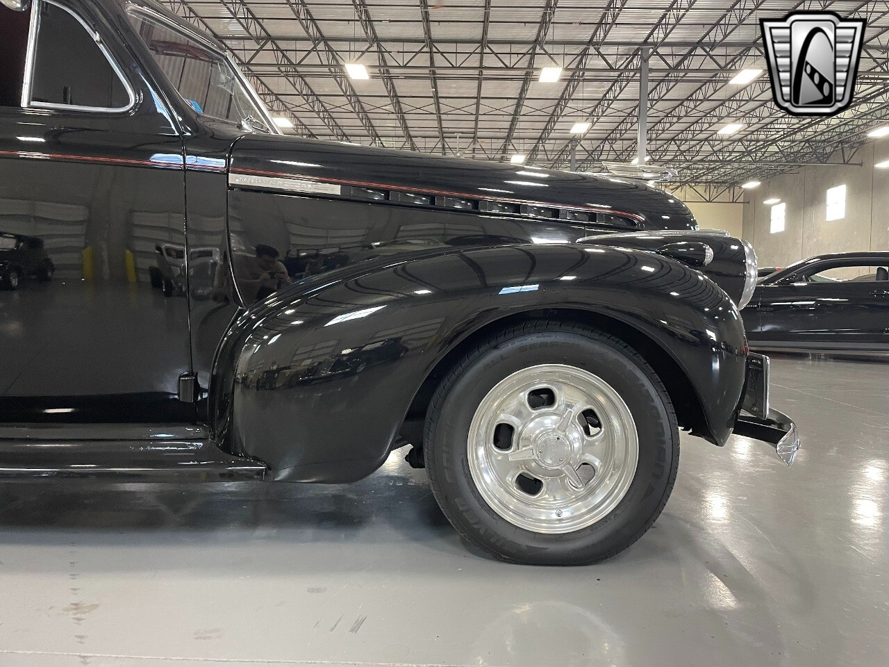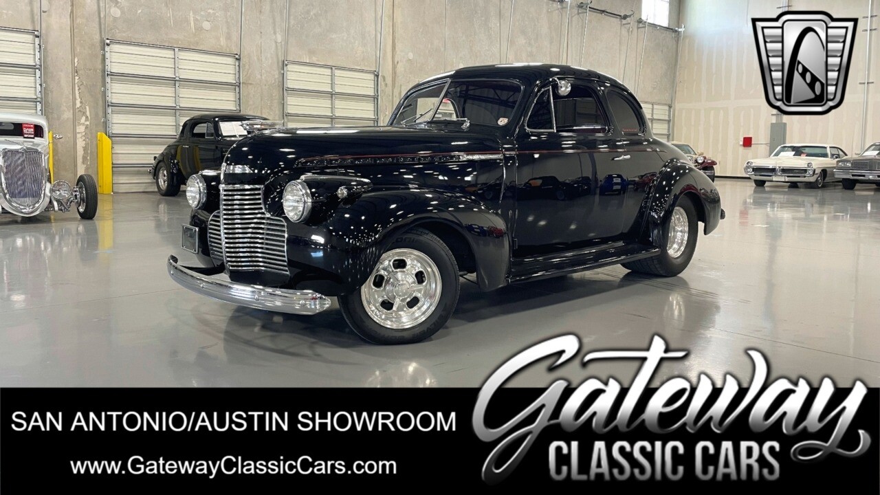 Gateway Classic Cars of San Antonio/Austin is happy to offer this all steel 1940 Chevrolet Master 85 for consideration! Introducing a timeless hot rodders classic, the 1940 Chevrolet Master 85. This vintage beauty boasts a striking black exterior that exudes sophistication and elegance, and the dark red interior provides a rich contrast, creating an inviting and luxurious cabin atmosphere. Under the hood, you'll find a powerful 350 CID V8 engine with Hi-Comp heads & intake, a massive Holley carb & coated headers, all paired with an TH400 automatic transmission, ensuring a smooth and exhilarating driving experience. This is an all steel beauty sitting on Mustang II front suspension and an Art Morrison rear chassis that is holding on to the Ford 9" Posi with 3.55 gearing while getting these massive 29x18.5 Hoosiers moving down the blacktop!