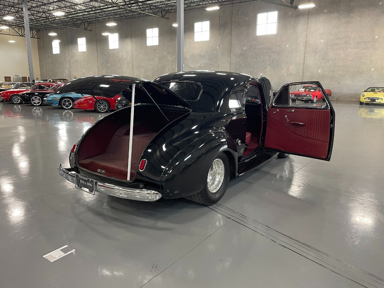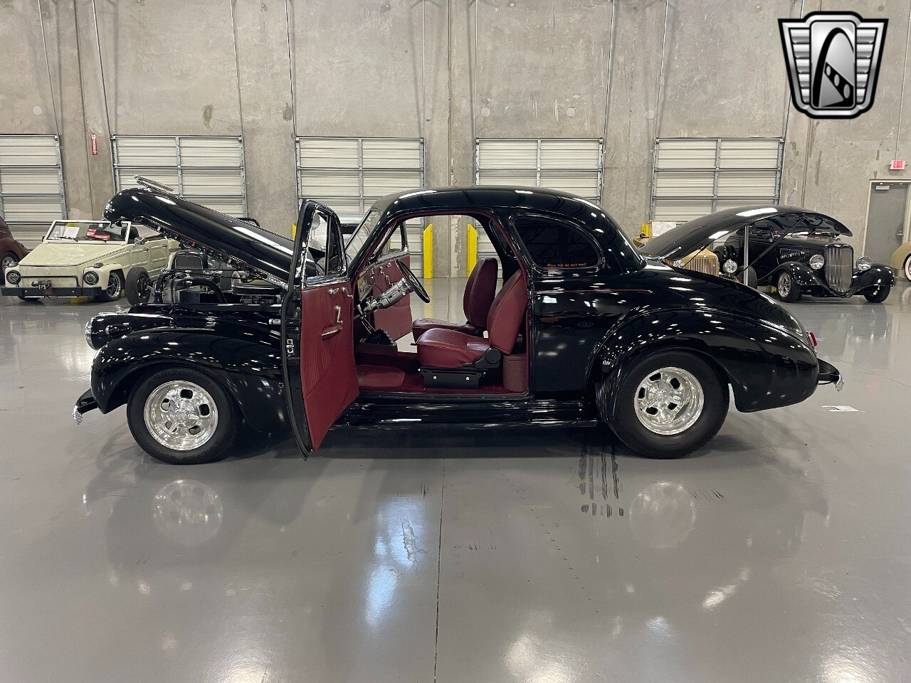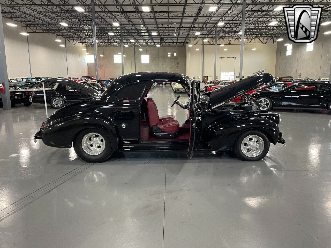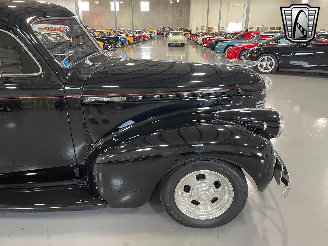 Gateway Classic Cars of San Antonio/Austin is happy to offer this all steel 1940 Chevrolet Master 85 for consideration! Introducing a timeless hot rodders classic, the 1940 Chevrolet Master 85. This vintage beauty boasts a striking black exterior that exudes sophistication and elegance, and the dark red interior provides a rich contrast, creating an inviting and luxurious cabin atmosphere. Under the hood, you'll find a powerful 350 CID V8 engine with Hi-Comp heads & intake, a massive Holley carb & coated headers, all paired with an TH400 automatic transmission, ensuring a smooth and exhilarating driving experience. This is an all steel beauty sitting on Mustang II front suspension and an Art Morrison rear chassis that is holding on to the Ford 9" Posi with 3.55 gearing while getting these massive 29x18.5 Hoosiers moving down the blacktop!