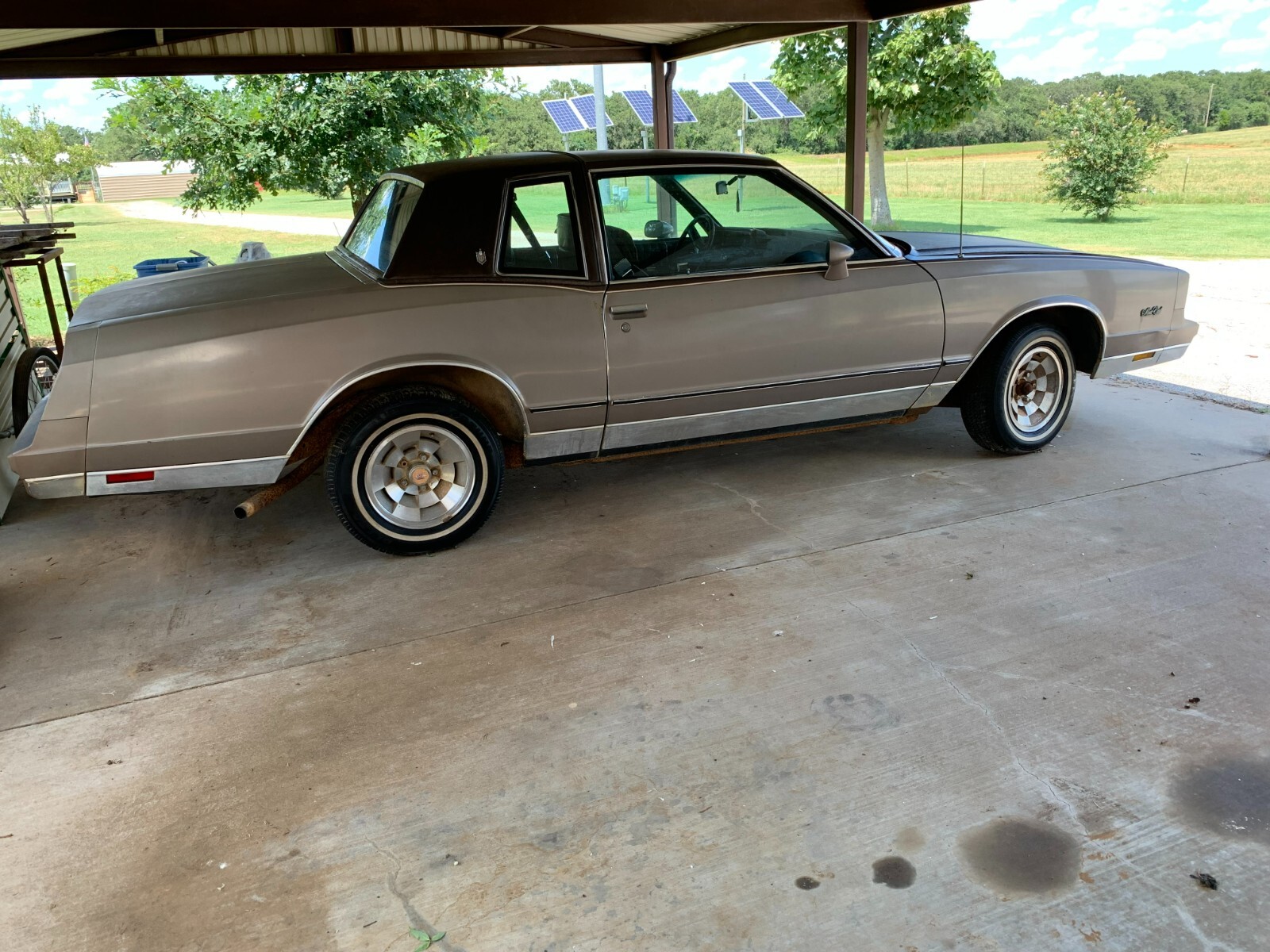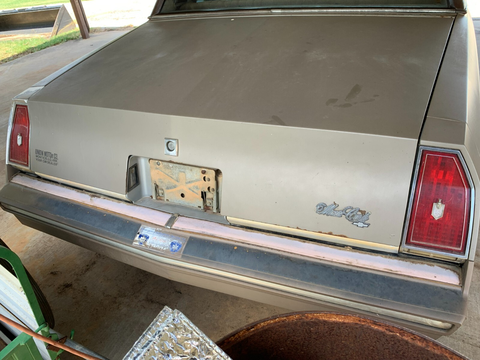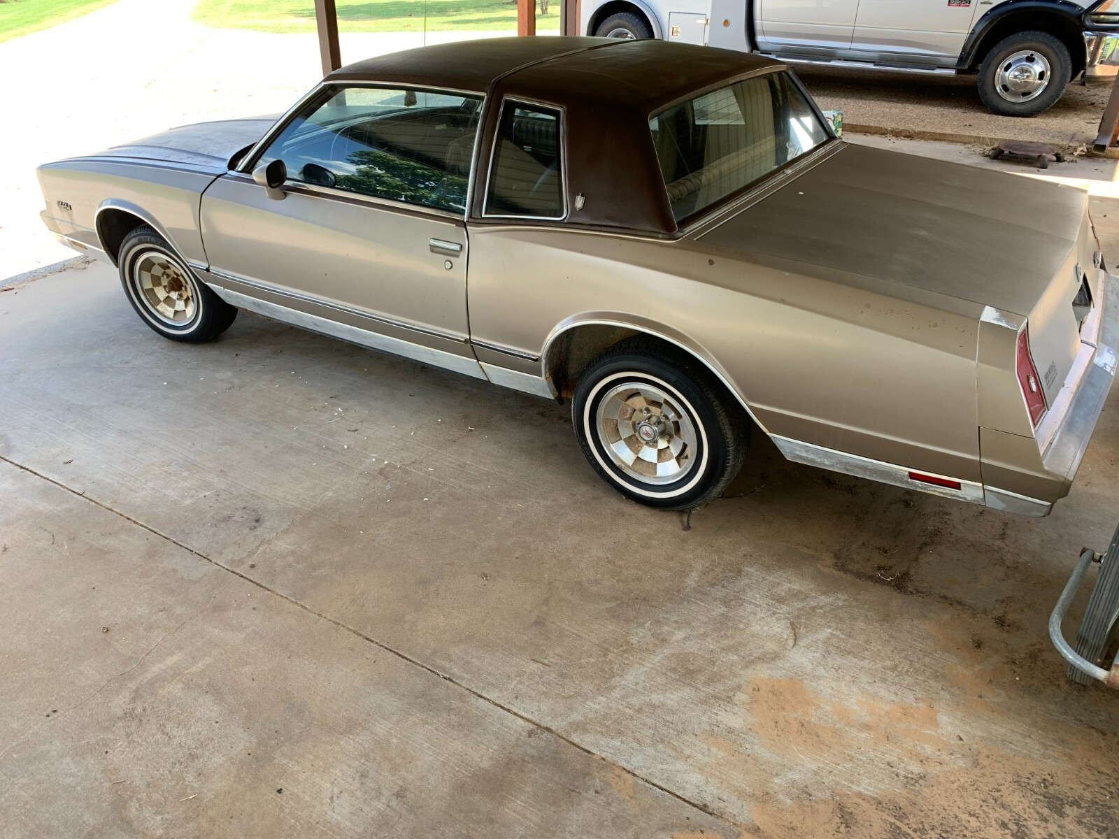 I have up for bid a good condition, all original 1984 Monte Carlo. This car has been parked under my grandmother's carport since her passing in 2006. This car was driving right up until the day she passed. It has the original 305 cubic inch engine with 104,091 miles. This car has been well maintained all of its life. It has had recommended oil changes, and filter changes. The engine turns over and tries to crank with ether, however I am sure the rubber fuel lines need replacing due to cracking and the tank needs draining, and the carb cleaned to get this car back on the road. The tires will need replacing as they are holding air but they too have cracking. The brakes are good. Wiper blades need replacing but wiper motor and all electric windows work. This car has never used oil or had any issues what so ever I put a new battery in a few months ago. The seats are clean and free of stains. There is one tear in the side of the driver seat on the side, but can easily be repaired. This care has never been smoked in. The headliner is tight and in excellent shape for its age. The hood has only topical rust. The car is very solid and does not have any rusted out areas. The vinyl top is in remarkable condition and does not have the usual rusted out area that most this age have. Over all this is a easy project and should not take long at all to get back on the road. The original spare tire, tire tool, and jack are in the trunk. Three center caps are missing from the car.This car has a clean title in my name. A Nationally recognized Bill of Sale will be provided. This auction has no reserve and we will work with Nationwide Auto Arbitrators to do the title/money exchange is shipping and we will work with Nationwide auto transport for delivery within or outside the United States is necessary at the buyer's expense. A $500 immediate deposit into paypal will be required ar the end of the auction. The balance will need to be paid before the car is picked up. The car is located In Joshua TX 76058.