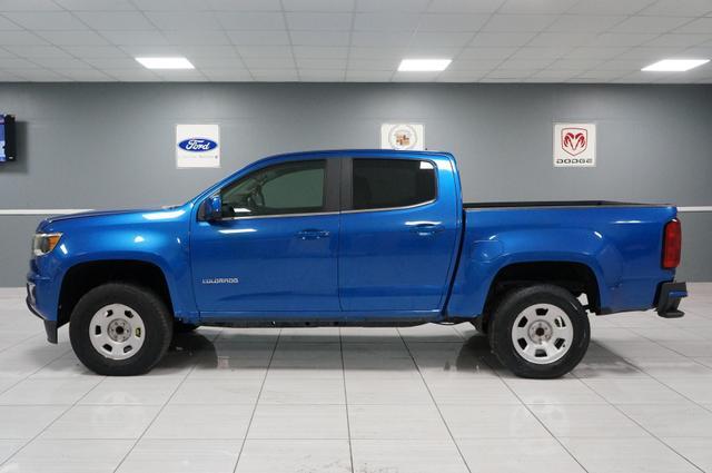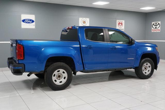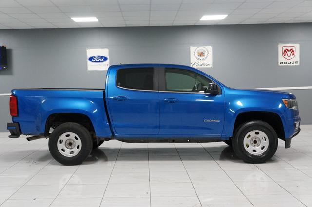 The exterior of the 2019 Colorado Crew Cab Work Truck exudes a robust and ready-to-work demeanor, highlighted by its bold grille, durable body, and practical design elements. The 5-foot bed is complemented by an easy-lift and lower tailgate, making loading and unloading both simple and efficient. Equipped with 17-inch painted steel wheels and all-season tires, this truck is prepared for a variety of driving conditions. Additional exterior features include cargo box lighting and a locking tailgate, enhancing utility and security for all your hauling needs.