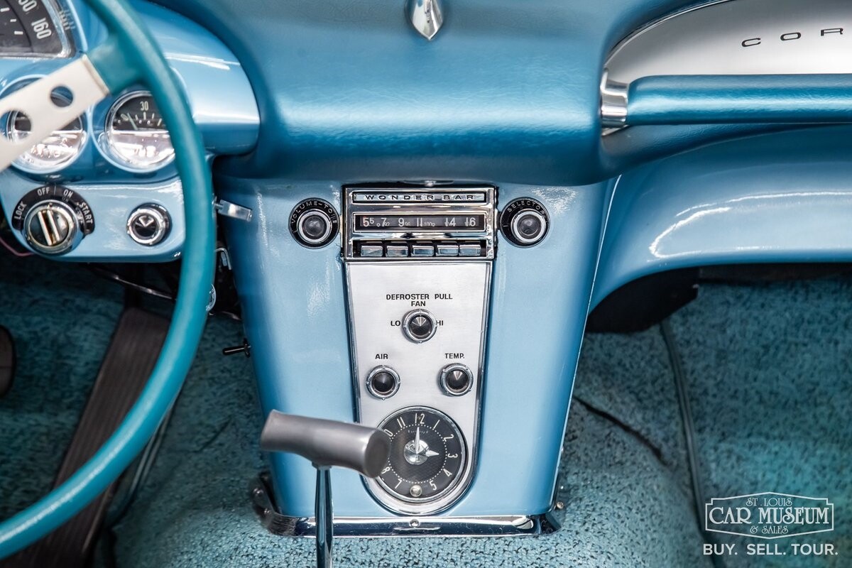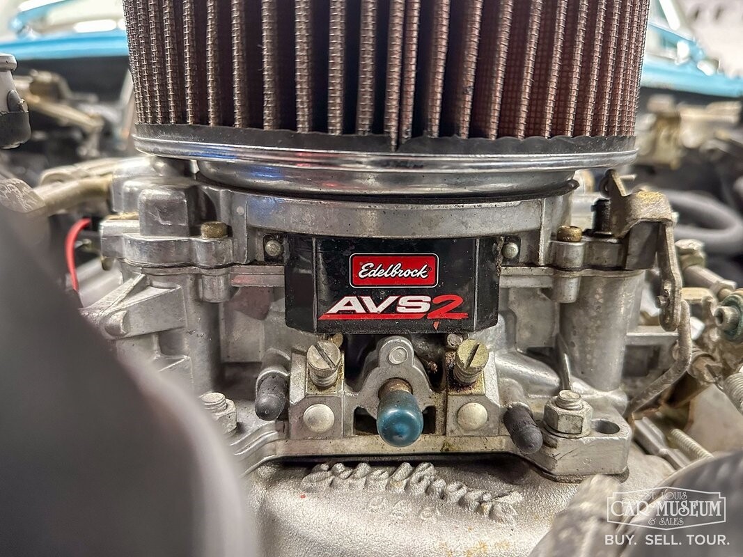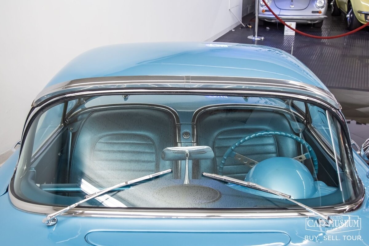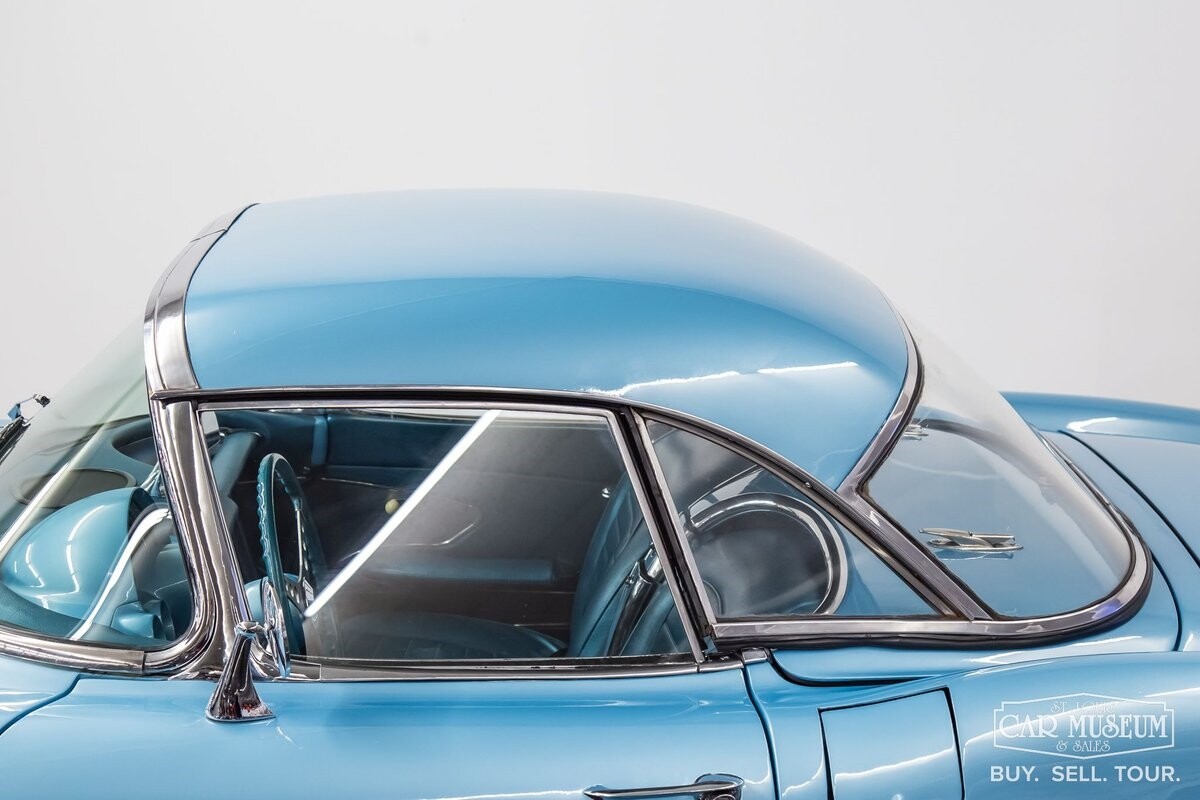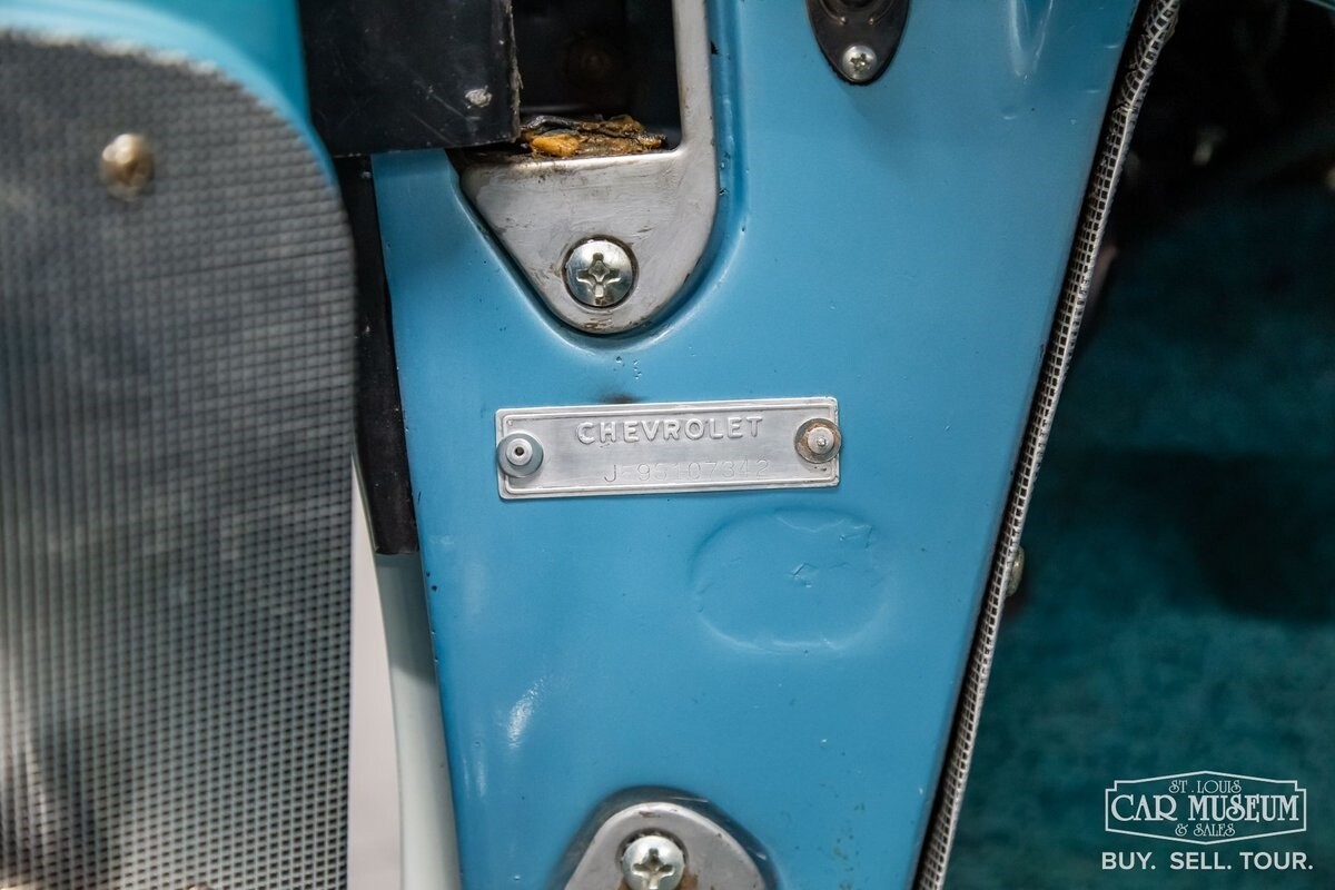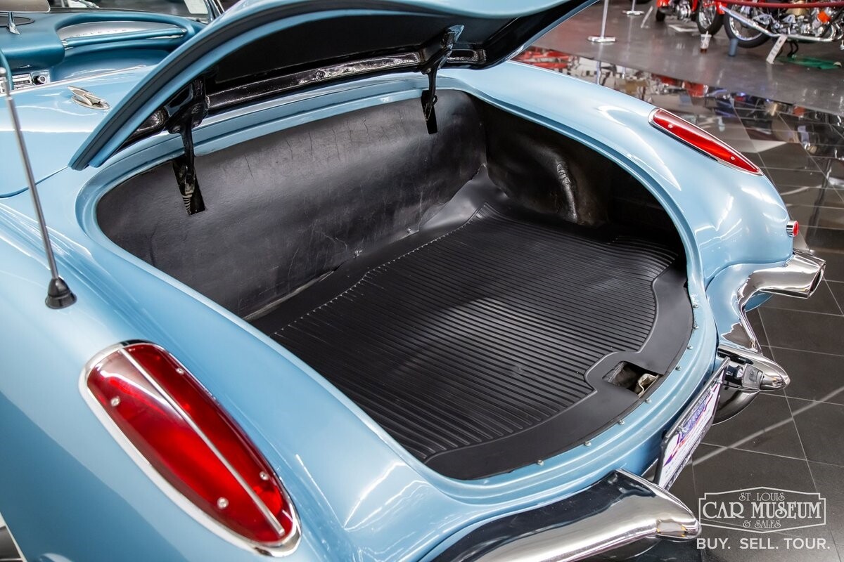 This 1959 Corvette is finished in Frost Blue accented by Snowcrest White coves and Turquoise Vinyl interior. Optioned include date-code correct 283ci V8-245hp engine with 2x4 carburetion, 4-speed manual transmission, upgraded 3.73 Posi-traction rear end, dash tachometer, heater/defrost, courtesy light, Firestone Deluxe Champion white wall tires measuring 6.70-15, Wonderbar signal seek radio, black carpeted floor mats, along with both auxiliary hardtop and white convertible soft top.