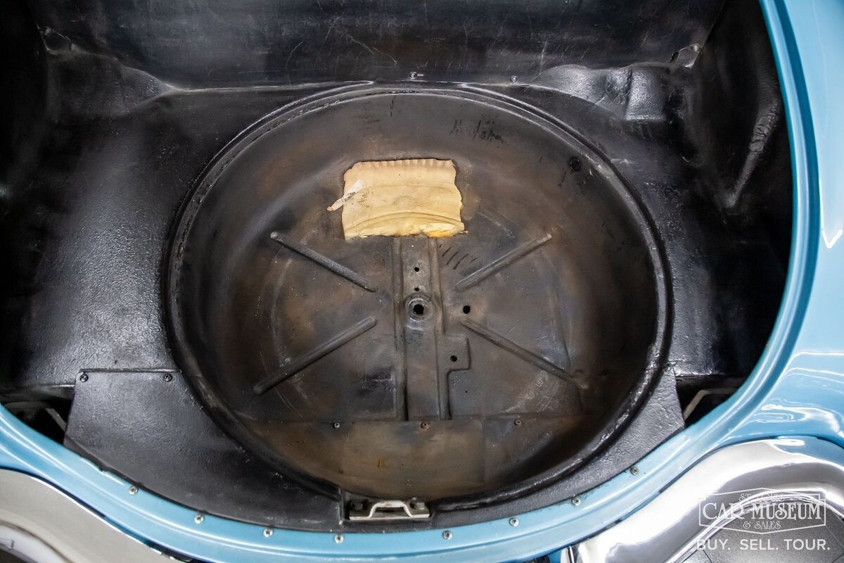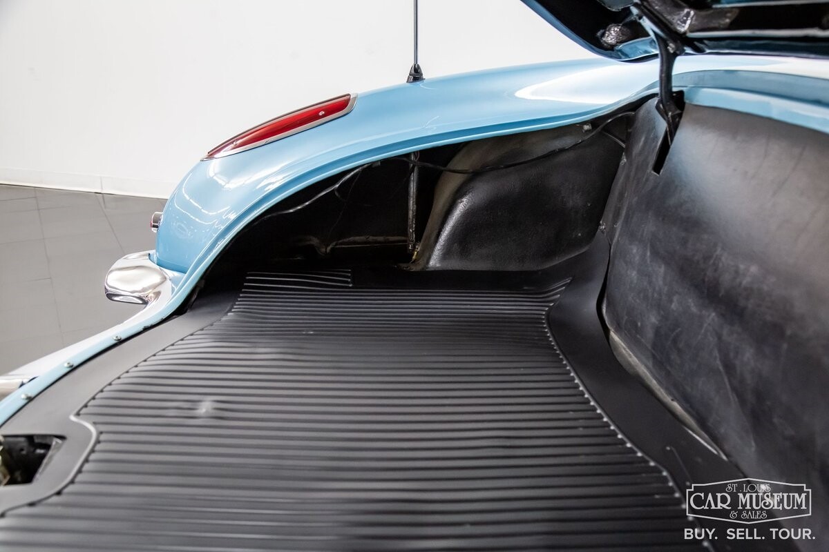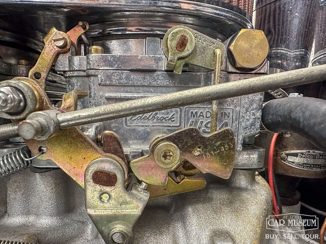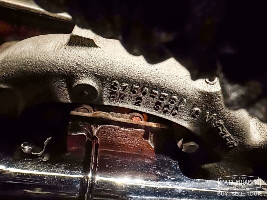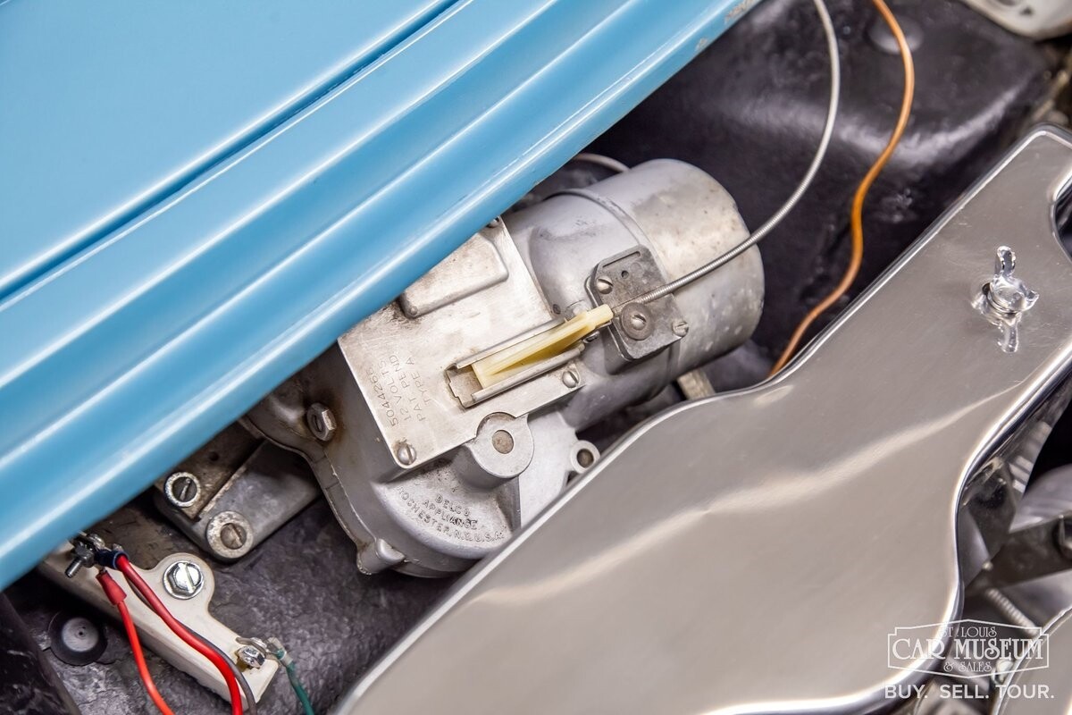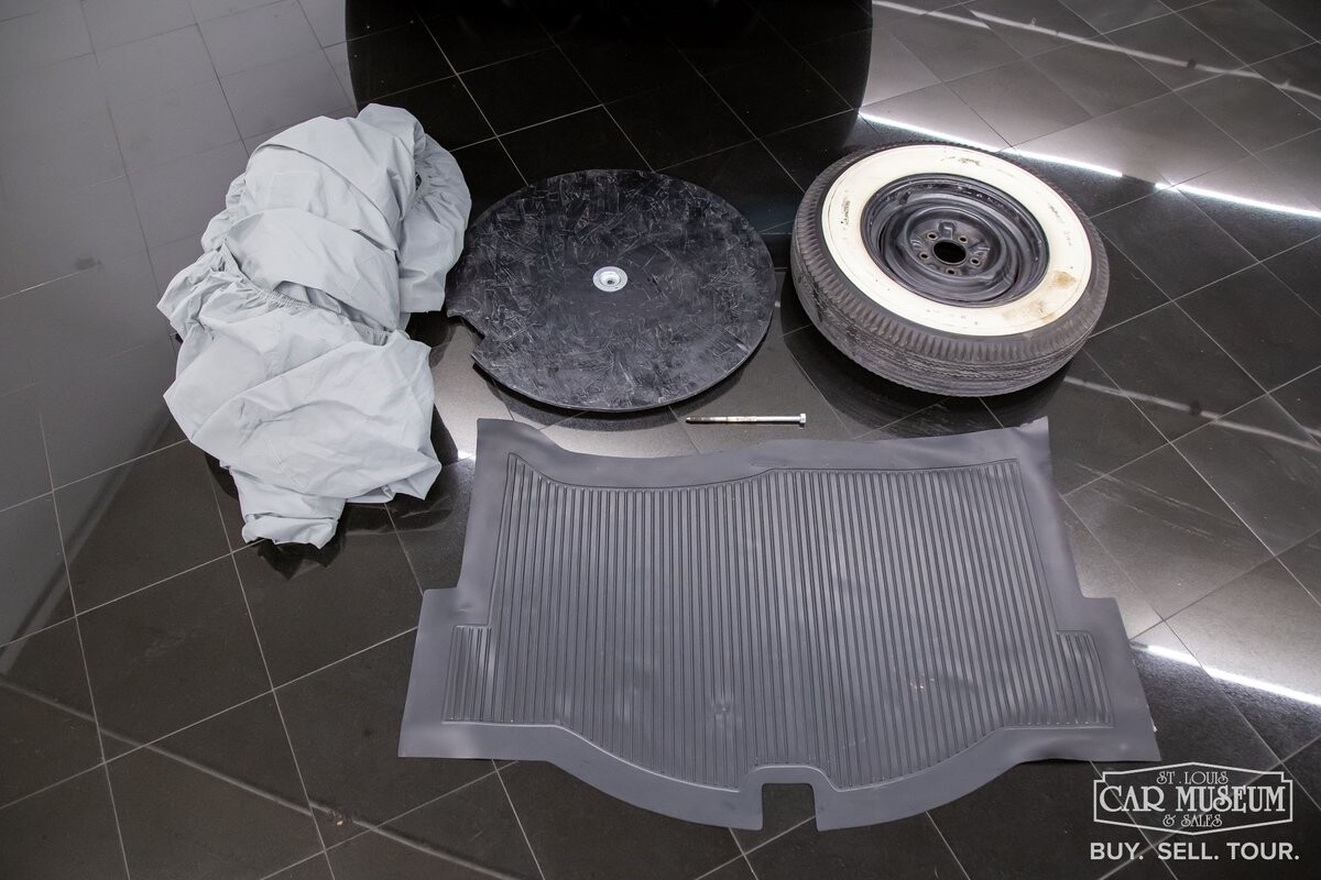 Inside, everything from the dash, center console, storage bin, padded grab bar, carpet, seat upholstery & padding, seat belts, floor pedals, shift knob, turn signal lever, door panels, and misc trim pieces were all newly installed during the restoration. The carpet does now show some mild staining in the foot well areas. The convertible top was newly installed in July 2024 upon arrival to the St. Louis Car Museum. We also rebalanced these older bias ply tires with a 4-wheel alignment, installed new drive belts, changed the engine oil & filter, and properly adjusted the transmission speedometer gear for more accurate readout on the factory gauge.