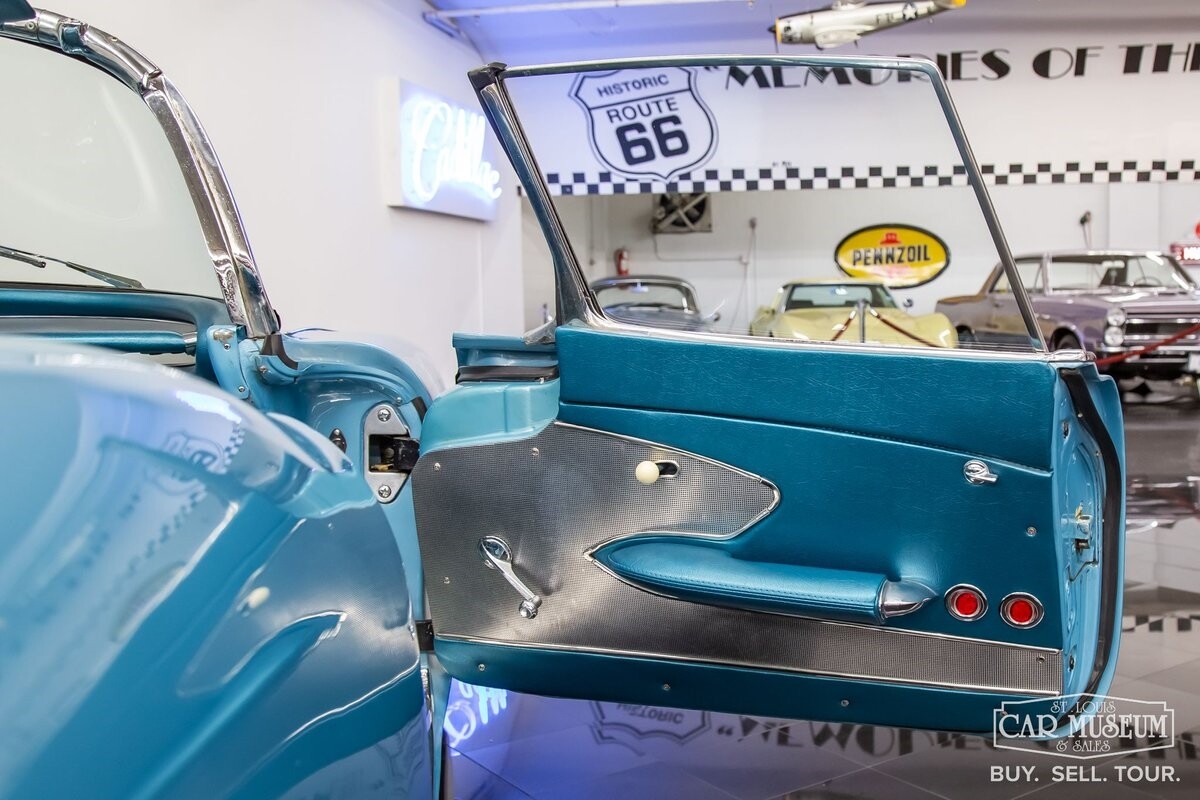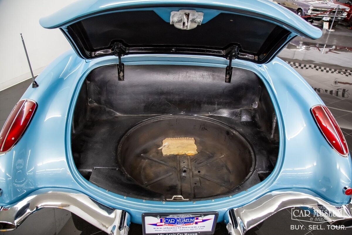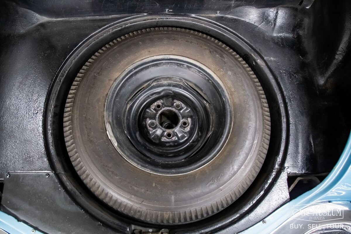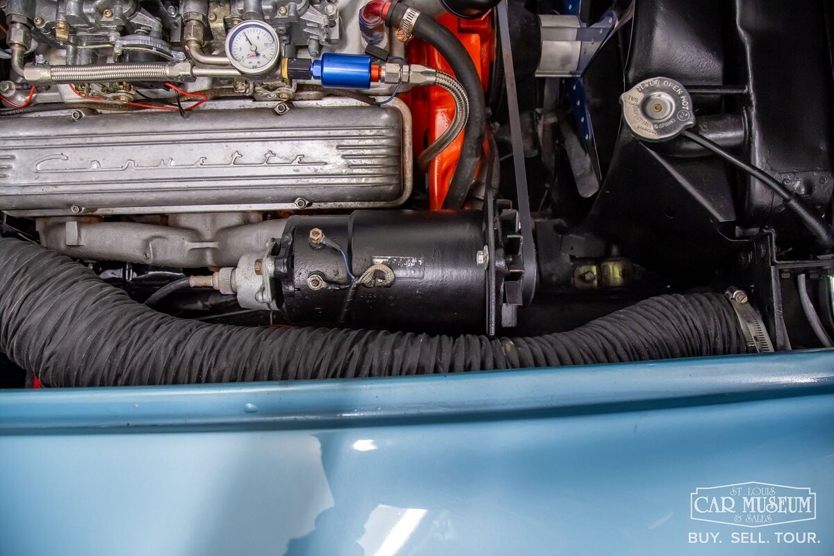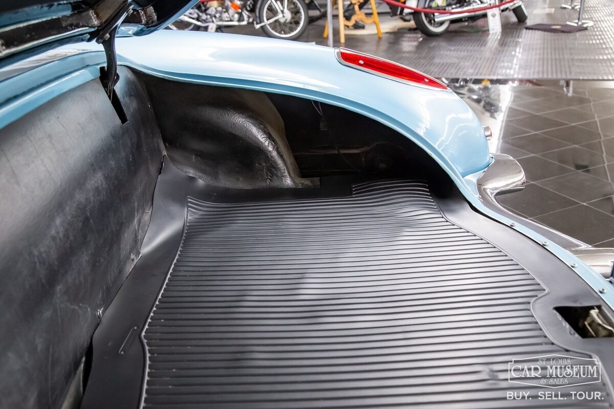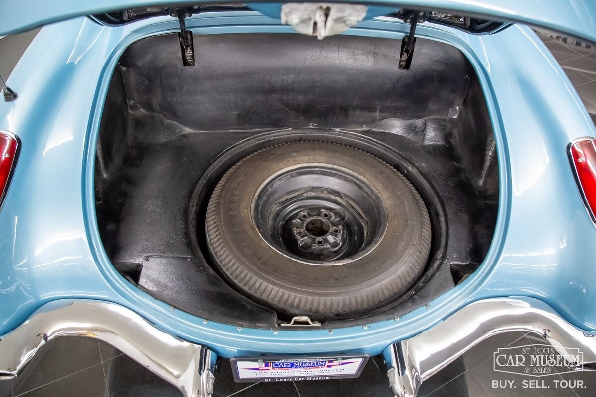Inside, everything from the dash, center console, storage bin, padded grab bar, carpet, seat upholstery & padding, seat belts, floor pedals, shift knob, turn signal lever, door panels, and misc trim pieces were all newly installed during the restoration. The carpet does now show some mild staining in the foot well areas. The convertible top was newly installed in July 2024 upon arrival to the St. Louis Car Museum. We also rebalanced these older bias ply tires with a 4-wheel alignment, installed new drive belts, changed the engine oil & filter, and properly adjusted the transmission speedometer gear for more accurate readout on the factory gauge.