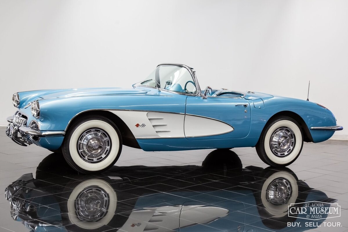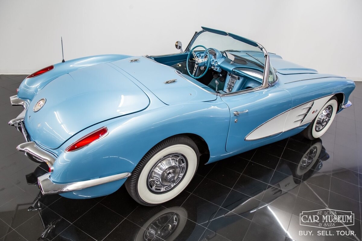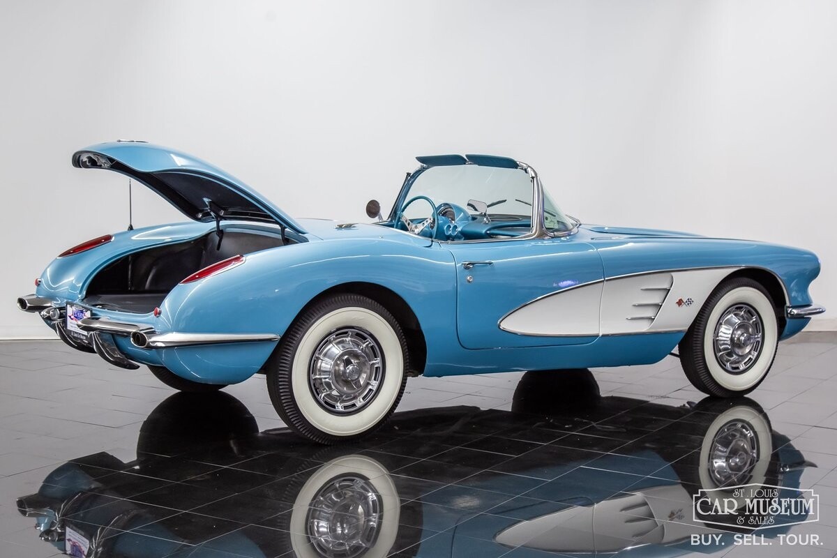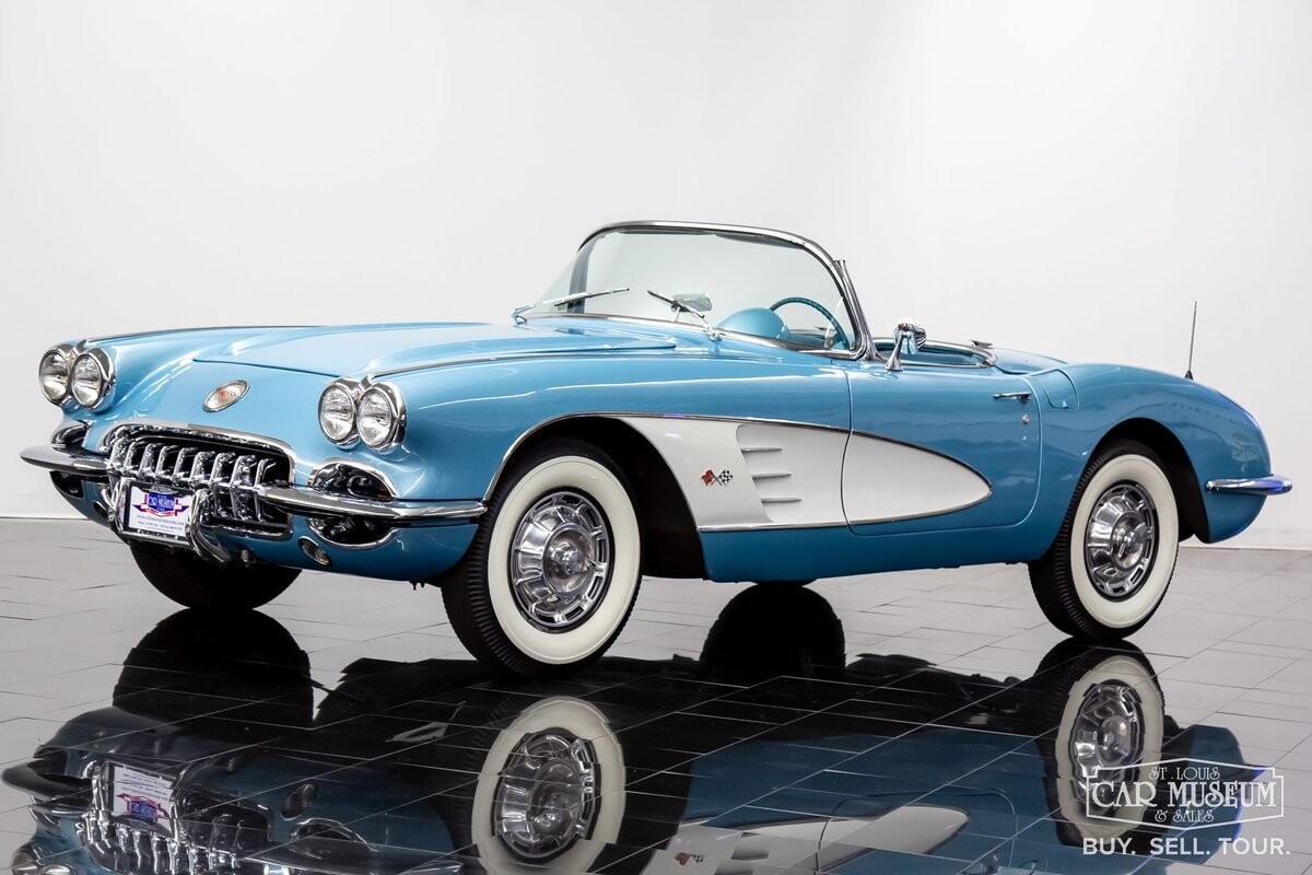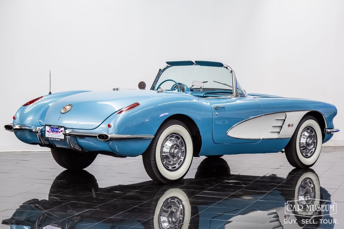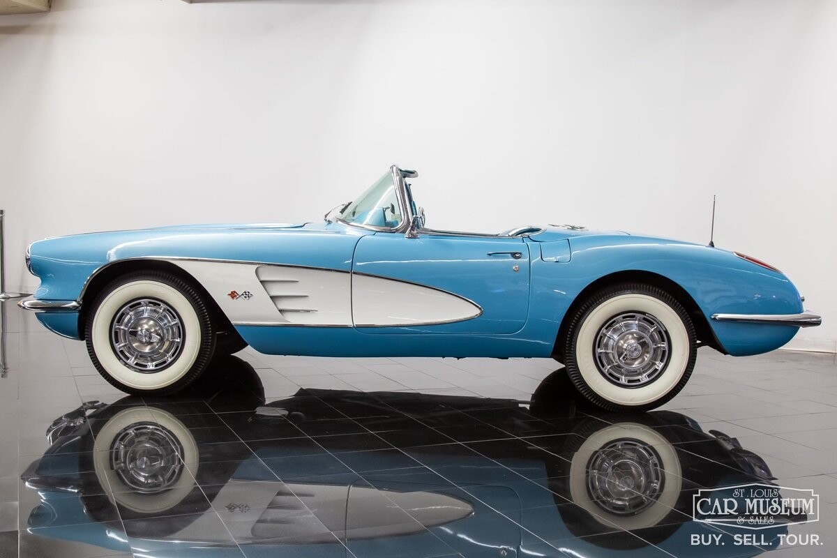 It drives with terrific ease! The engine response is smooth and powerful as it travels effortlessly down the road. It keeps pace with everyday traffic making this a perfect summertime cruiser and wonderful Corvette investment! And it's a great color combination to have in our opinion! Truly gorgeous! The 1959 Corvettes celebrated their milestone 65th birthday this year which is quite an honor. It will come with the original owner's manual, clear Missouri title, and two sets of keys. Please call with any questions or to schedule a chance to review it in person.