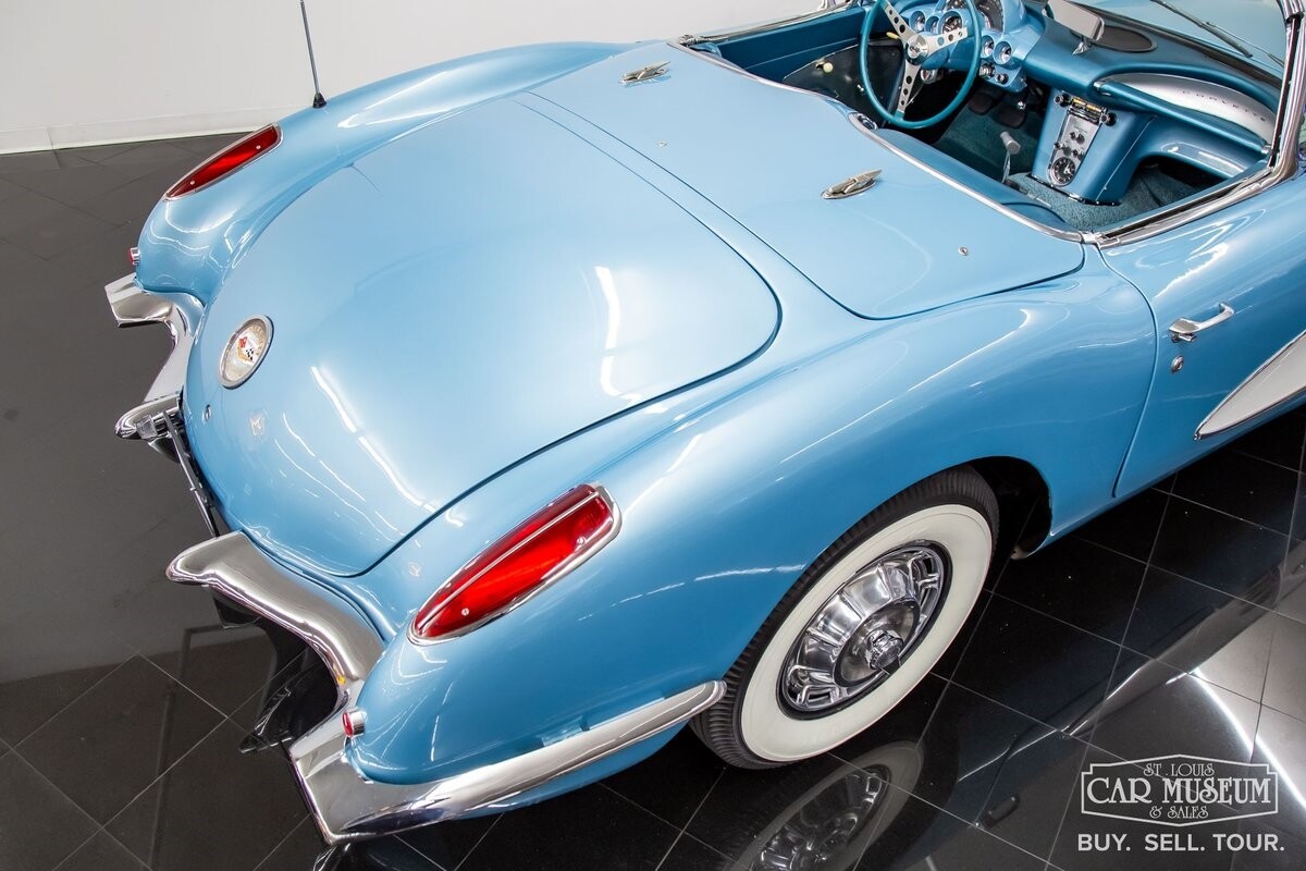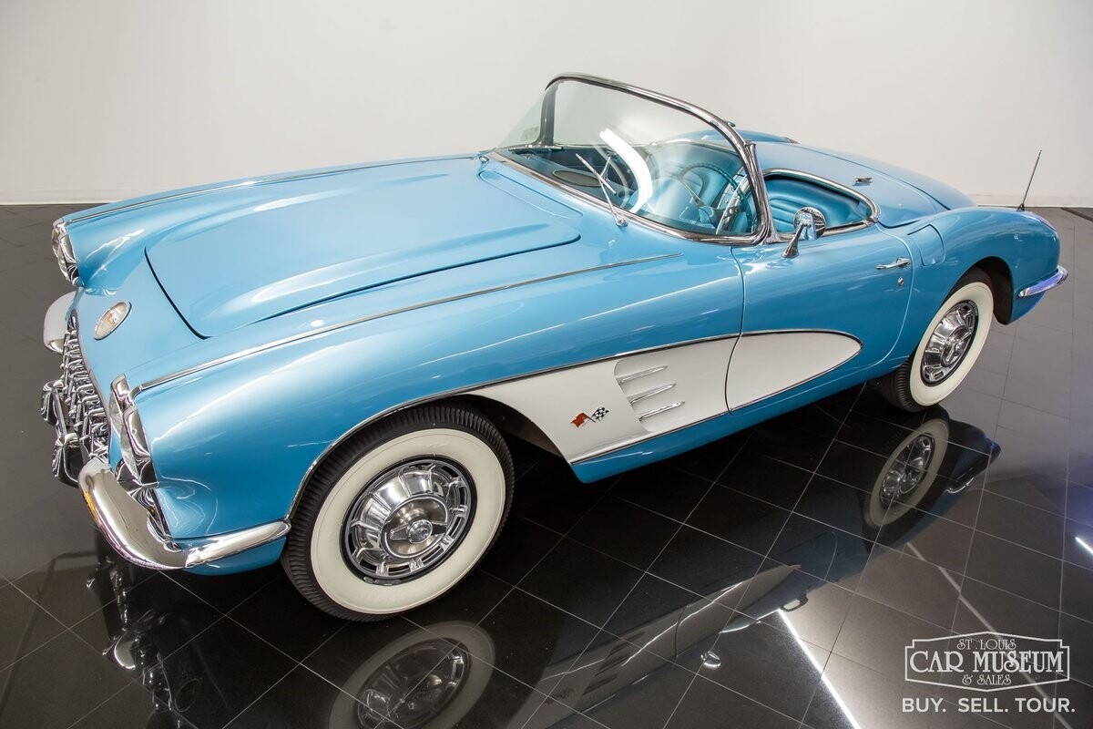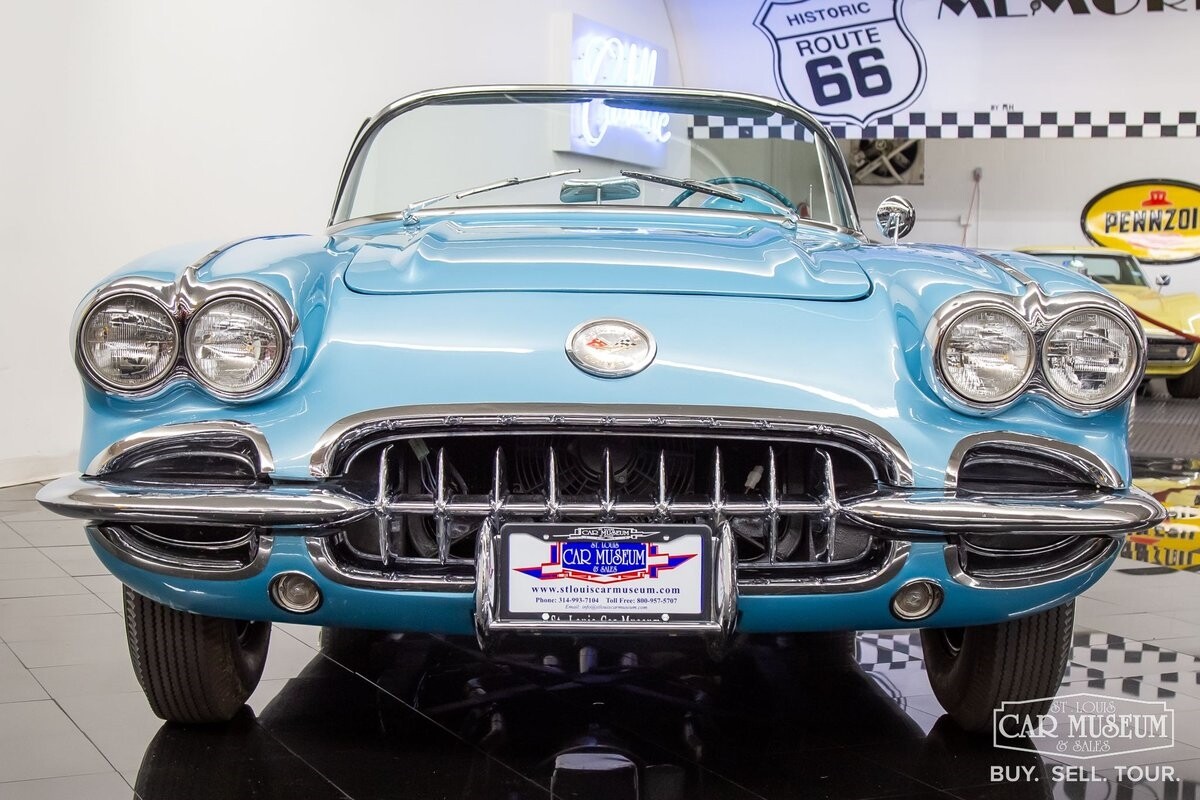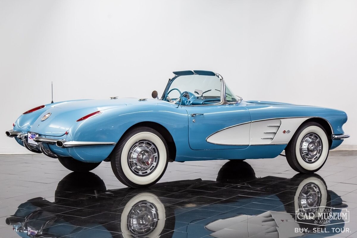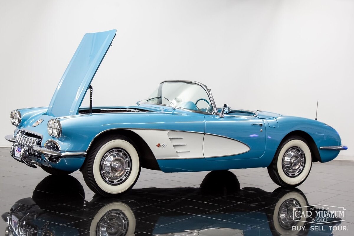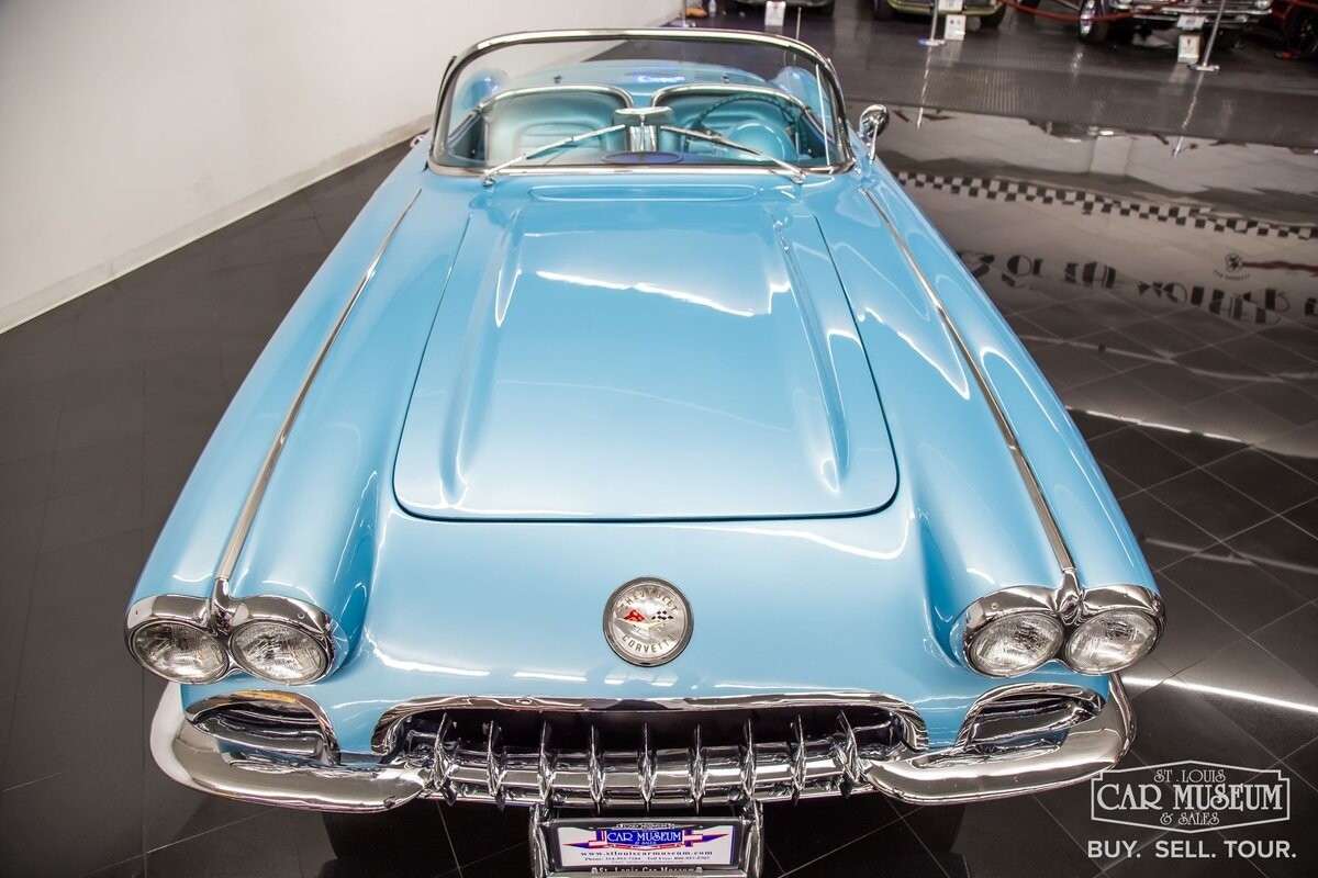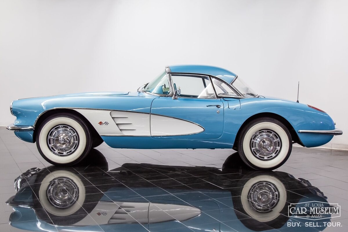 It drives with terrific ease! The engine response is smooth and powerful as it travels effortlessly down the road. It keeps pace with everyday traffic making this a perfect summertime cruiser and wonderful Corvette investment! And it's a great color combination to have in our opinion! Truly gorgeous! The 1959 Corvettes celebrated their milestone 65th birthday this year which is quite an honor. It will come with the original owner's manual, clear Missouri title, and two sets of keys. Please call with any questions or to schedule a chance to review it in person.