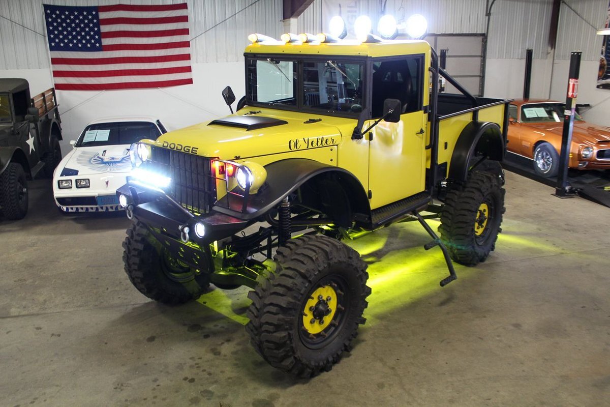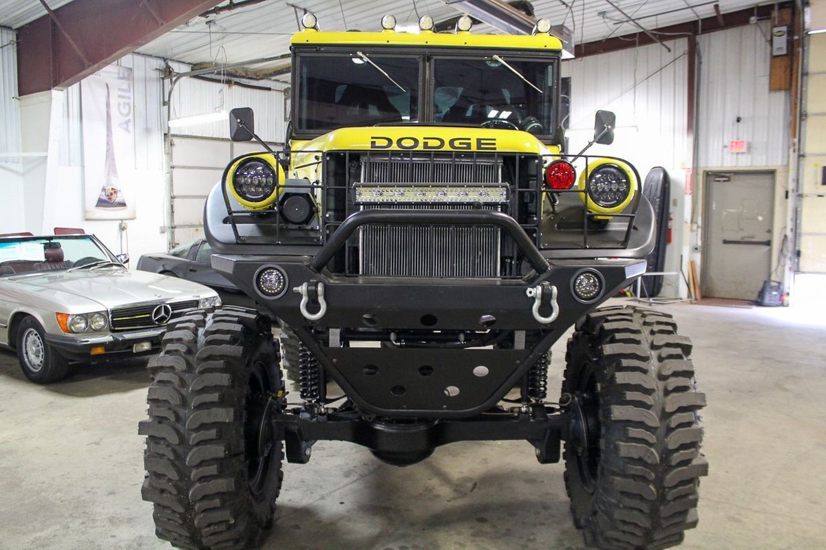 Yes, this vehicle is titled, registered and insured in the State of Michigan. Not sure if it is legal height wise to travel on the road, but who are we to stop you? First off, Oh My God! This thing is insanely well built. Definitely not a backyard build by any stretch. This comes with a very healthy and built 440 Magnum mated to a 727 Stage three transmission and a 200 Dana transfercase. The frame is fully boxed with a eight point cage. Full MSD electronics, classic instrument gauges, aluminum radiator, excellent stereo system, power retractable steps and a suspension that has 18" of travel all sitting on 2 1/2 ton axles, not to mention the insane lighting. Everything on this M37 is built very heavy duty with use in mind, not just show. I have personally driven this truck and it is awesome, it starts nicely, idles smooth, sounds killer and does everything its supposed to do. All the mechanicals are tight with no leaks or smoke, the steering is hydraulic which makes it also easy to maneuver. This rig comes out of a collection of cars with excellent care and storage. Please let us know if you have any questions and we will provide as much information as possible.