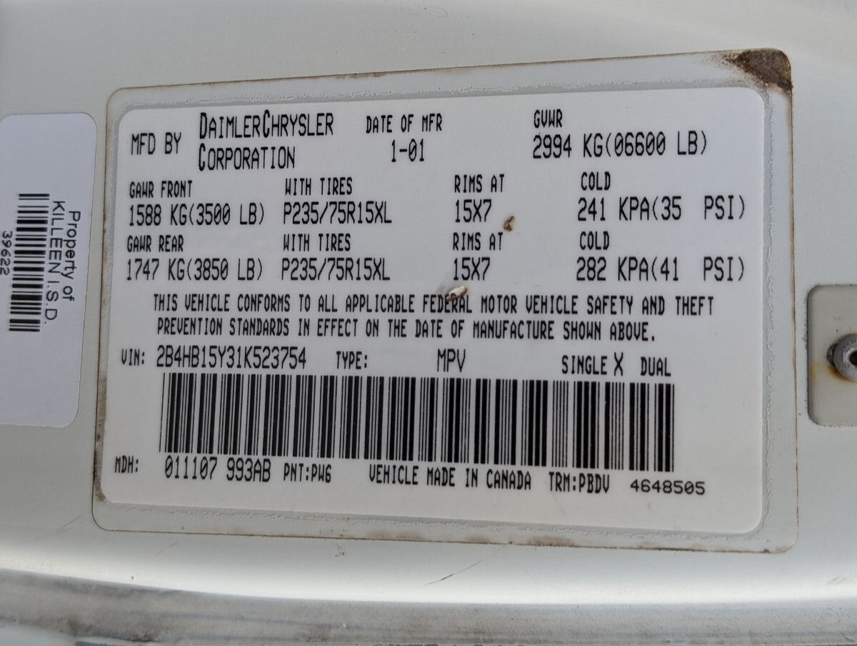2001 Dodge Ram 1500 Passenger Van 65928 Miles 5.2L V8