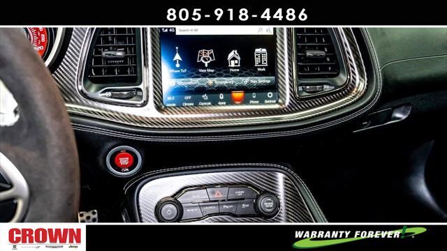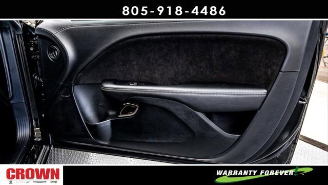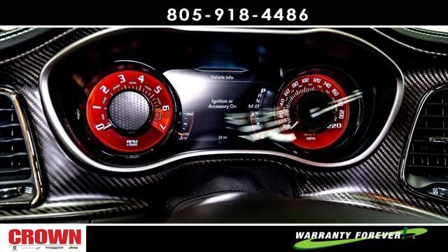 Pitch Black Clearcoat 2023 Dodge Challenger SRT Hellcat Redeye Widebody Ghost RWD 8-Speed Automatic 6.2L 8-Cylinder SMPI Supercharged OHV 18 Speakers Premium Audio System, 4G LTE Wi-Fi Hot Spot, 8.4 Touchscreen Display, All Radio Equipped Vehicles, All VP4R Radios, Apple CarPlay, Auto High Beam Headlamp Control, Automatic temperature control, Compass Gauge, Dark Engine Turn Interior Accents, Front dual zone A/C, Fully automatic headlights, Garage door transmitter, Google Android Auto, GPS Antenna Input, GPS Navigation, harman/kardon Audio Group w/Subwoofer, harman/kardon GreenEdge Amp, HD Radio, Heated front seats, Heated steering wheel, Hellcat Logo Nappa/Alcantara Seat, High-Intensity Discharge Headlamps, Integrated Center Stack Radio, Integrated Voice Command w/Bluetooth, Media Hub (2 USB, AUX), ParkView Rear Back-Up Camera, Power driver seat, Radio: Uconnect 4C Nav w/8.4 Display, Rain Sensitive Windshield Wipers, Remote keyless entry, Security system, Shark Fin Antenna, SiriusXM Radio Service, SiriusXM Satellite Radio, SiriusXM Traffic Plus, SiriusXM Travel Link, Split folding rear seat, Spoiler, Steering wheel mounted audio controls, Surround Sound, Technology Group, Trunk Mounted Subwoofer, USB Host Flip, Wheels: 20 x 9.5 Low Gloss Black Drag.Here at Crown Dodge Chrysler Jeep RAM, we believe that great service means more than just offering our new Dodge, Chrysler, Jeep, and RAM lineup. We believe that great service also includes helpful advice, friendly car financing, and the highest quality parts and repairs for your car. Our staff works hard to make your full automotive experience at our car dealership in Ventura, CA enjoyable, and we look forward to helping you today! All vehicles at Crown Dodge have our SWAT security system $995,Clear Shield $395, Pulse $395, Wheel Locks $395, Windshield Protection $995, Nitro Fill $499, Screen Protector $395 and $1295 Paint/Fabric Protection pre-installed. Prices on the website do not include dealer-added equipment. Discounts include $2,000 Trade-In Dealer Assist Cash. Must trade in a 2015 or newer vehicle on a retail purchase. Trade-in must have less than 15,000 miles on average per year stated on Carfax Report, clean title, and Clean vehicle history report. Expires 02/19/2024. Expires 02/29/2024.