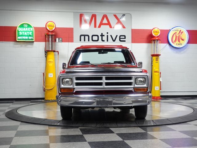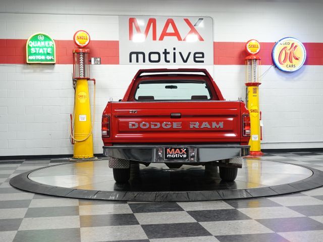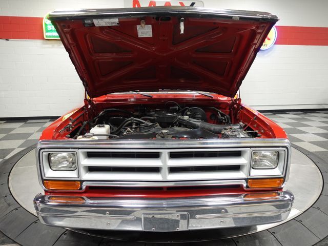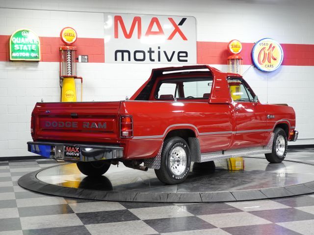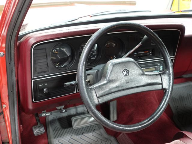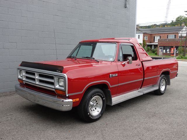 Here’s a nice 1990 Dodge Ram 100 Pickup now available from the MaxMotive Pittsburgh Showroom. It’s powered by the dependable 5.2L V8 engine and 4-speed automatic transmission with lock-up torque converter. An 8.25 rear with a 3.50:1 axle ratio completes the drivetrain. Factory options include power steering and power front disc brakes. The original color Colorado Red is accented with gray graphics. It sports cast aluminum wheels on Firestone OWL tires, a Lund spoiler arch, and a Pendaliner bed liner. The original wheels are included as well. The red interior looks great along with the original dash and gauges. The odometer reads 56472. A JVC stereo with CD is a nice addition. This 1990 Dodge Ram 100 is ready for work or play. See the detailed photos at /span-.