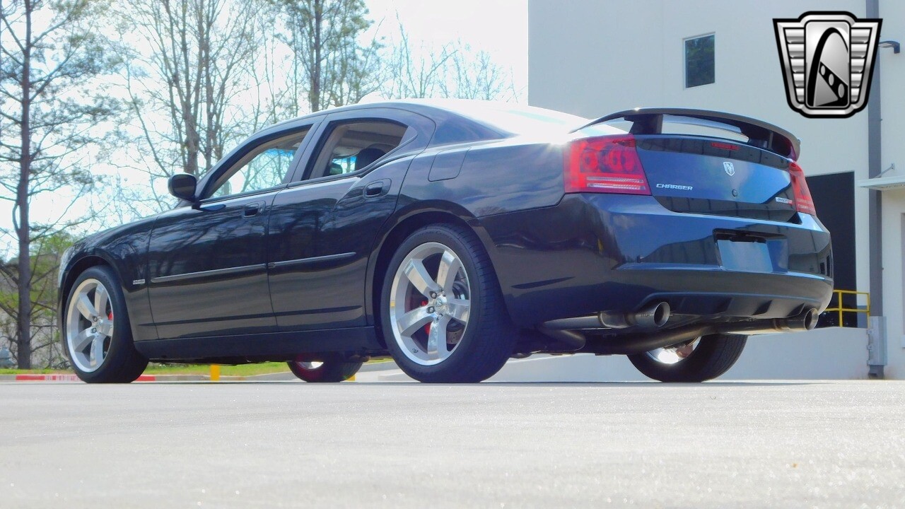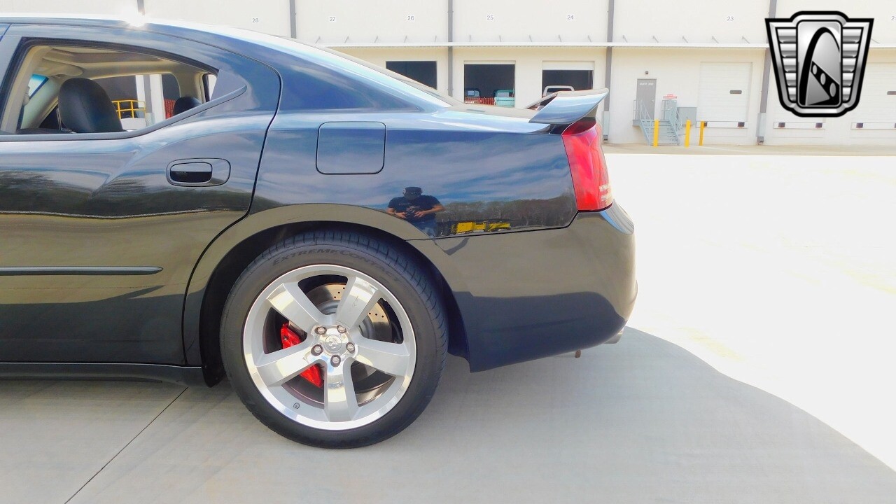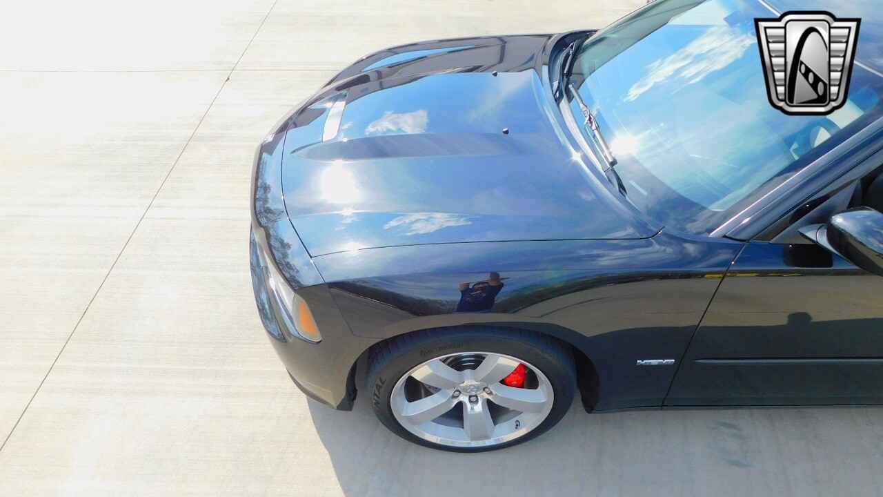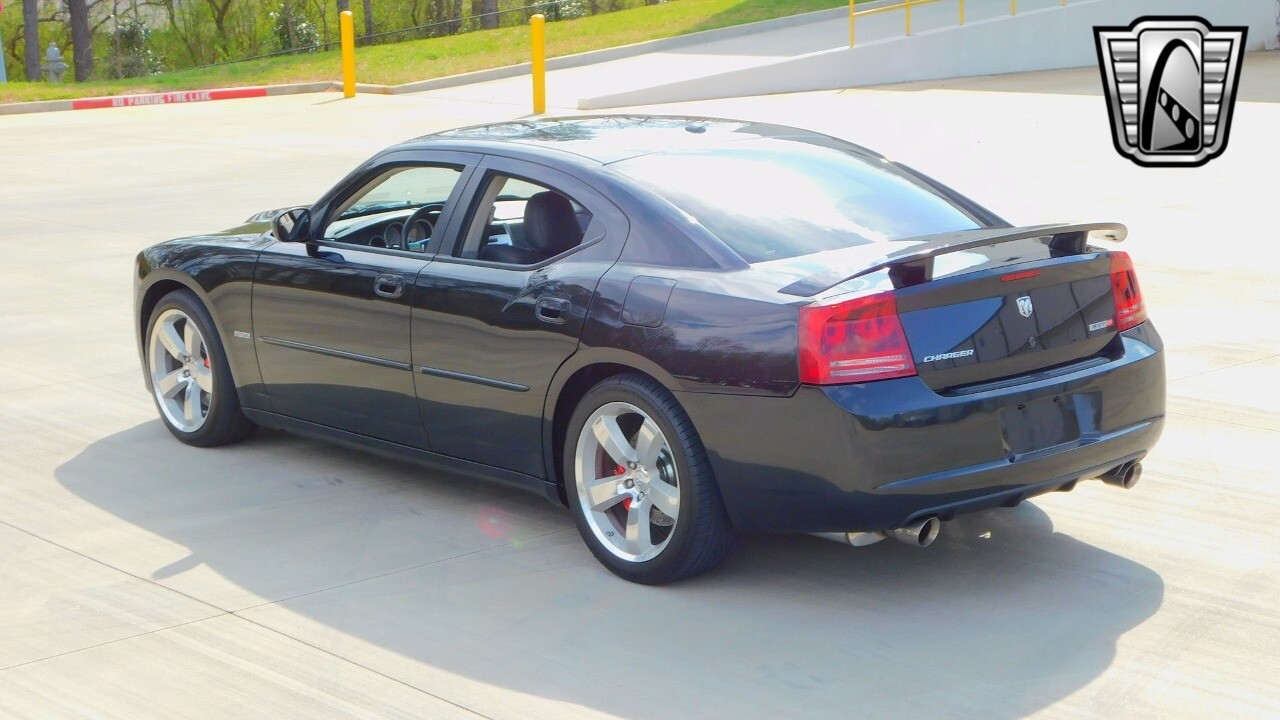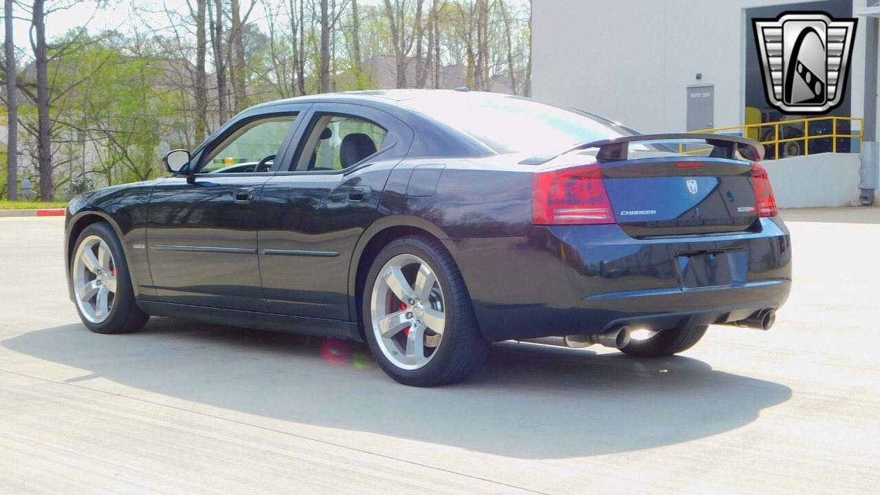 Introducing the 2006 Dodge Charger SRT 8, a stylish vehicle that combines performance and comfort in one package. This vehicle comes in a black exterior color, complemented by a matching black interior, creating a bold and sophisticated look.