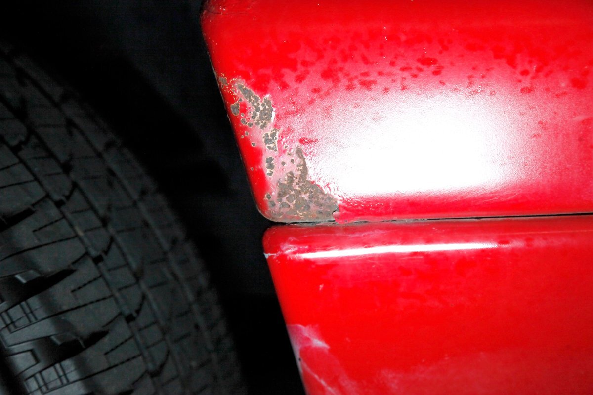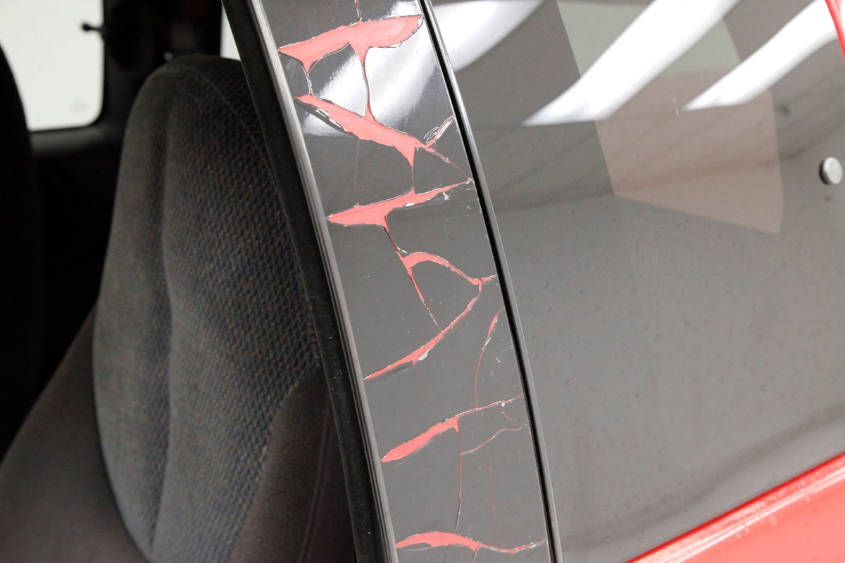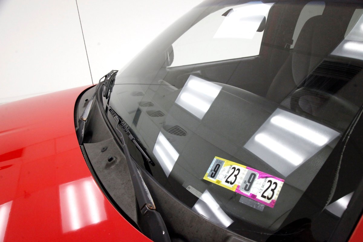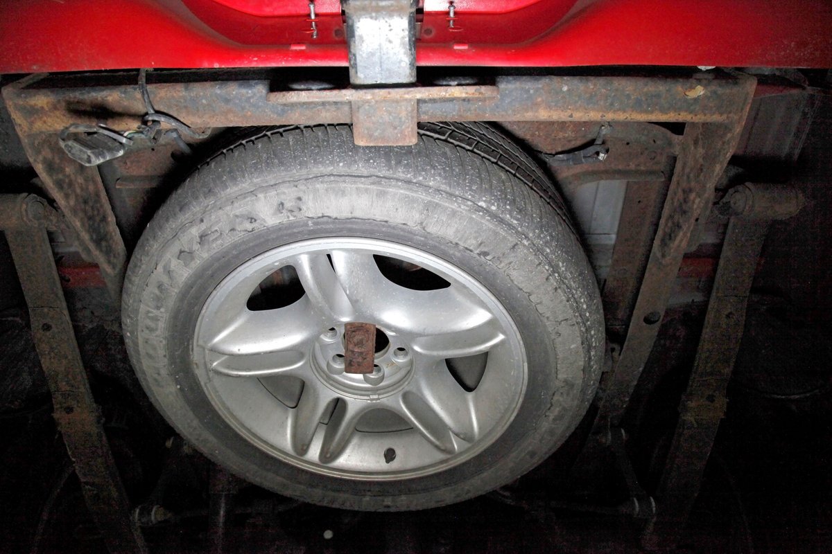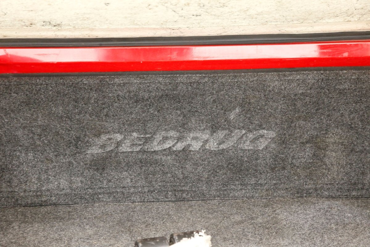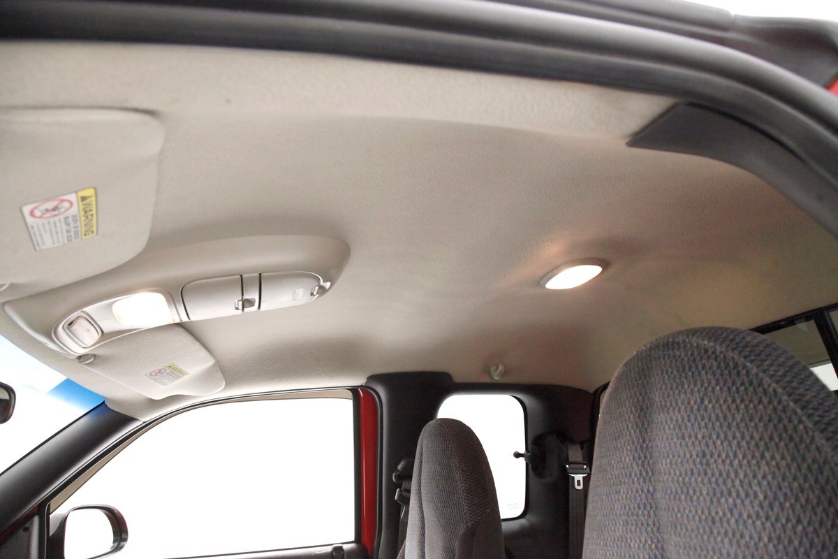 A Flame Red painted wild child if you will, and then some, we are graced with this Dakota in our presence. This is not just your run of the mill truck either, as it has a custom mesh Street Scene grille installed. Aero designed headlights are flanking on either side and have been slightly tinted just like the glass. The red painted bumper in front is showing some rust on the driver's corner most likely due to a mishap and below is a large open smaller grille within the wide bumper and some inset running lights are seen. Lightly smoked glass for the cab with black trimmings and black B pillar wrap-ins coming loose on the drivers and passenger's sides are also noted. Black decal badges present on the door panels, and adding to the mystique are black mirrors, handles and plenty of smoked window visors. On the back, a pneumatic tube bed cover in fiberglass protects your cargo. The interior of the bed is also covered in trunk liner charcoal gray carpeting throughout. The rear bumper has been shaved for a cleaner look and this is coming our way this way from the factory. Nice side and bed panels are all rust free and a vertical black RT badged stripe is just forward of the tailgate on either side. Dual exhaust peek out the passengers side just forward of the rear wheels. 17-inch wheels are wrapped in 235/60R17 rubber from the 41st week of 2020.
