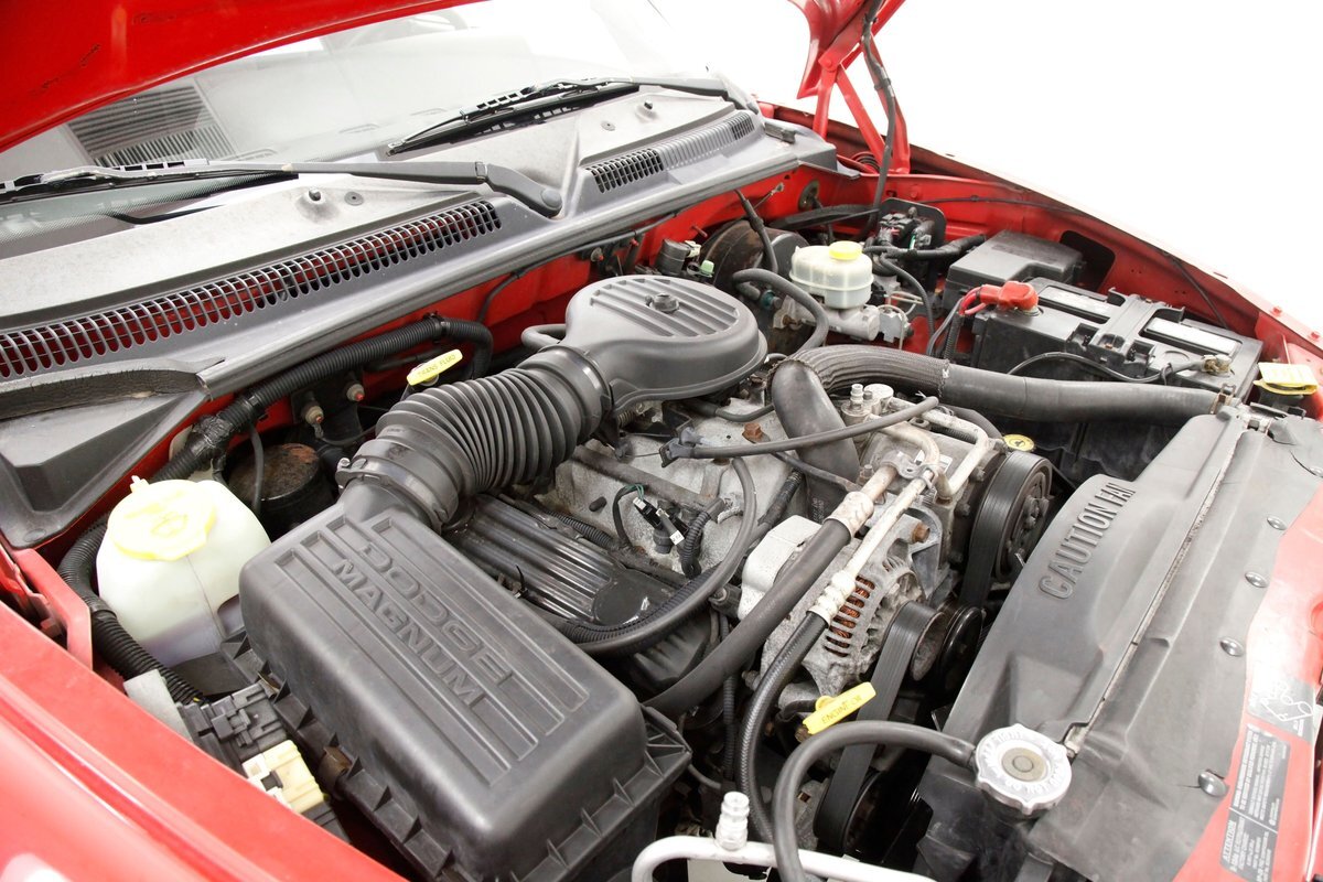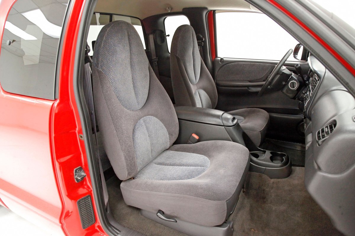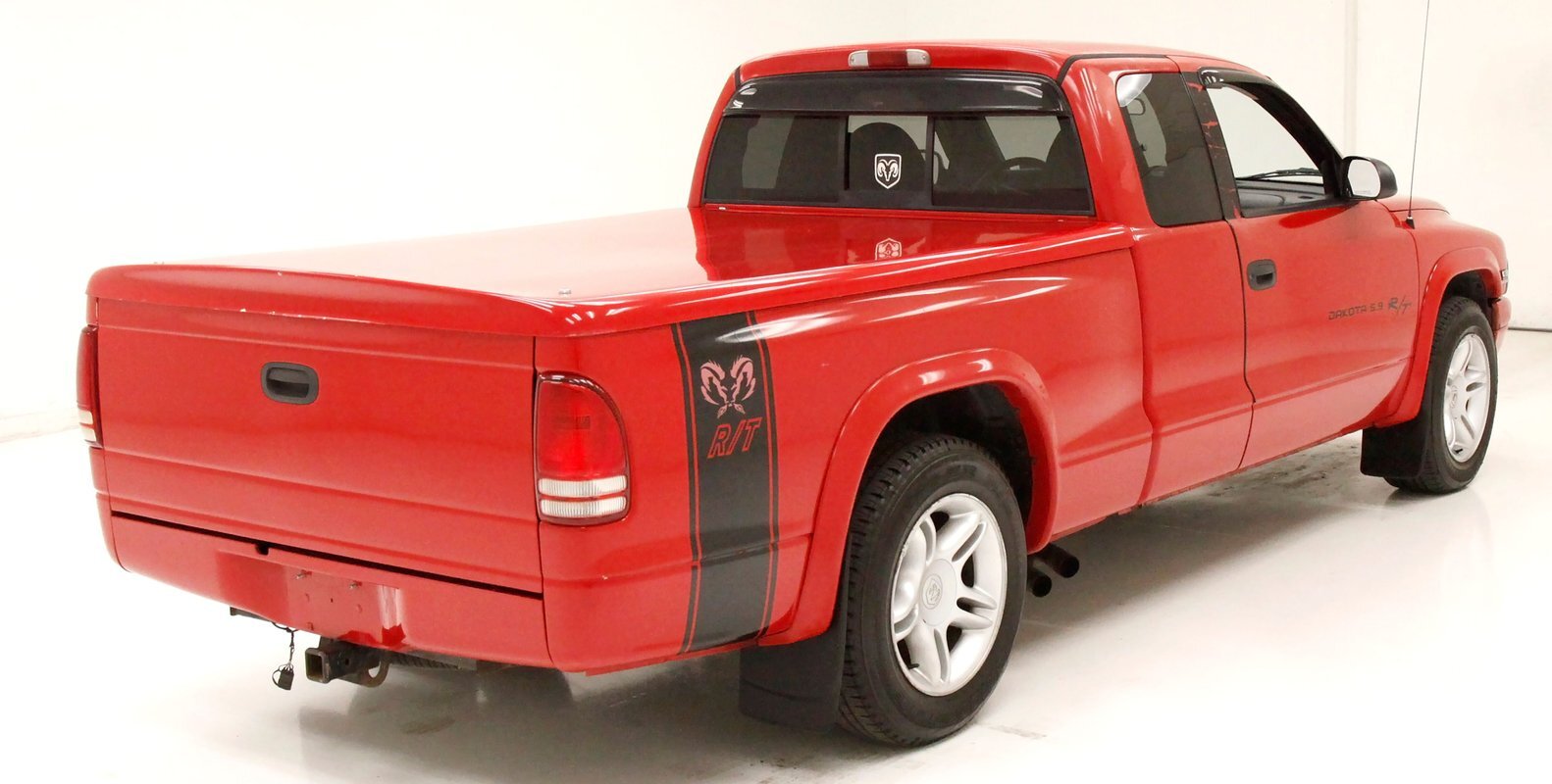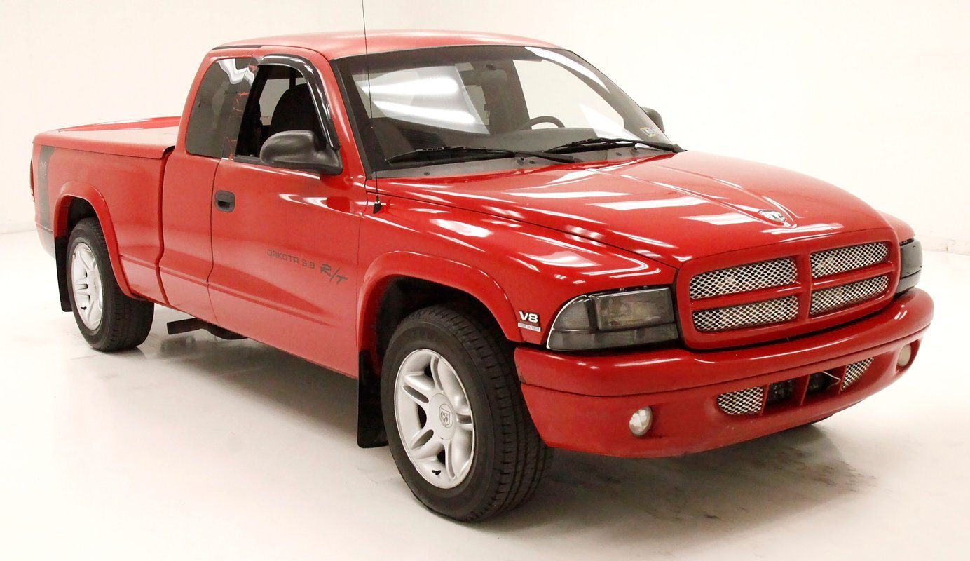 For consignment, a Dodge Dakota in Club Cab format with a snappy 5.9 Liter EFI V8 engine mated to a 4-speed automatic transmission and some RT striping thrown on for good measure. Let's call this a family and cargo hauling friendly sport truck capable of generating plenty of thrills without emptying your savings account just its fuel tank! A Dakota is the only truck that truly drives like a sports car. This is largely due to its smaller size, as a full-size pickup is simply too large to experience a similar feel. Our example has been unmolested only to have tinted glass, slightly tinted headlights and a bed covering like the NASCAR truck series racers.