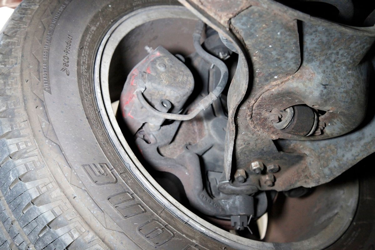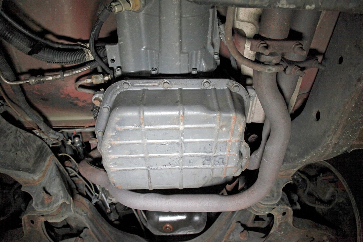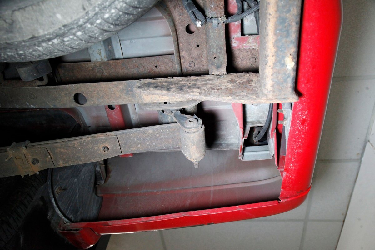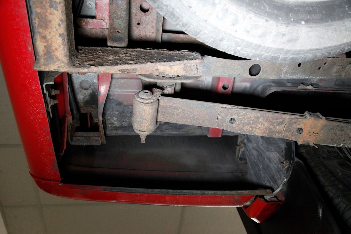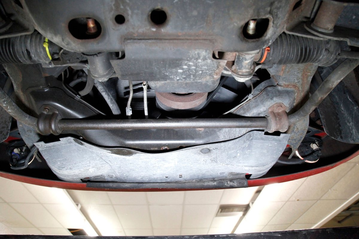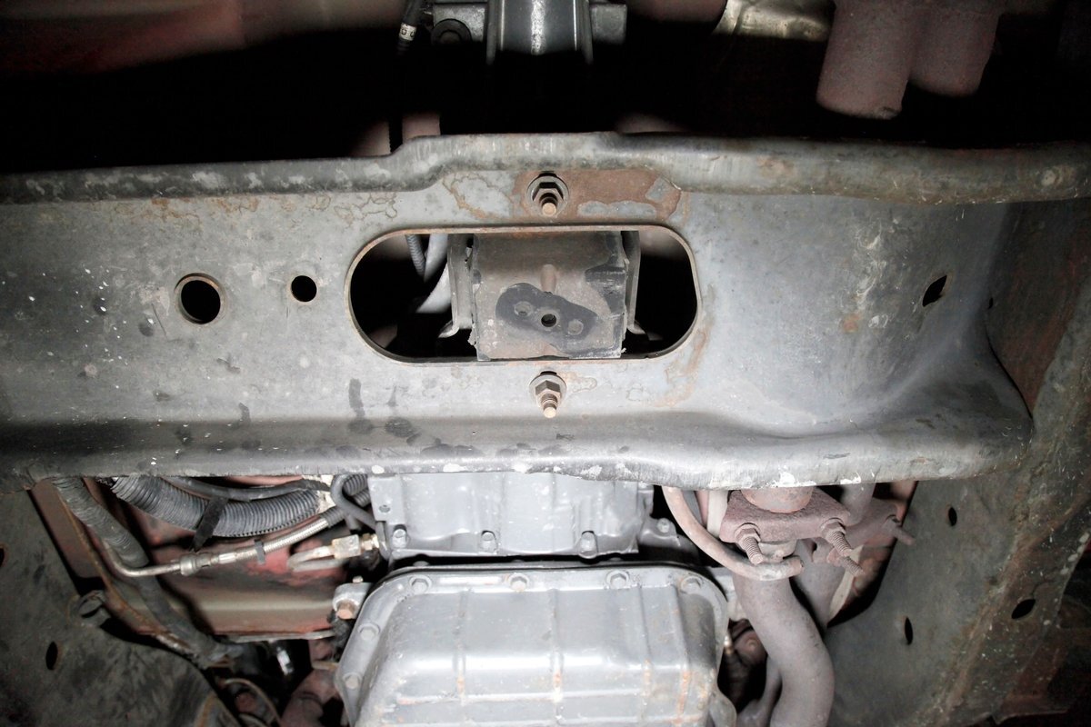 Peering underneath we see some light surface rust covering the usual suspects, but all solid and structurally sound. Power disc brakes are on front, and power drums for the rear, and a Flowmaster exhaust sans the catalytic converter is now installed. Remember these side exit pipes gives this truck a nice roar. Providing the ride is an independent front suspension with coil springs and in back leaf springs.