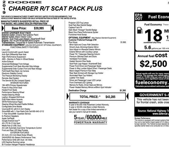 Power Door Locks, Air Conditioning, Dual Air Bags, Power Steering, Heated Seats, Ventilated Seats, Cruise Control, Side Air Bags, Daytime Running Lights, AM/FM/HD Radio, ParkSense Park Assist, Dual Power Seats, RWD, Tilt & Telescoping Wheel, F&R Head Curtain Air Bags, Alarm System, Rear Spoiler, Hill Start Assist Control, Power Trunk Release, Traction Control, Blind-Spot Alert, Rollover Protection, Keyless Entry, CD/MP3 (Single Disc), SiriusXM Satellite, Bi-HID Headlamps, Electronic Stability Control, Fog Lights, Backup Camera, Premium Wheels 19'+, Power Windows, Automatic, 8-Spd w/AutoStick, Push Button Start, ABS (4-Wheel), V8, HEMI, 6.4 Liter, Bluetooth Wireless, Uconnect