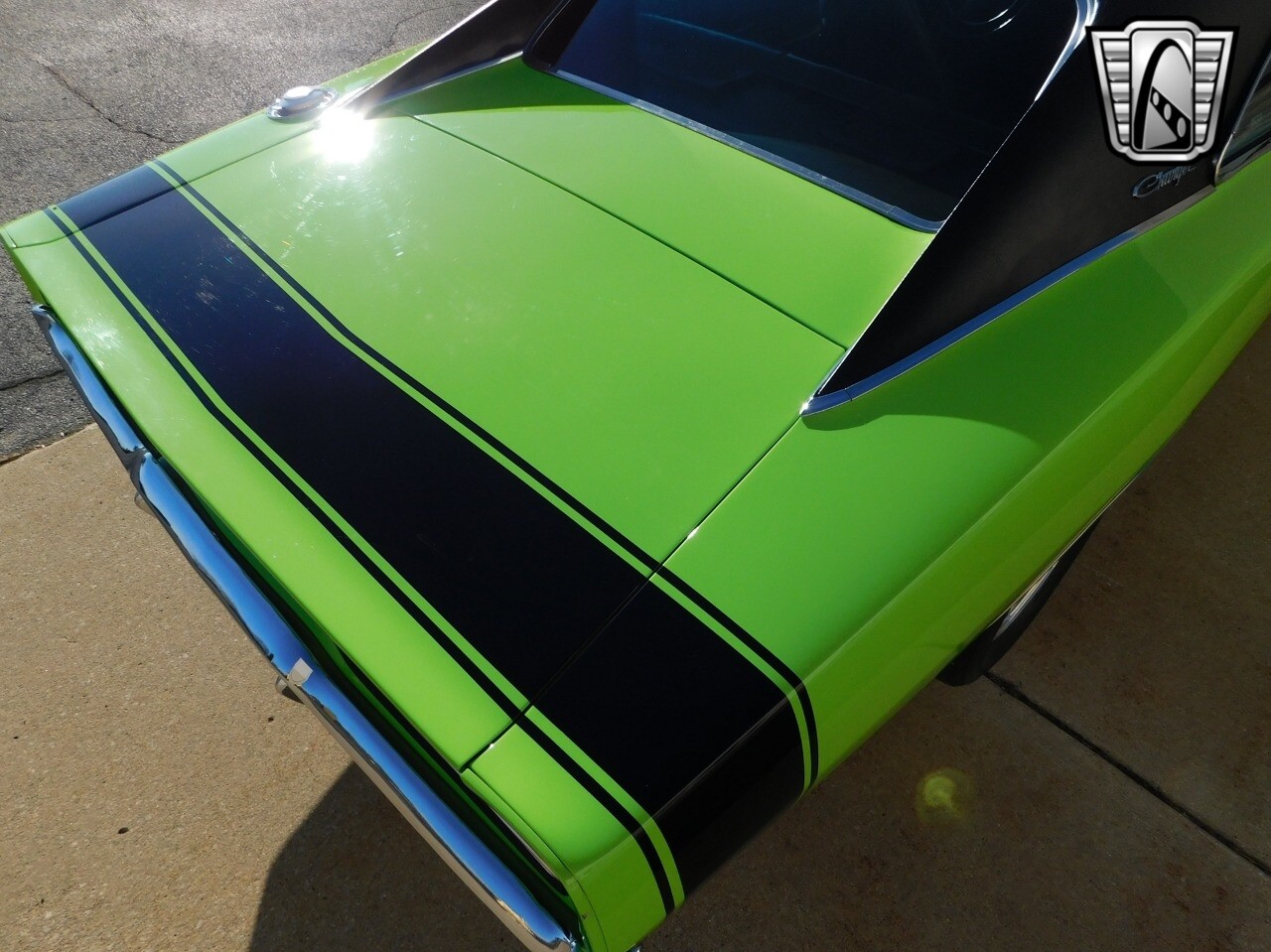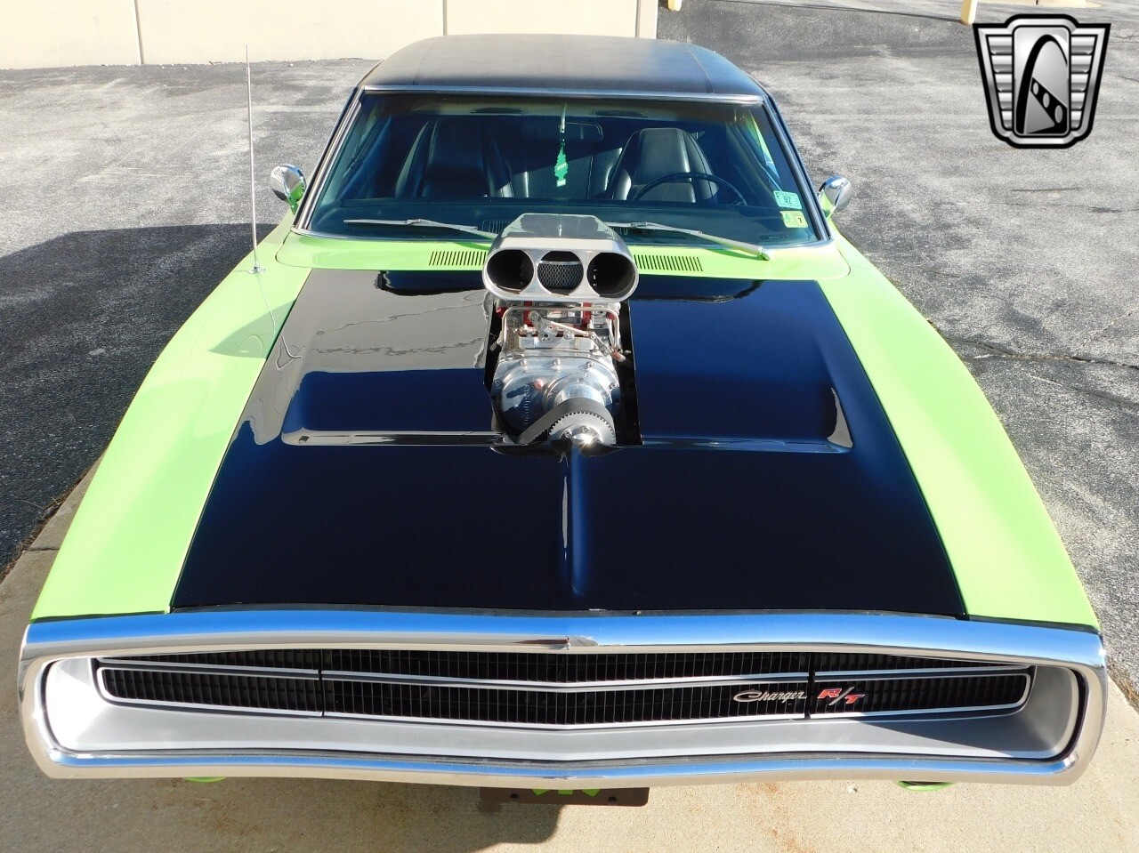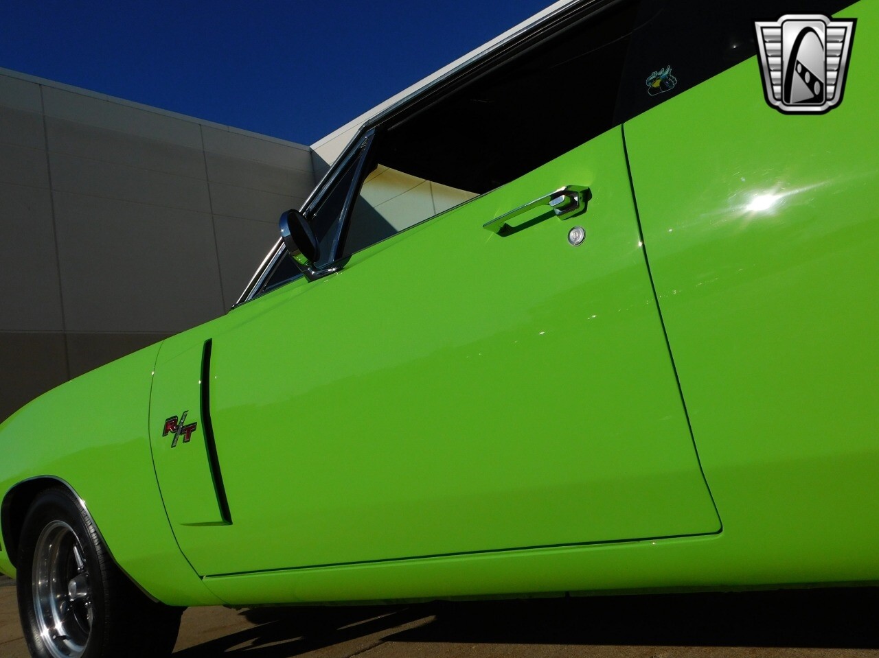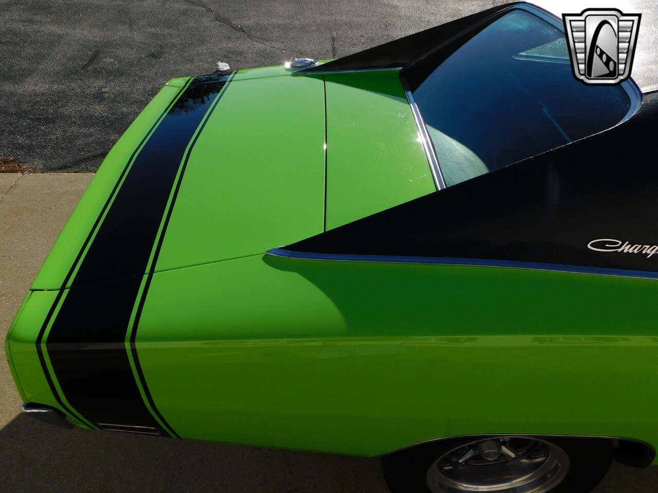 Experience the thrill of driving with this 1970 Dodge Charger R/T, a classic American muscle car that is sure to turn heads wherever you go. This beauty is dressed in a striking Rallye Green (EF6) exterior, a color that instantly commands attention and showcases its iconic design.
