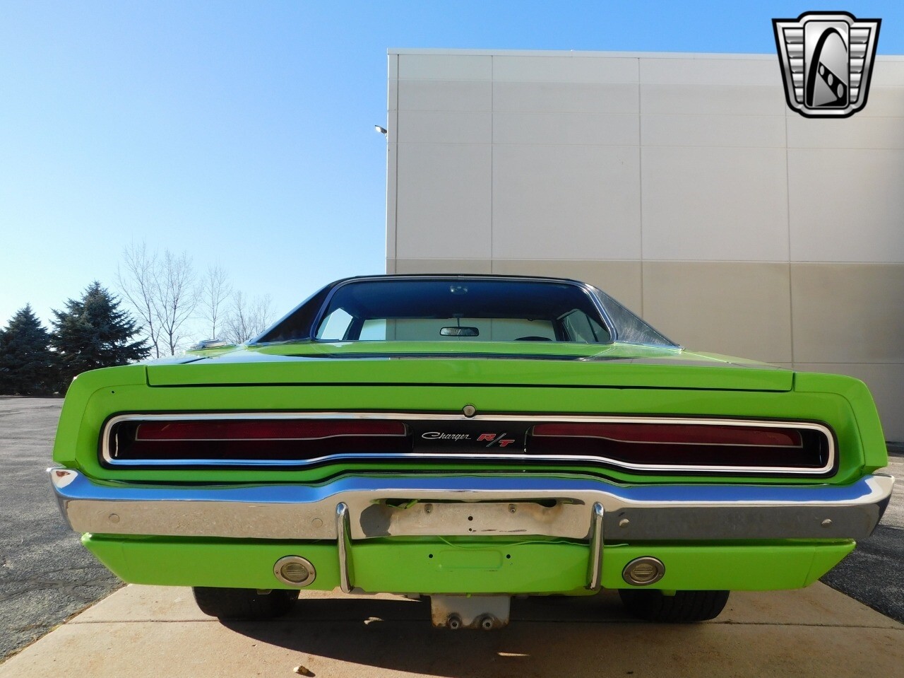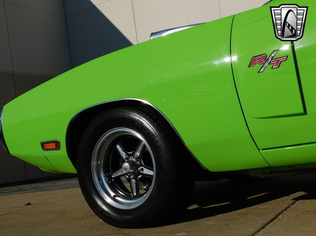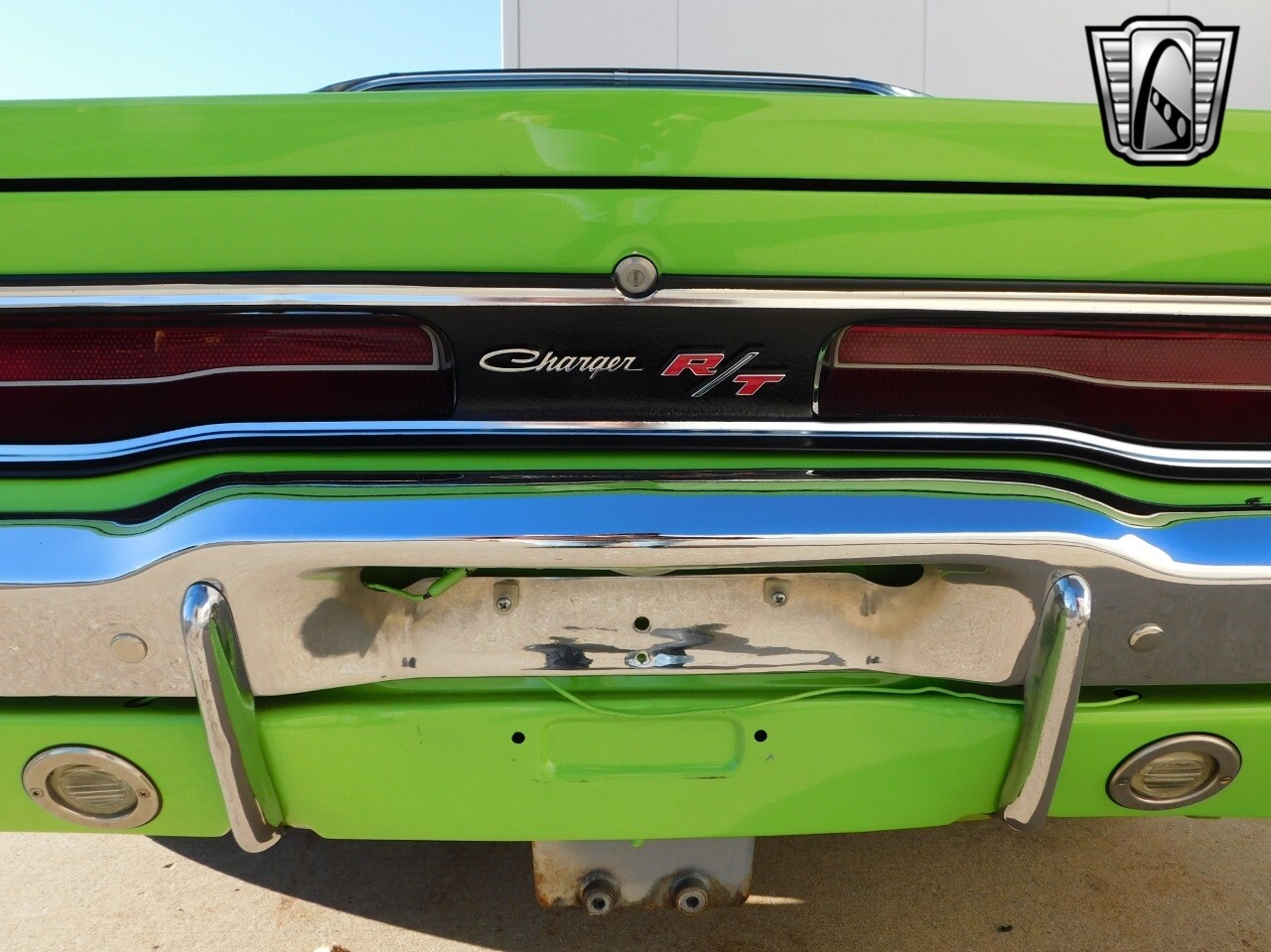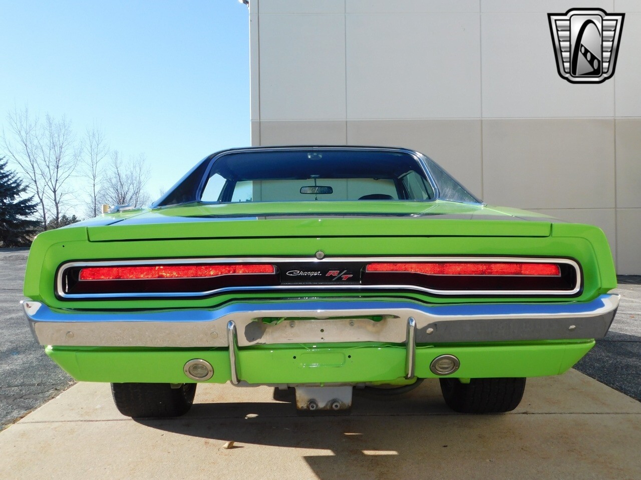 Experience the thrill of driving with this 1970 Dodge Charger R/T, a classic American muscle car that is sure to turn heads wherever you go. This beauty is dressed in a striking Rallye Green (EF6) exterior, a color that instantly commands attention and showcases its iconic design.