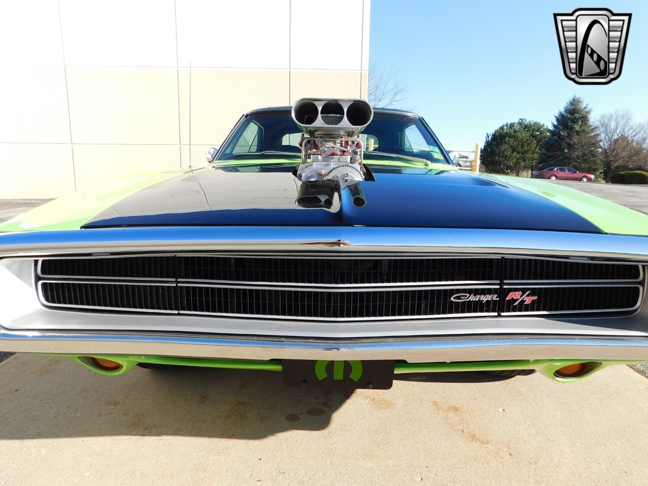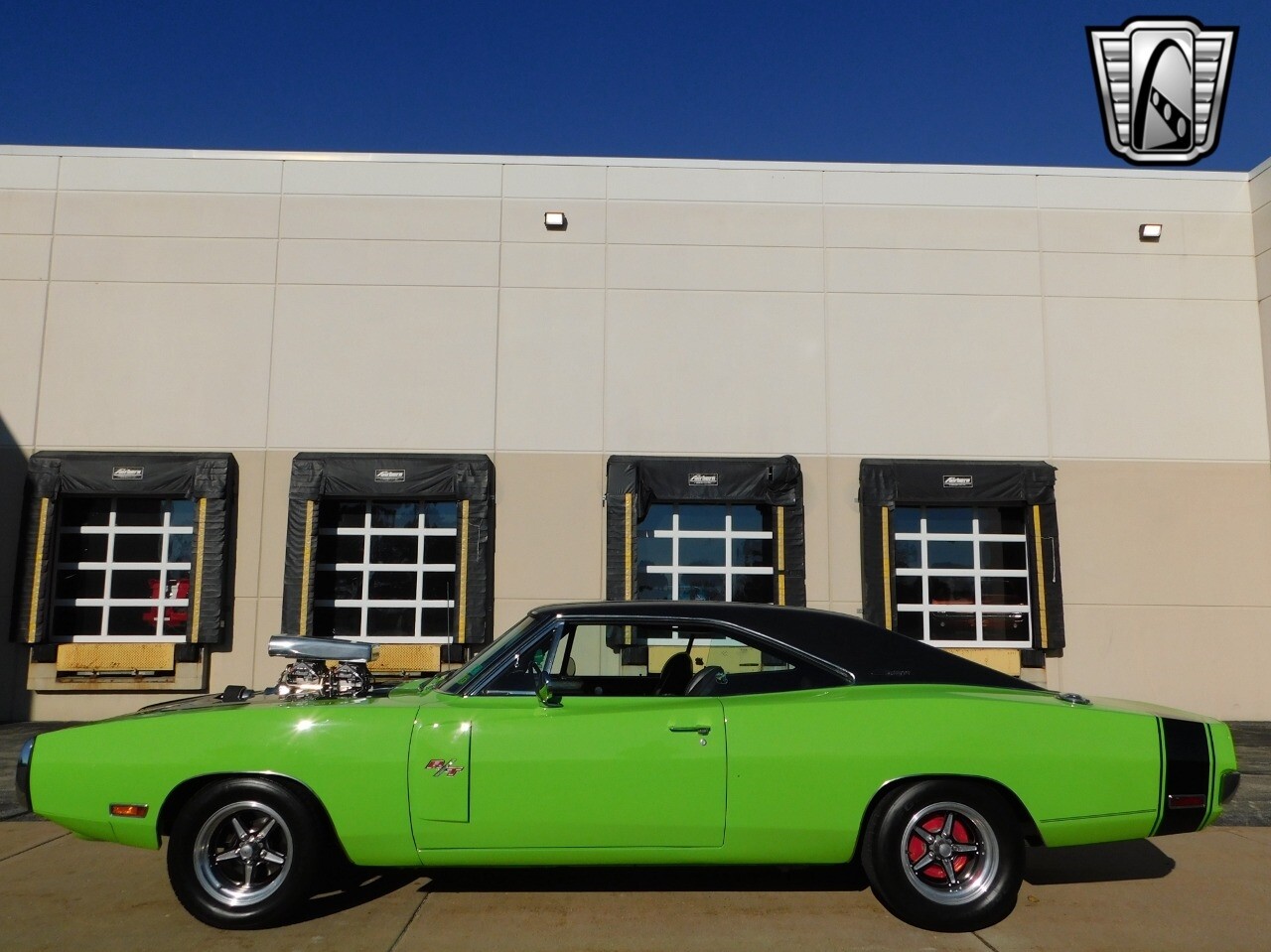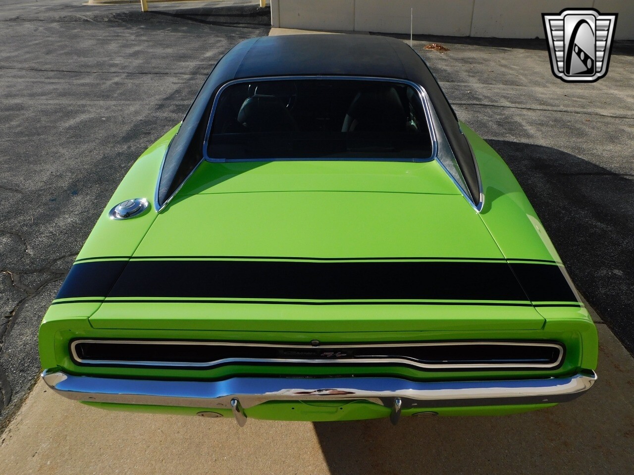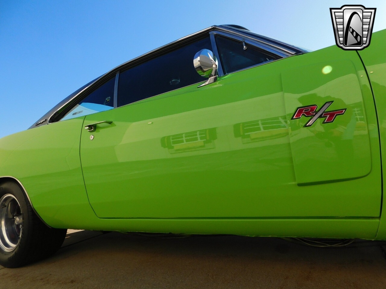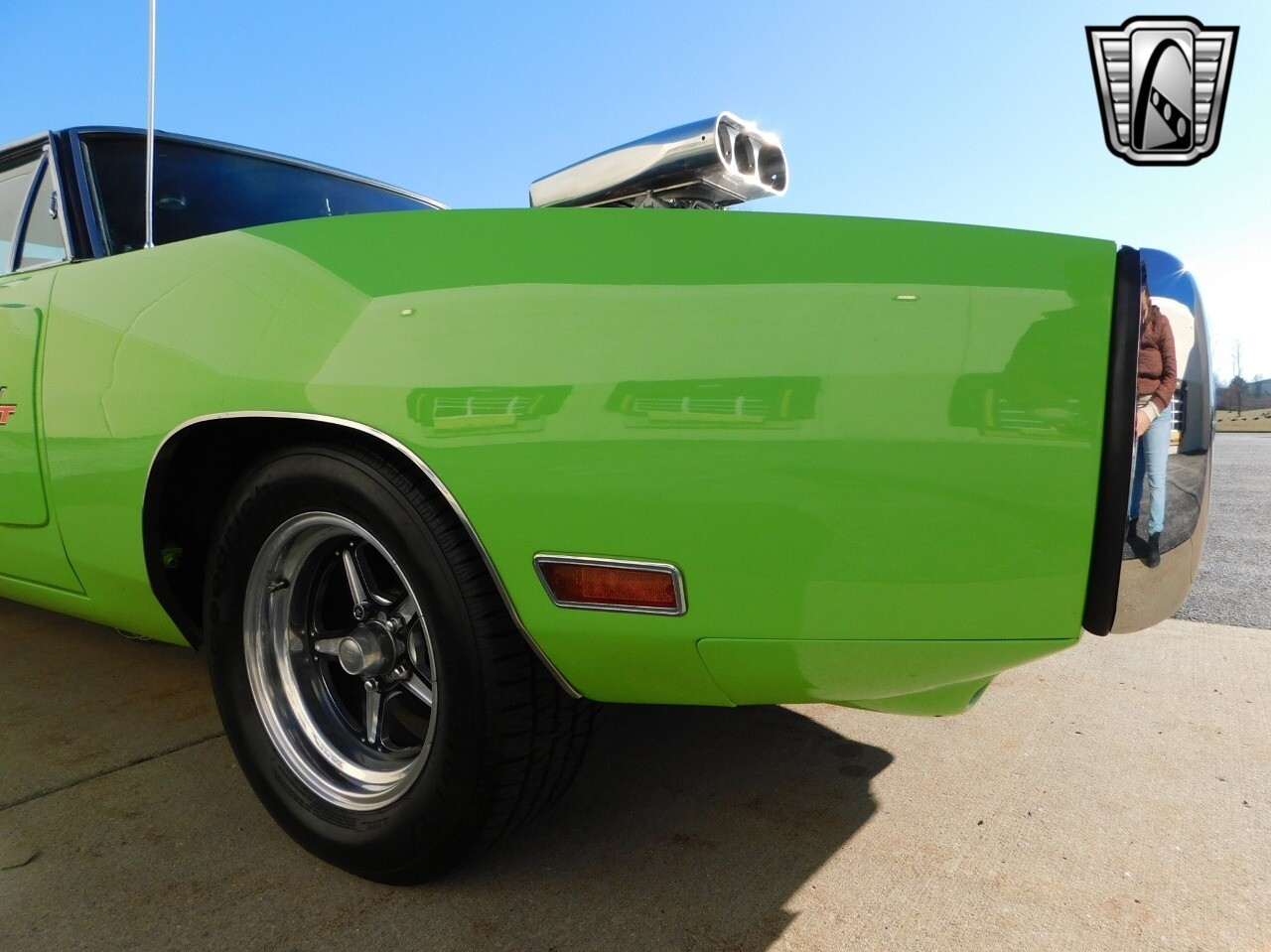 Experience the thrill of driving with this 1970 Dodge Charger R/T, a classic American muscle car that is sure to turn heads wherever you go. This beauty is dressed in a striking Rallye Green (EF6) exterior, a color that instantly commands attention and showcases its iconic design.