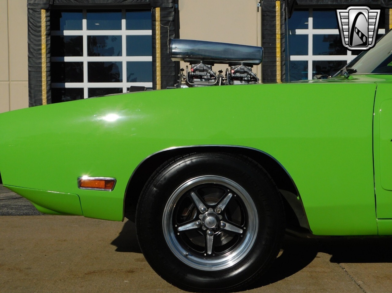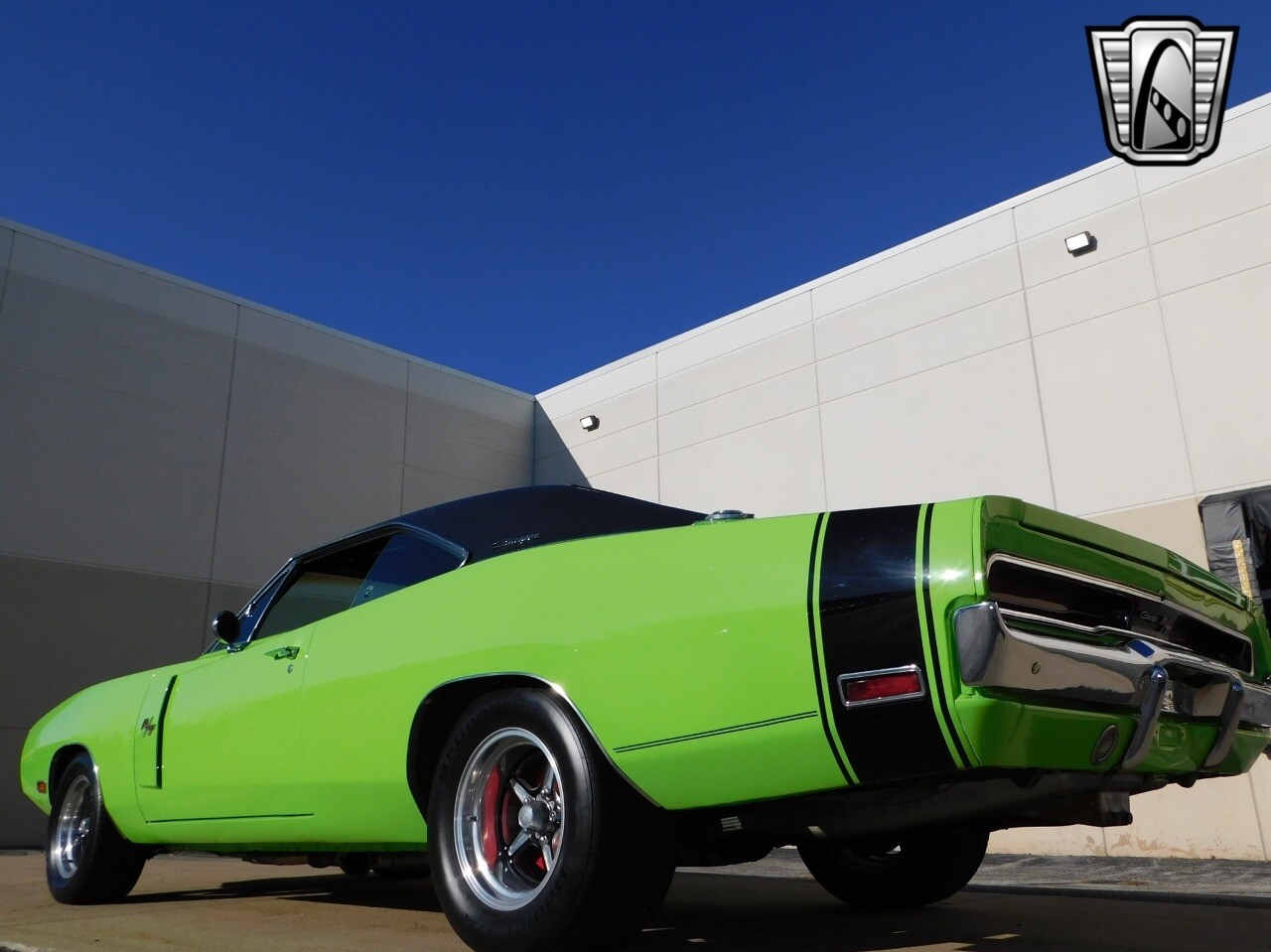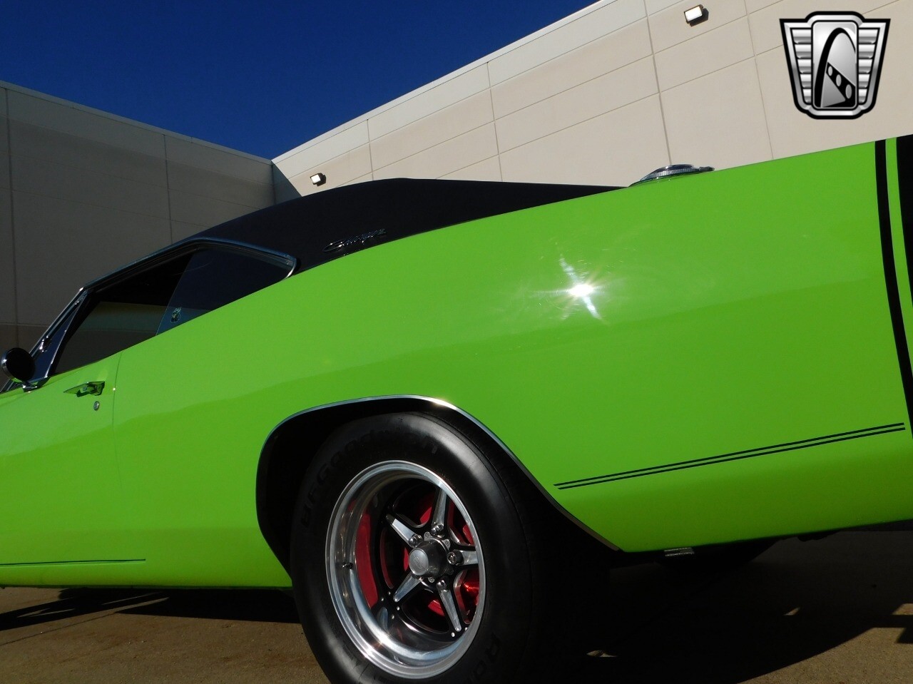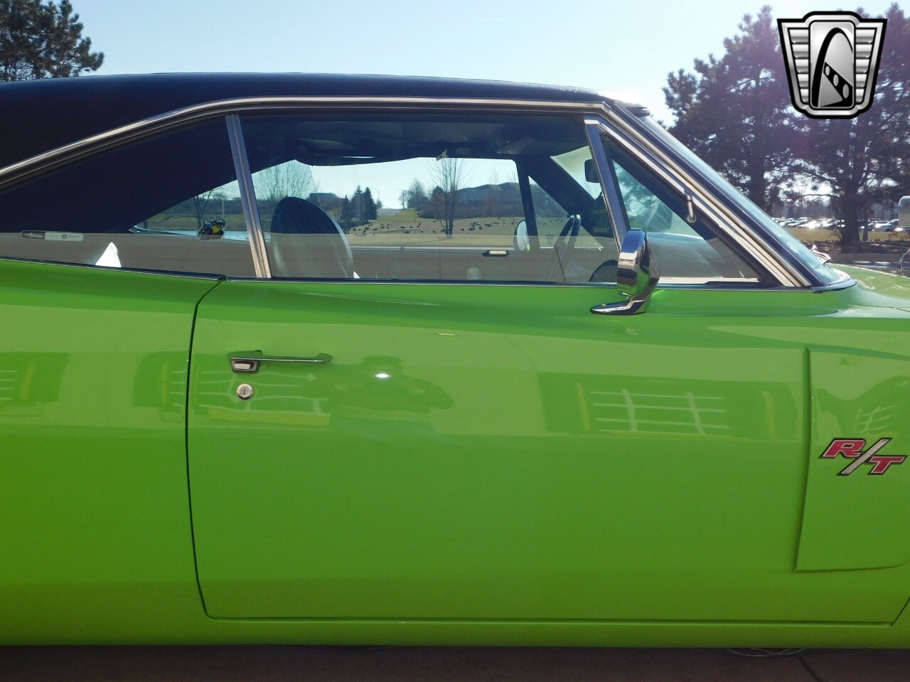 Experience the thrill of driving with this 1970 Dodge Charger R/T, a classic American muscle car that is sure to turn heads wherever you go. This beauty is dressed in a striking Rallye Green (EF6) exterior, a color that instantly commands attention and showcases its iconic design.