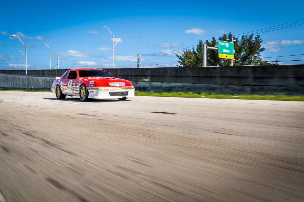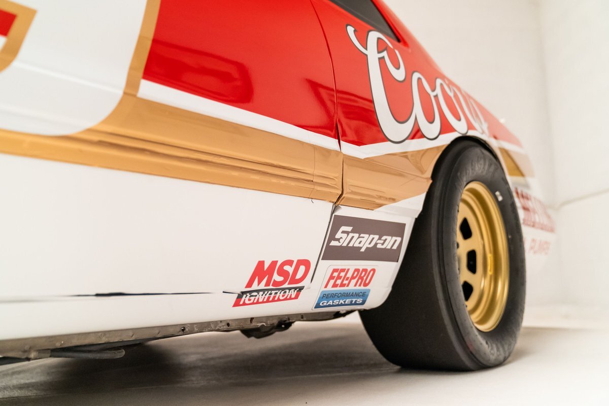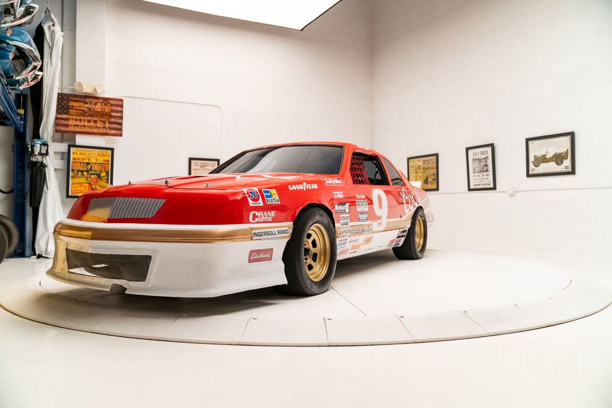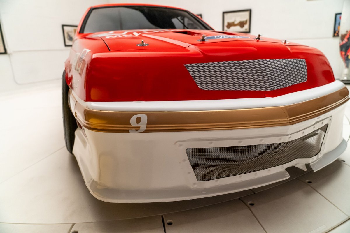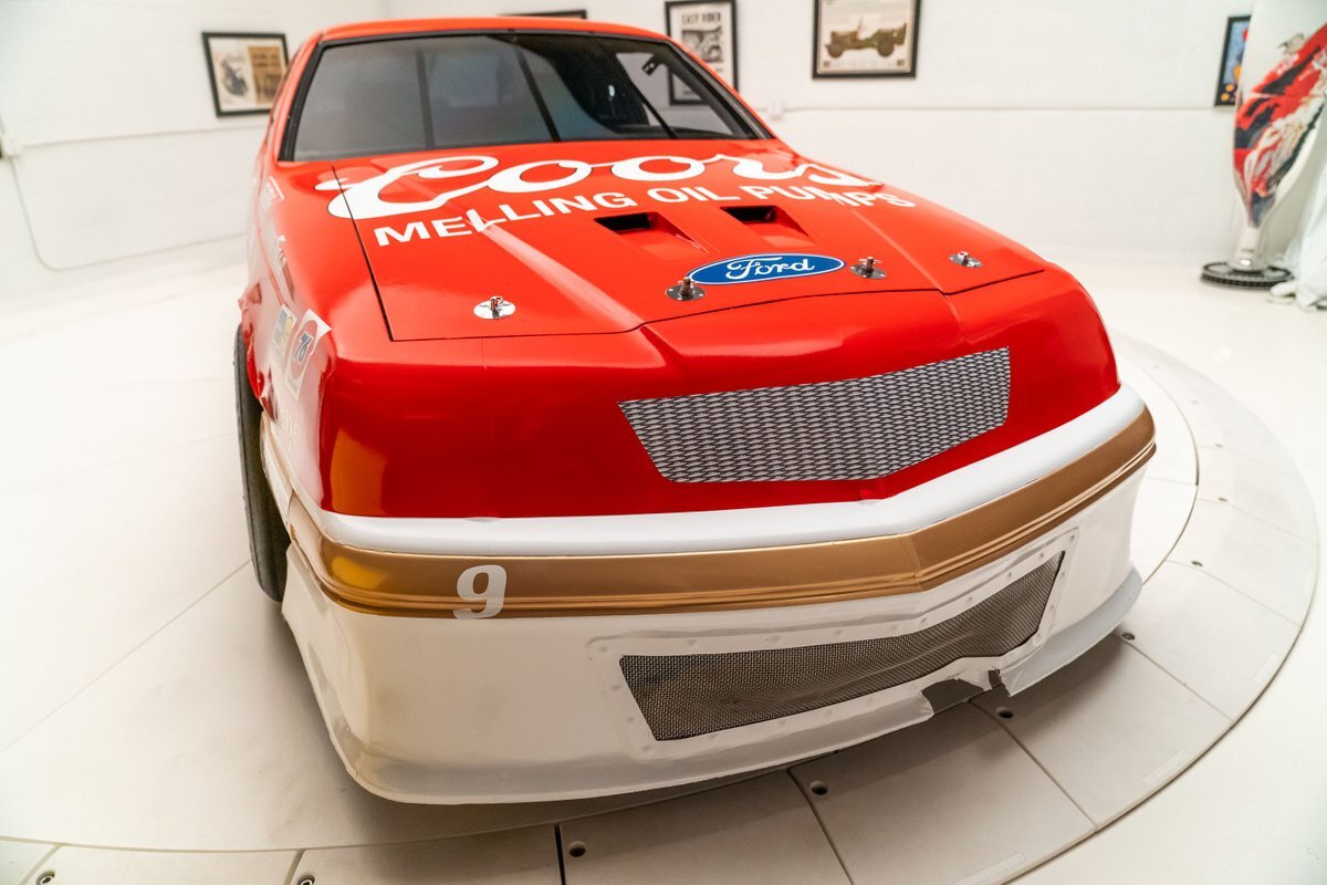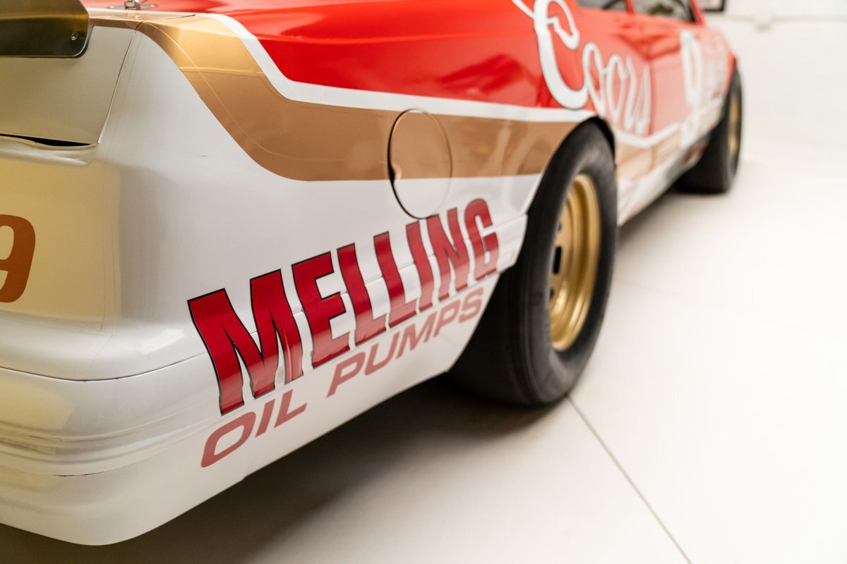 This 1988 Ford Thunderbird Turbo Coupe was modified under prior ownership in the style of Bill Elliott's 1988 NASCAR Winston Cup Championship-winning race car. It was then used in a NASCAR commercial prior to ourr acquisition. Finished in silver under a Coors livery wrap, the car retains much of its Medium Gray leather street car interior sans door panels and has been fitted with a window net, a rear spoiler, a front air dam, coilover suspension, and gold 15" Bassett wheels with racing slicks. It is powered by a turbocharged 2.3-liter inline-four mated with a five-speed manual transmission and a Traction-Lok limited-slip differential, and additional equipment includes tinted windows, a Grant steering wheel, electronic climate control, and a cassette stereo with a graphic equalizer. This modified Turbo Coupe shows 174k miles and is now offered for off-road use only with service records and a bill of sale.