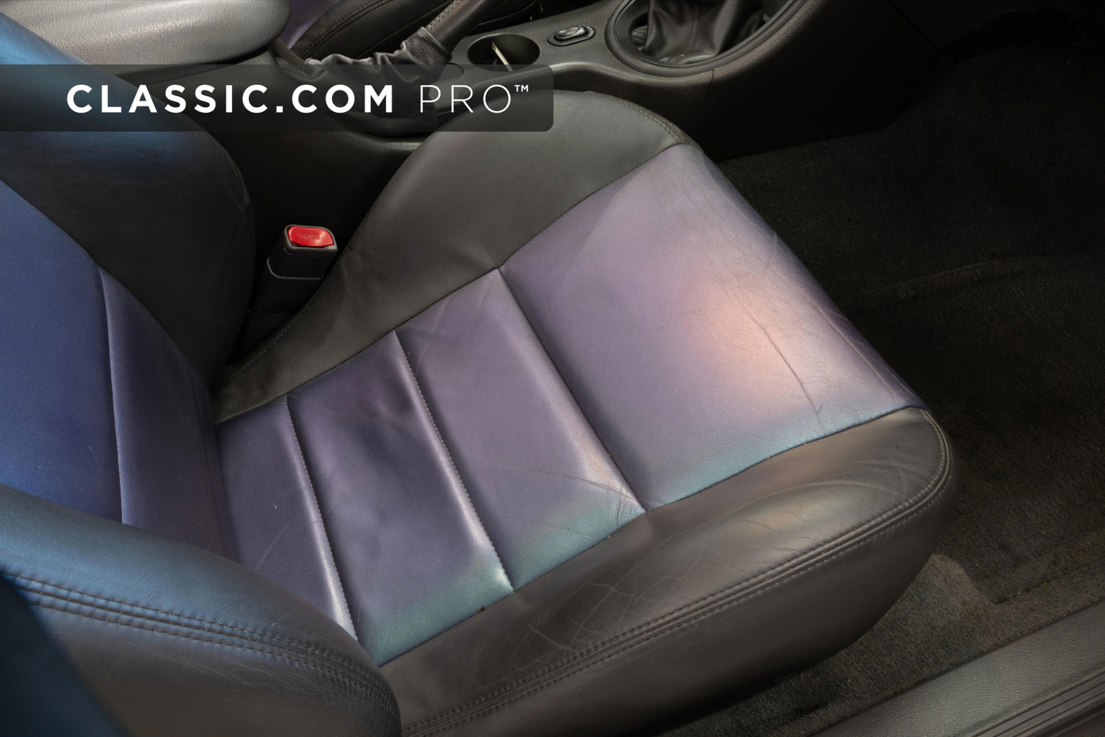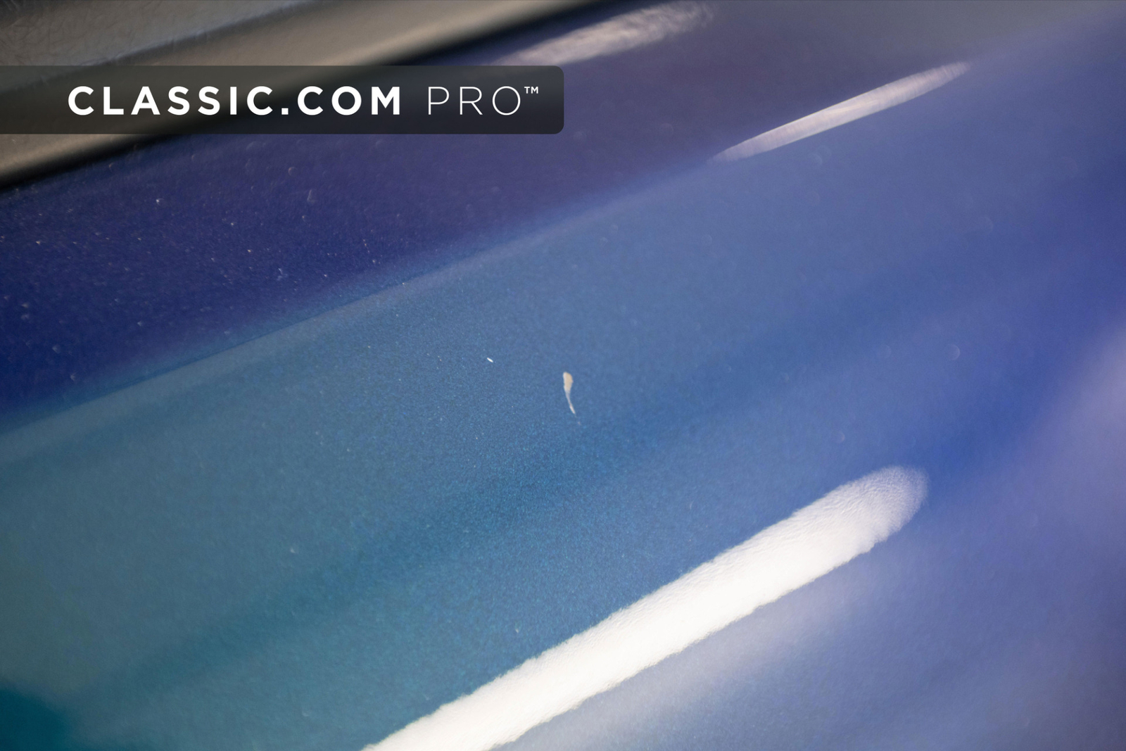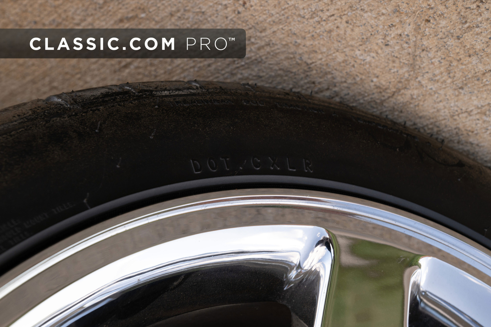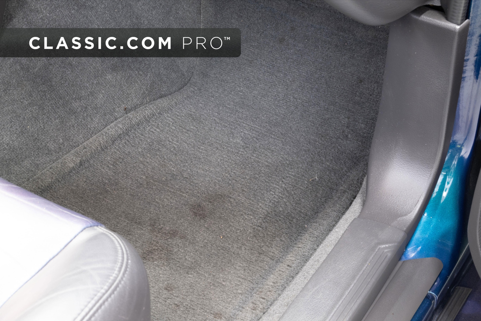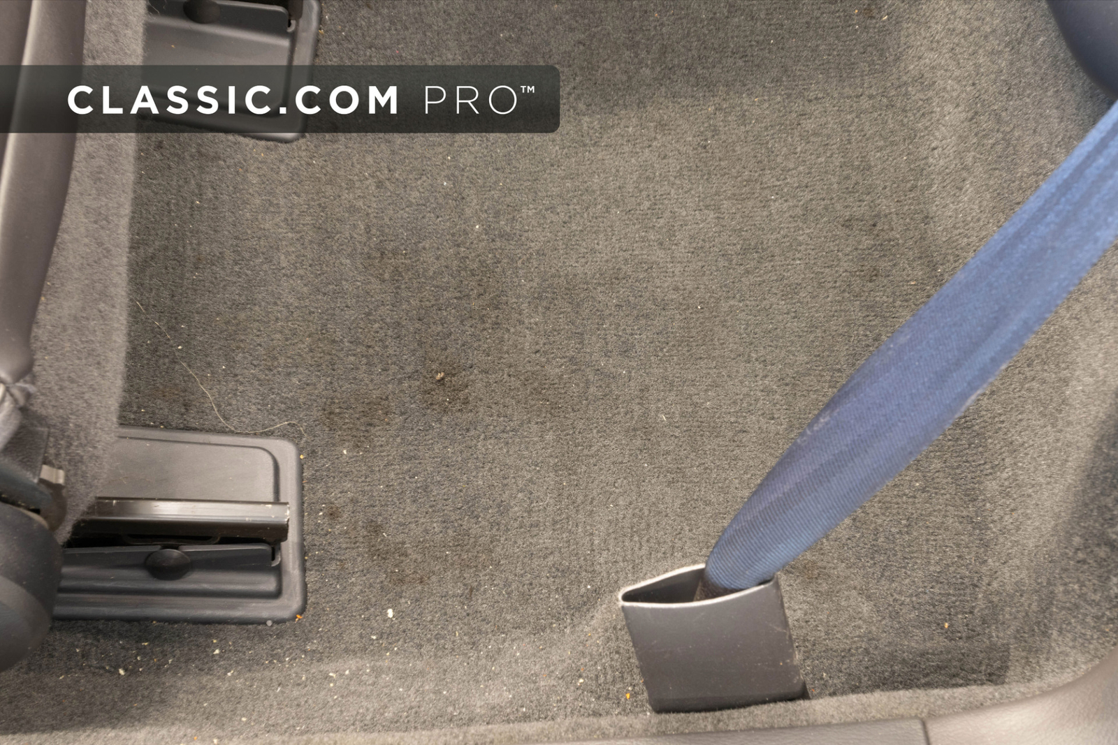 A third-party inspection and detailed photos document the original, low-mileage condition of the vehicle. The exterior paint shows minor paint chips and light scratches that are consistent with the age of the vehicle. There is a small dent on the front bumper that can be seen in the closeup images. The chrome wheels and the black convertible soft-top are found to be free of blemishes. The leather driver's seat shows some creasing and minor wear but the two-tone upholstery is otherwise in good condition. Photos show minor staining of the rear carpet but the vehicle shows light use overall. The accident-free CarFax shows dealership maintenance and an August 2017 entry shows the current mileage indicating the vehicle has been stored for the past six years. Included in the sale are one set of keys, a reproduction window sticker, the original owner's manual, and a wheel lock removal tool.