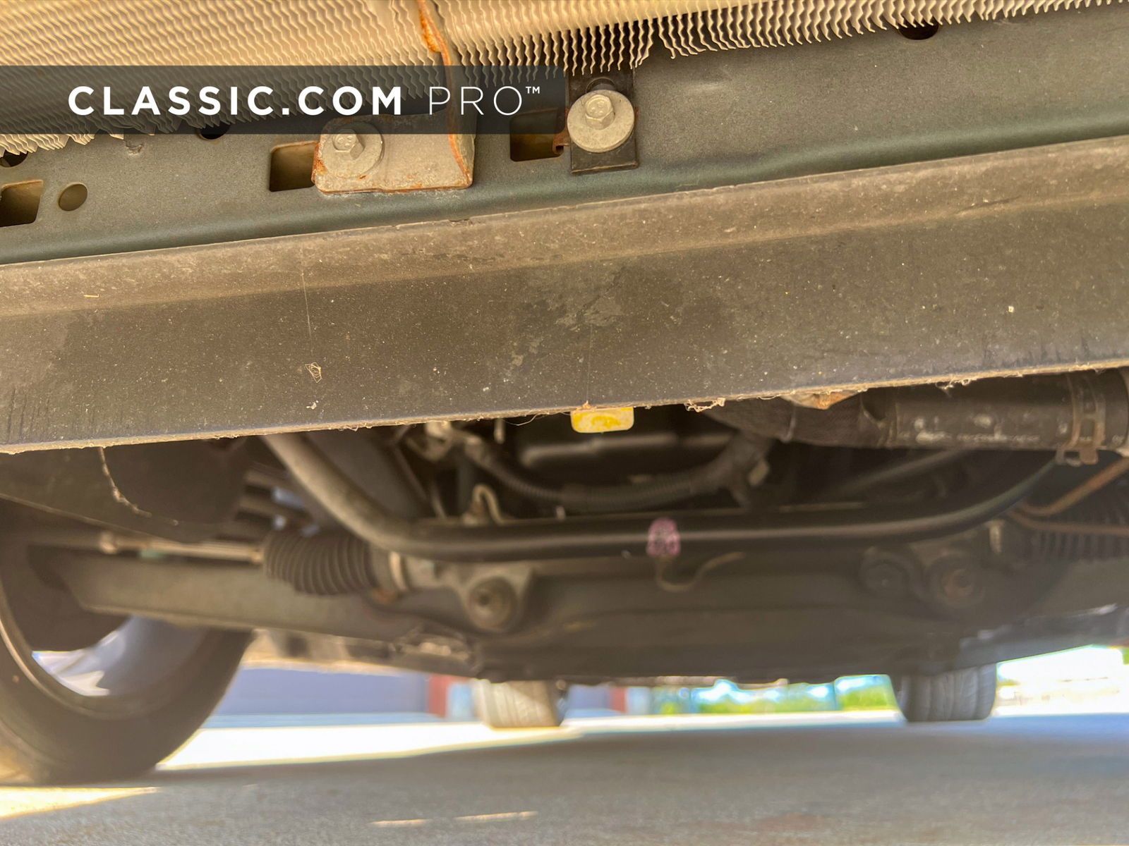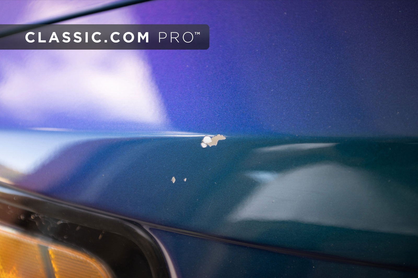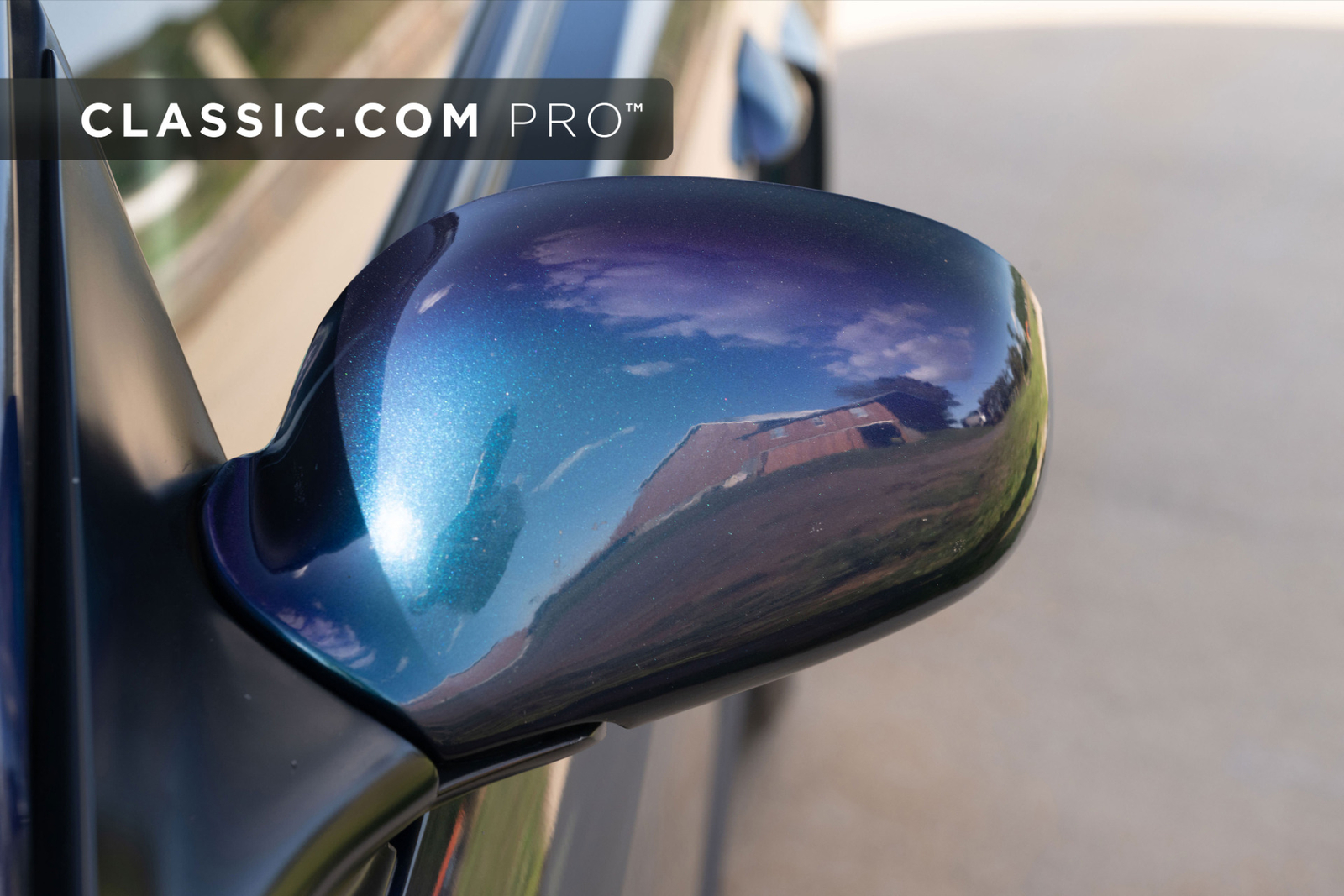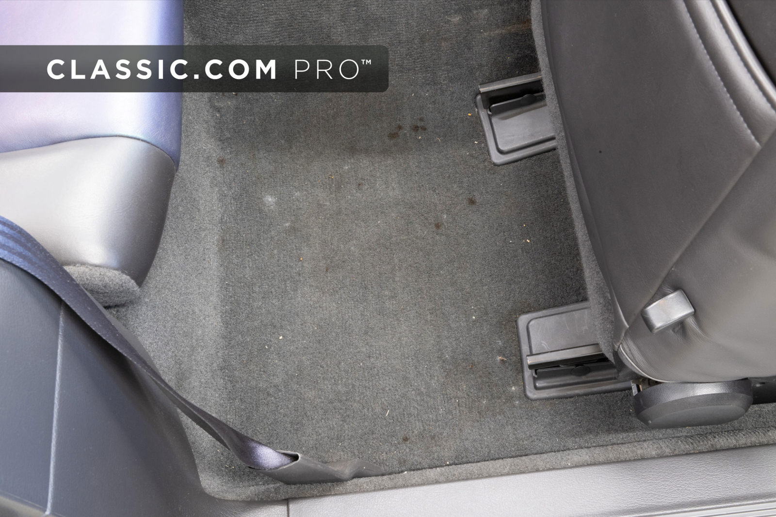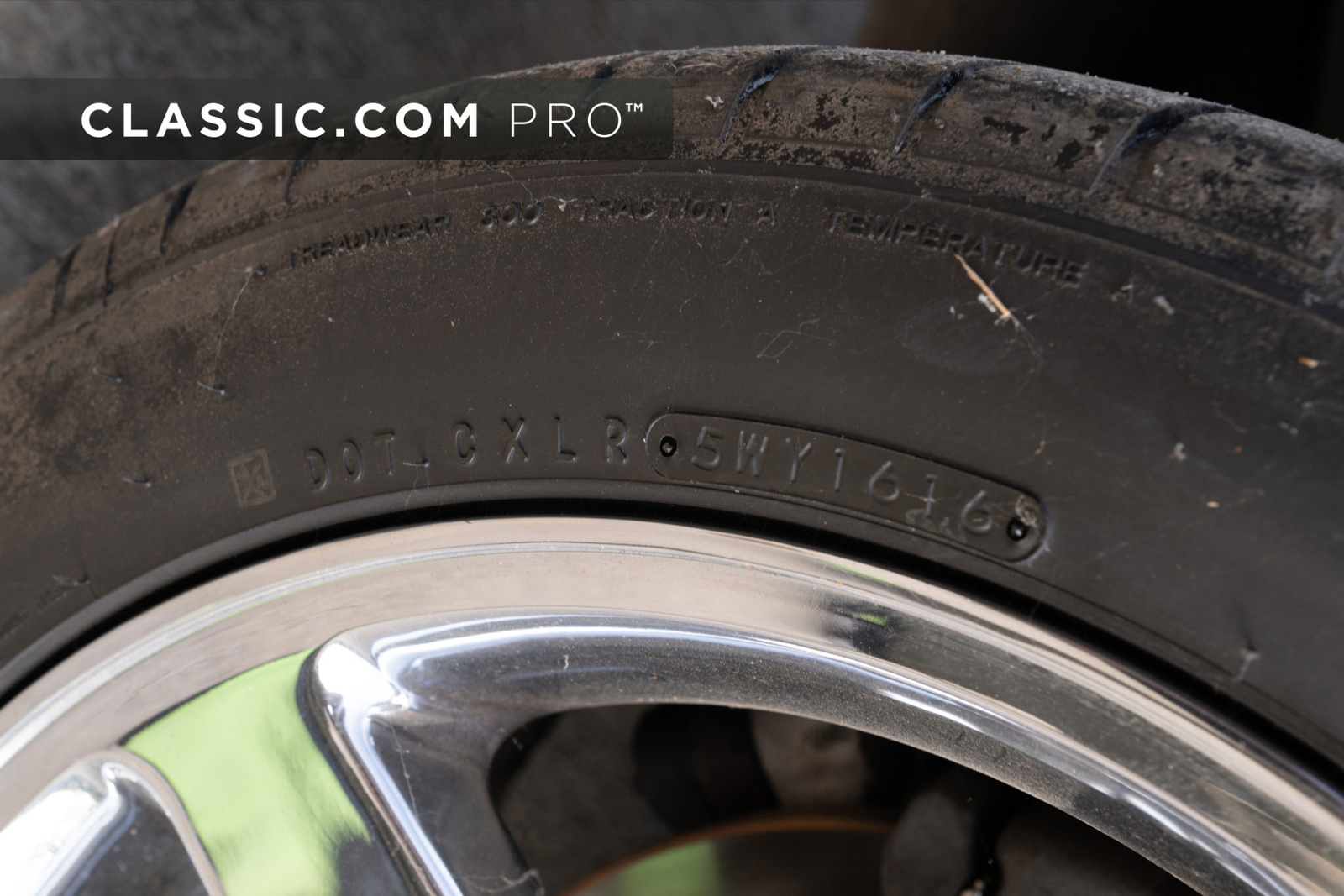 A third-party inspection and detailed photos document the original, low-mileage condition of the vehicle. The exterior paint shows minor paint chips and light scratches that are consistent with the age of the vehicle. There is a small dent on the front bumper that can be seen in the closeup images. The chrome wheels and the black convertible soft-top are found to be free of blemishes. The leather driver's seat shows some creasing and minor wear but the two-tone upholstery is otherwise in good condition. Photos show minor staining of the rear carpet but the vehicle shows light use overall. The accident-free CarFax shows dealership maintenance and an August 2017 entry shows the current mileage indicating the vehicle has been stored for the past six years. Included in the sale are one set of keys, a reproduction window sticker, the original owner's manual, and a wheel lock removal tool.