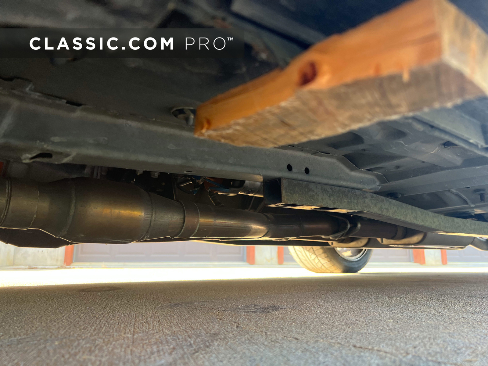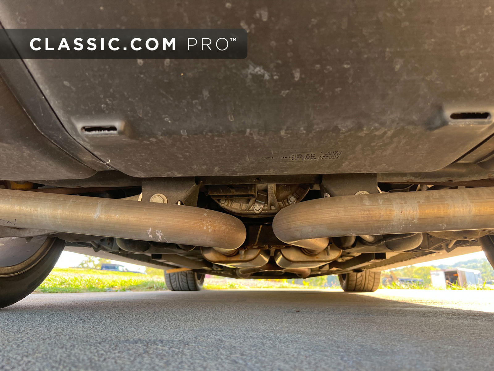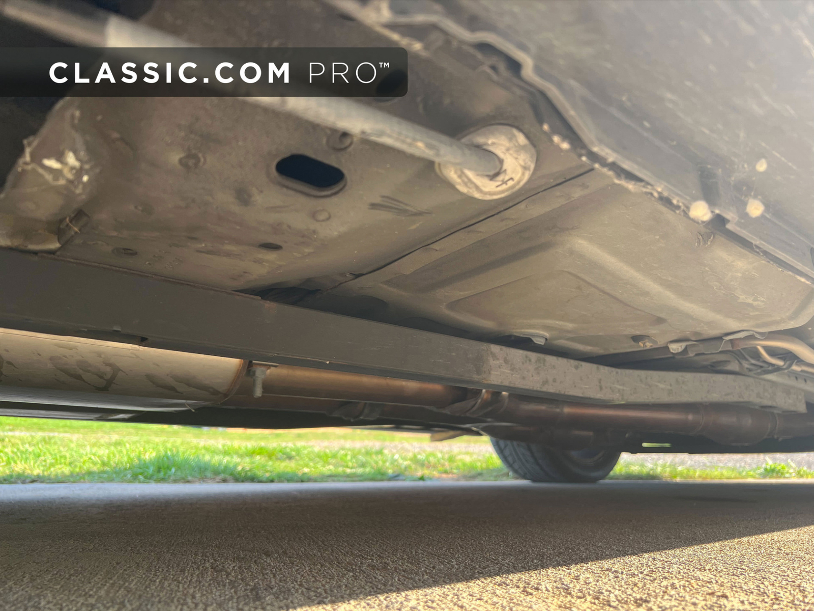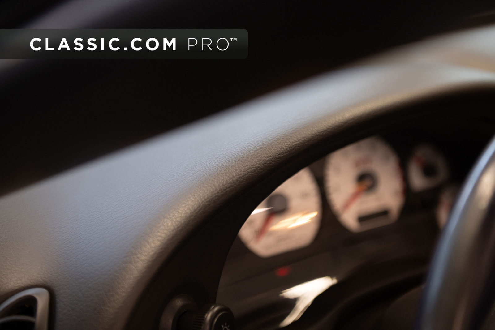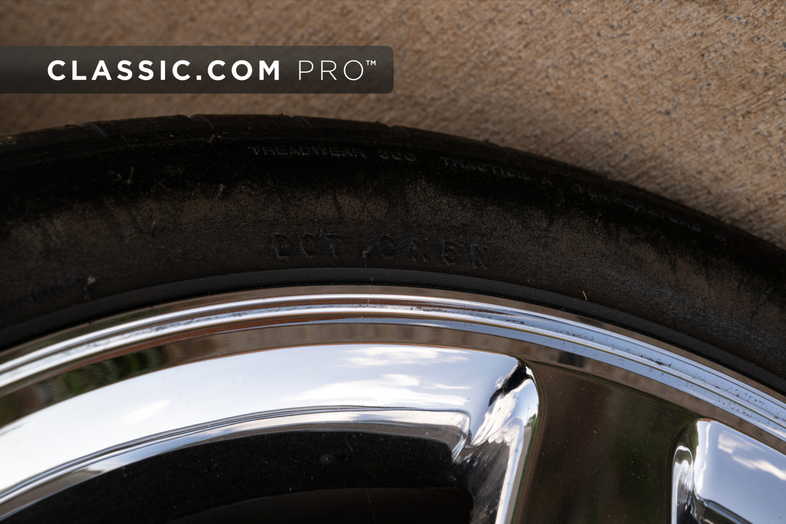 A third-party inspection and detailed photos document the original, low-mileage condition of the vehicle. The exterior paint shows minor paint chips and light scratches that are consistent with the age of the vehicle. There is a small dent on the front bumper that can be seen in the closeup images. The chrome wheels and the black convertible soft-top are found to be free of blemishes. The leather driver's seat shows some creasing and minor wear but the two-tone upholstery is otherwise in good condition. Photos show minor staining of the rear carpet but the vehicle shows light use overall. The accident-free CarFax shows dealership maintenance and an August 2017 entry shows the current mileage indicating the vehicle has been stored for the past six years. Included in the sale are one set of keys, a reproduction window sticker, the original owner's manual, and a wheel lock removal tool.