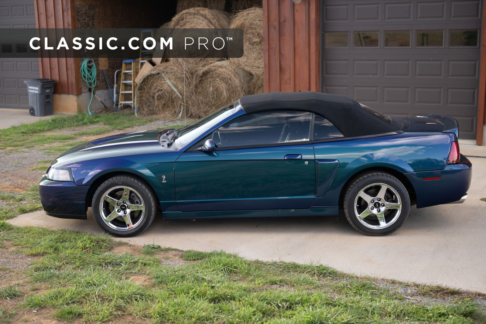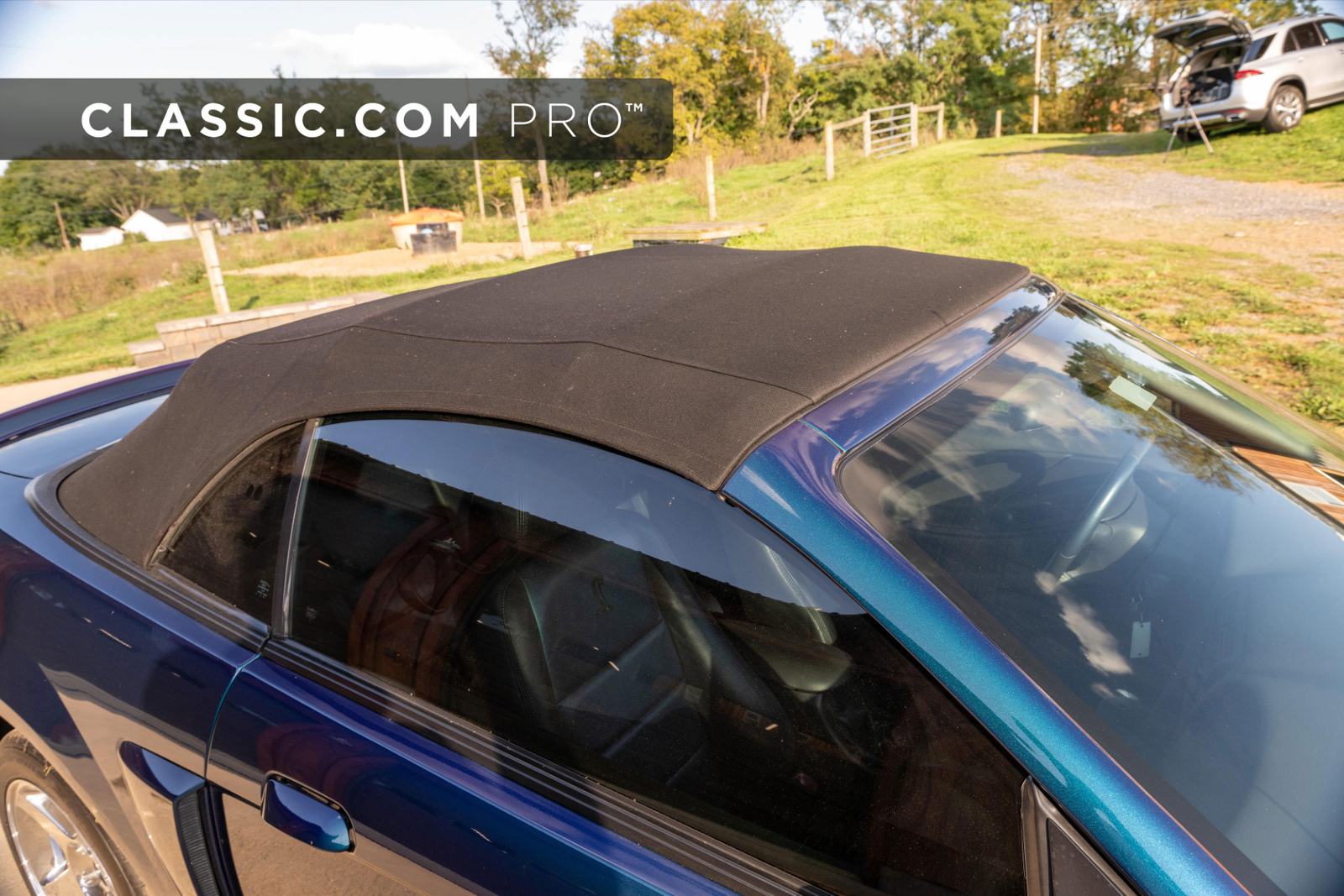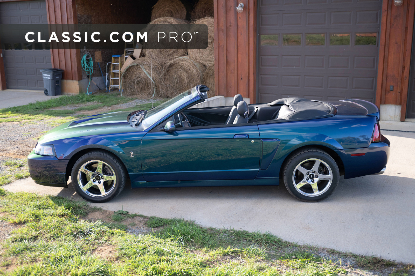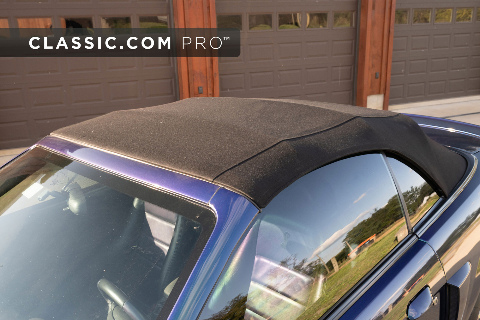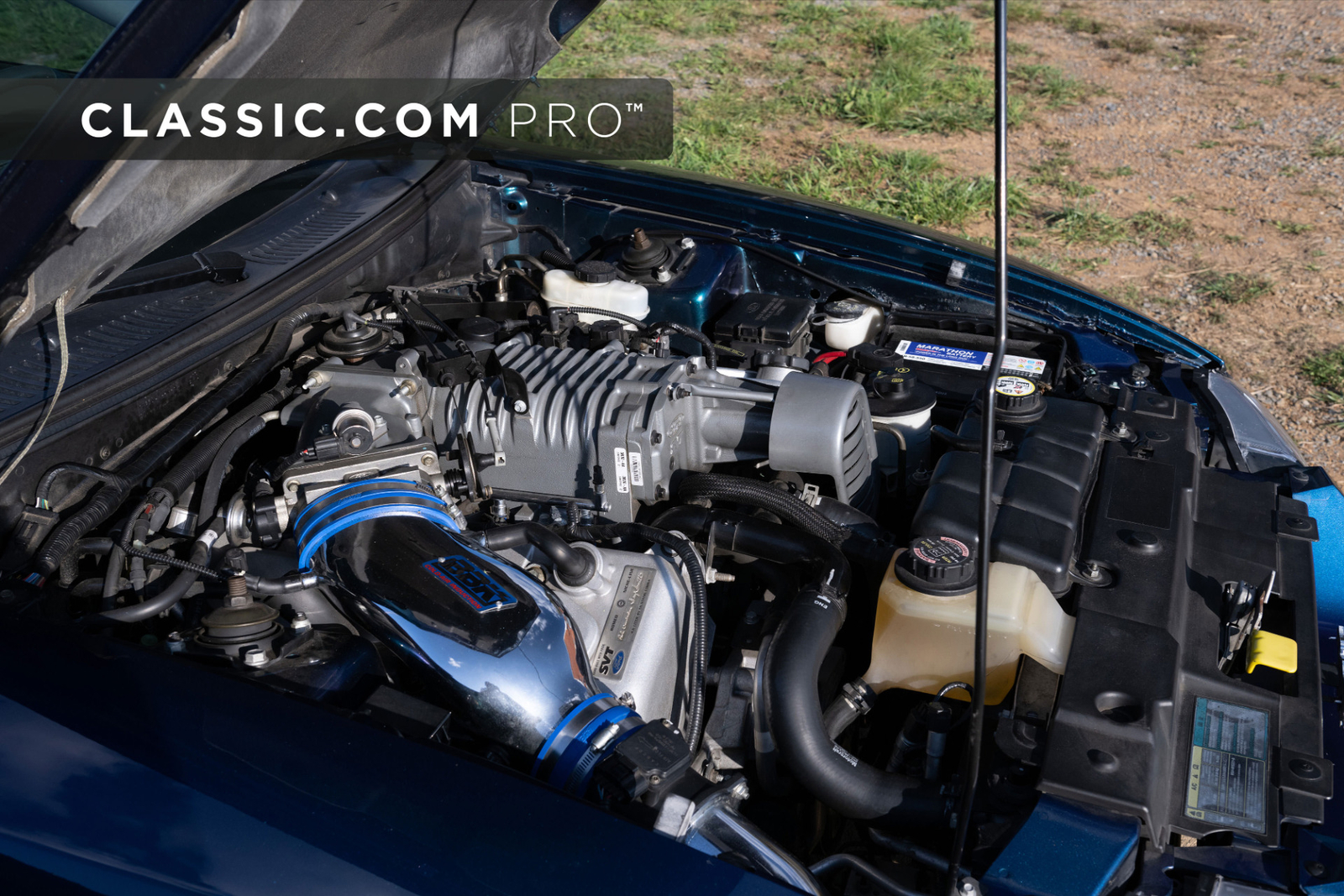 This low-mileage 2004 Ford Mustang SVT Cobra convertible has just 30,642 miles accumulated by three previous owners in Texas. It wears its original Mystichrome paint with a black soft convertible top and a two-tone black and Mystichrome leather interior. It's powered by a supercharged 4.6L V8 engine driving the rear wheels through a 6-speed manual transmission. Original equipment included an SVT gauge cluster, 5-spoke SVT chrome wheels, a rear spoiler, fog lights, ABS brakes, air conditioning, and cruise control. A reproduction window sticker is included in the gallery. This example has been modified with the addition of a BBK cold-air induction system to boost available power. The vehicle is located in Virginia.