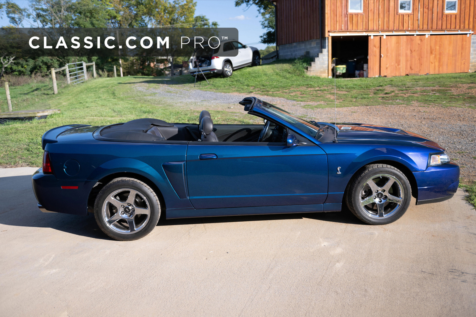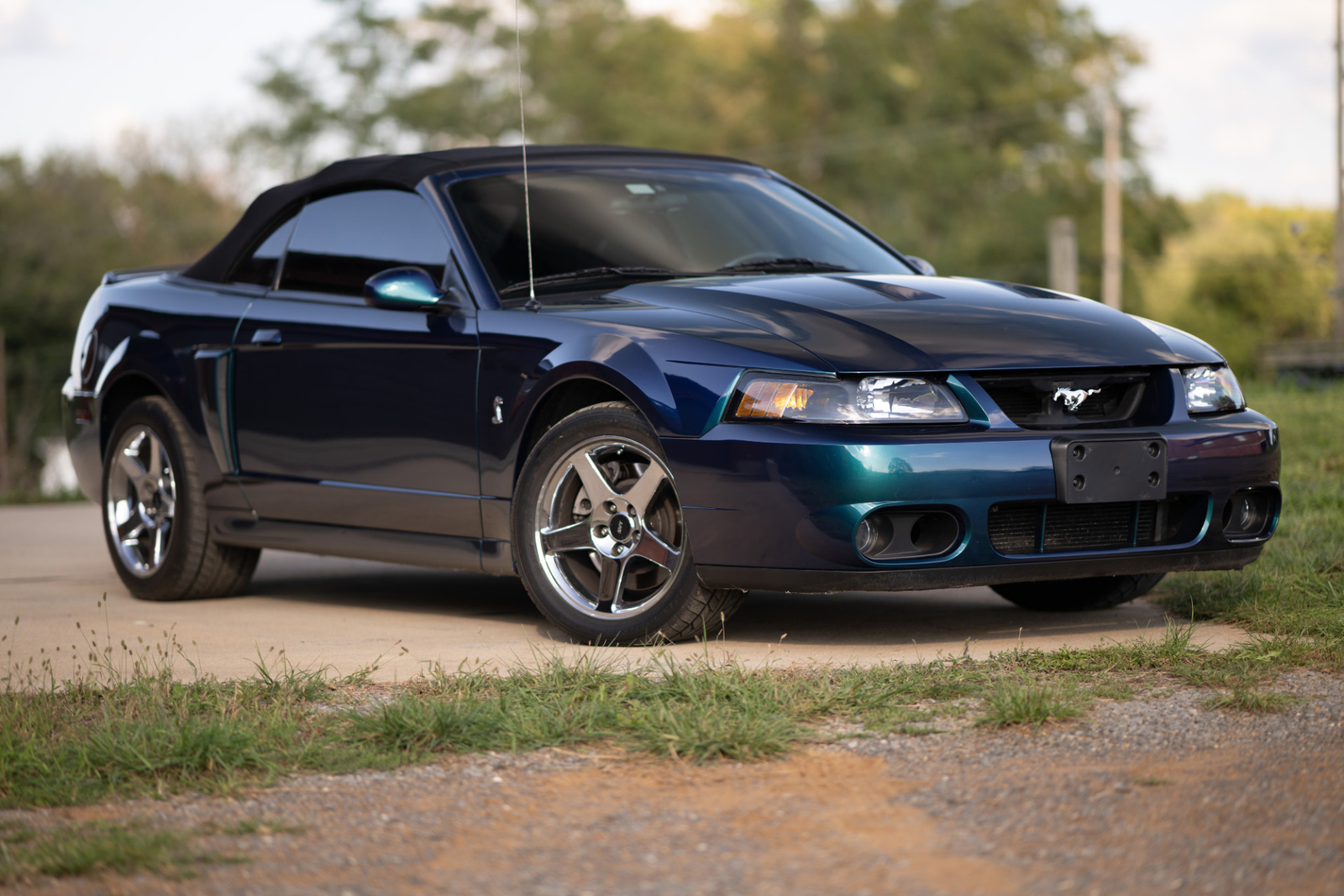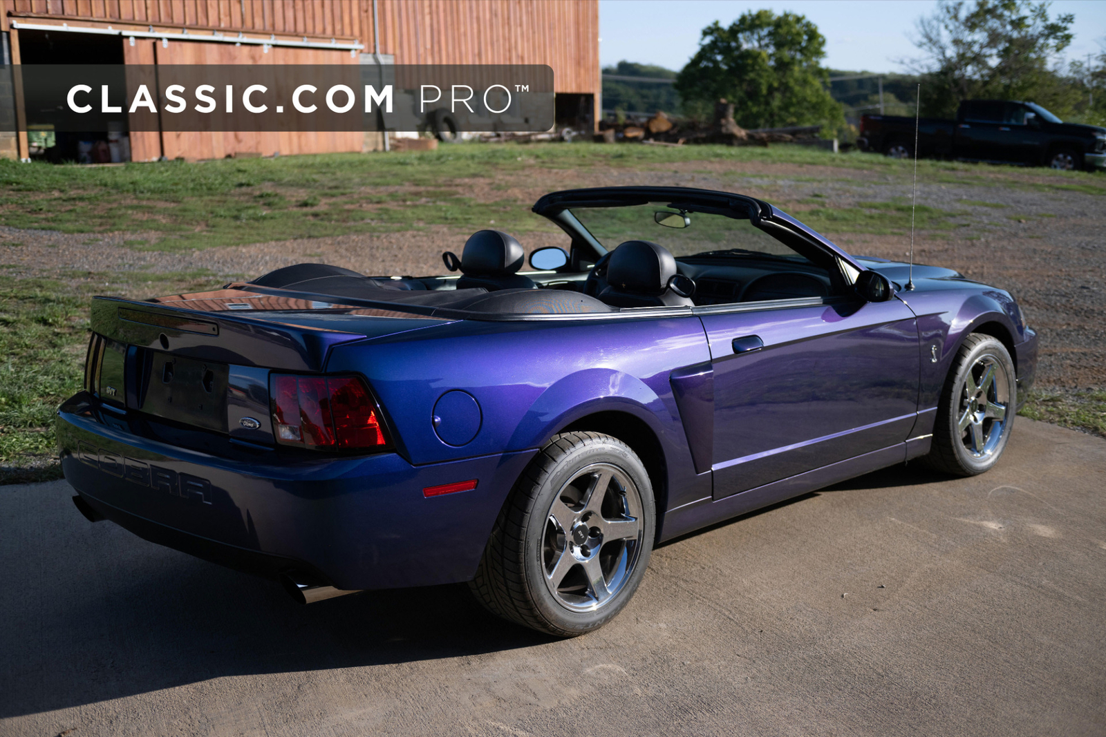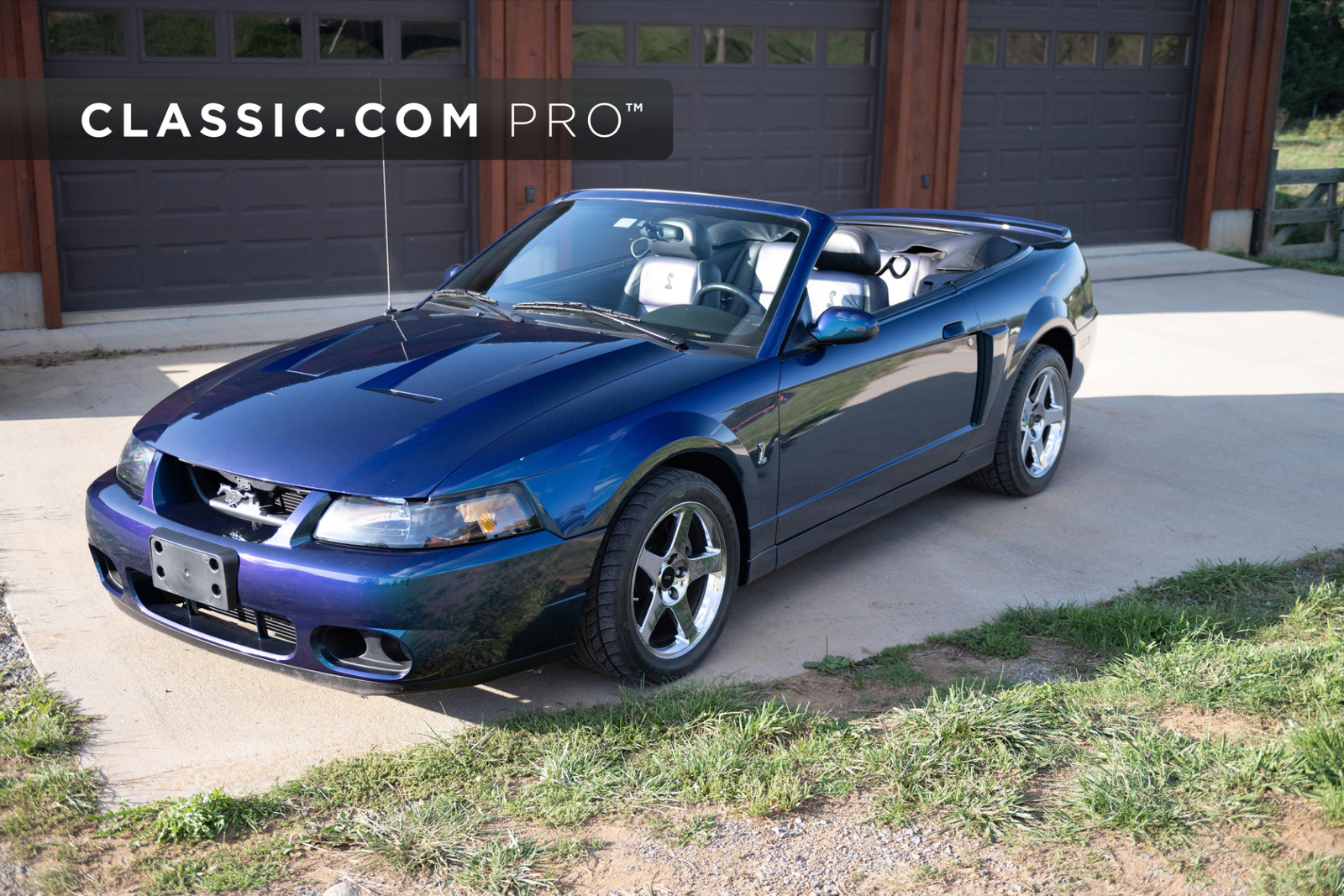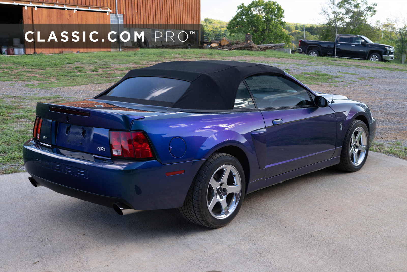 This low-mileage 2004 Ford Mustang SVT Cobra convertible has just 30,642 miles accumulated by three previous owners in Texas. It wears its original Mystichrome paint with a black soft convertible top and a two-tone black and Mystichrome leather interior. It's powered by a supercharged 4.6L V8 engine driving the rear wheels through a 6-speed manual transmission. Original equipment included an SVT gauge cluster, 5-spoke SVT chrome wheels, a rear spoiler, fog lights, ABS brakes, air conditioning, and cruise control. A reproduction window sticker is included in the gallery. This example has been modified with the addition of a BBK cold-air induction system to boost available power. The vehicle is located in Virginia.