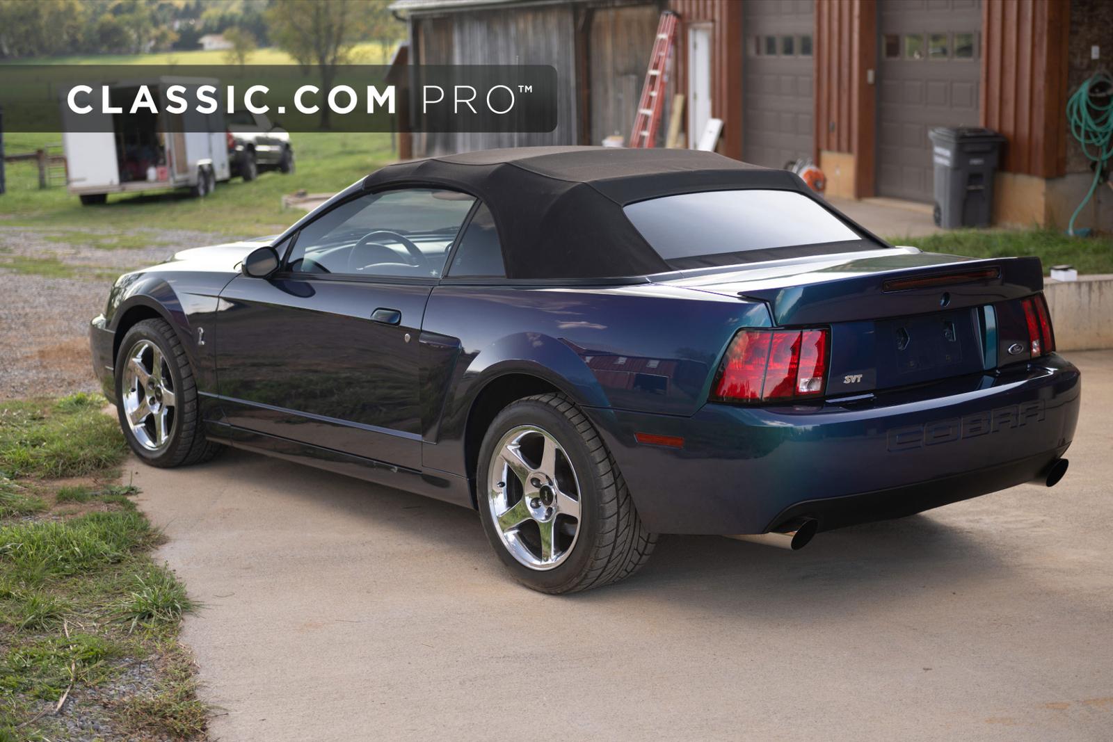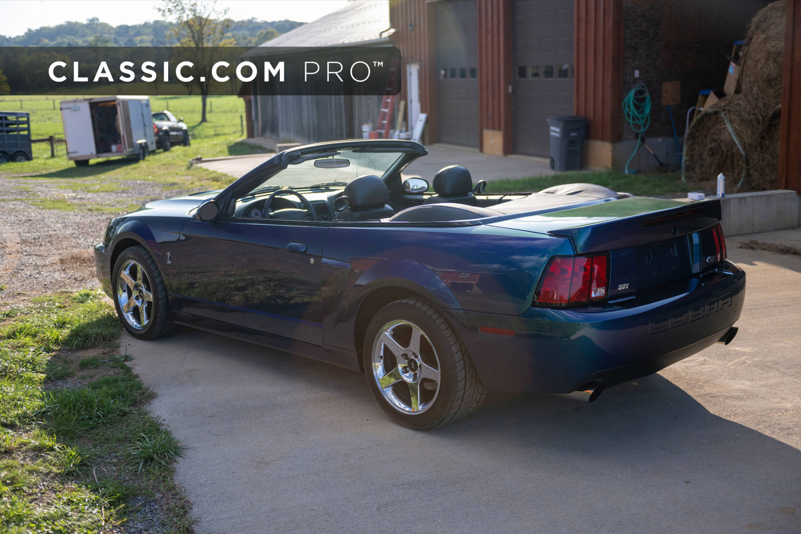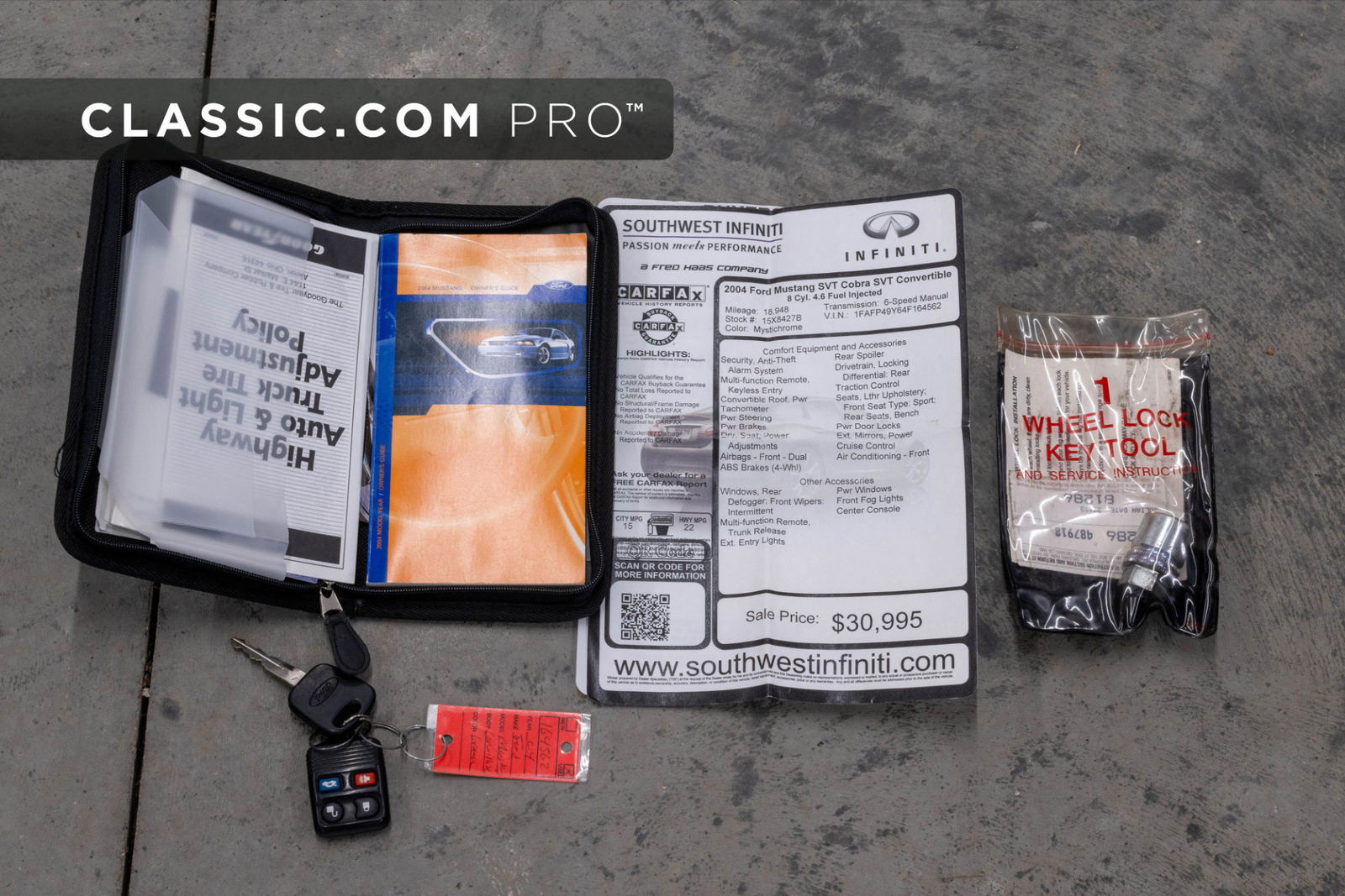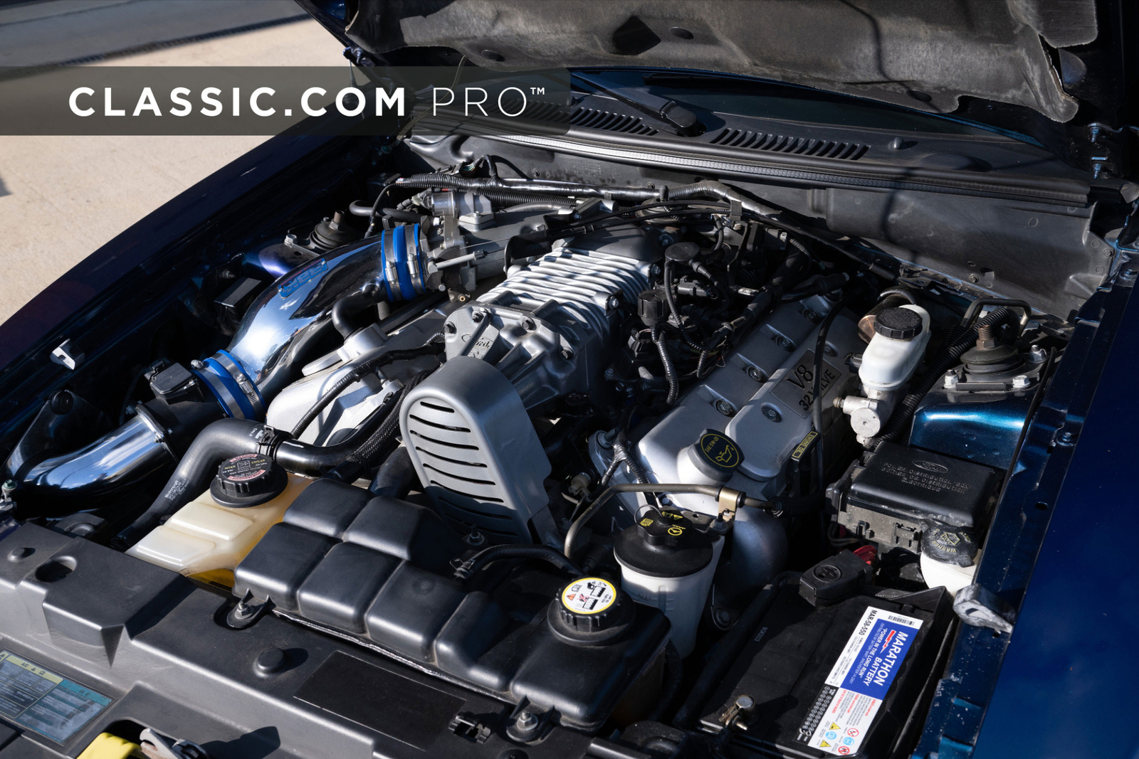 This low-mileage 2004 Ford Mustang SVT Cobra convertible has just 30,642 miles accumulated by three previous owners in Texas. It wears its original Mystichrome paint with a black soft convertible top and a two-tone black and Mystichrome leather interior. It's powered by a supercharged 4.6L V8 engine driving the rear wheels through a 6-speed manual transmission. Original equipment included an SVT gauge cluster, 5-spoke SVT chrome wheels, a rear spoiler, fog lights, ABS brakes, air conditioning, and cruise control. A reproduction window sticker is included in the gallery. This example has been modified with the addition of a BBK cold-air induction system to boost available power. The vehicle is located in Virginia.