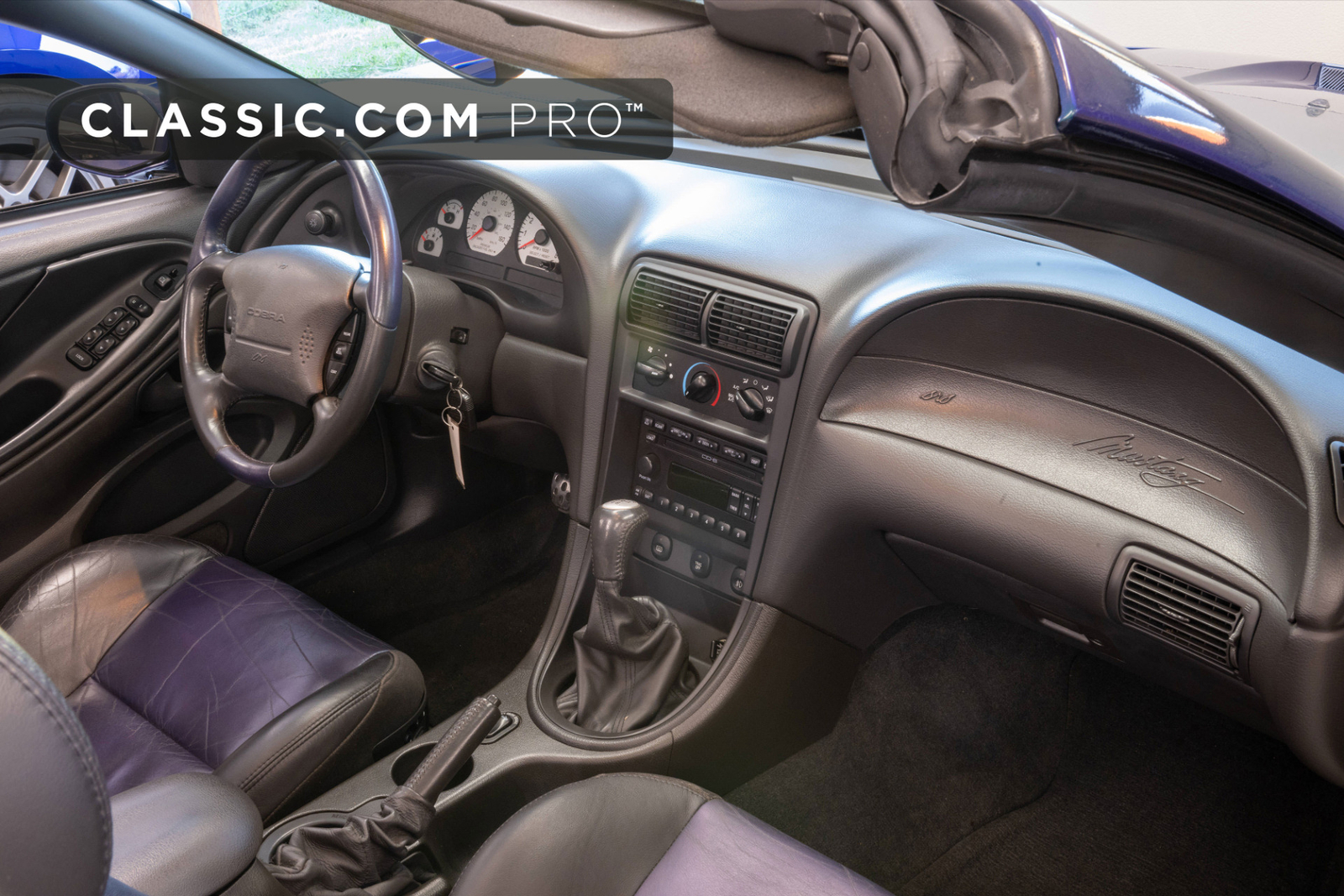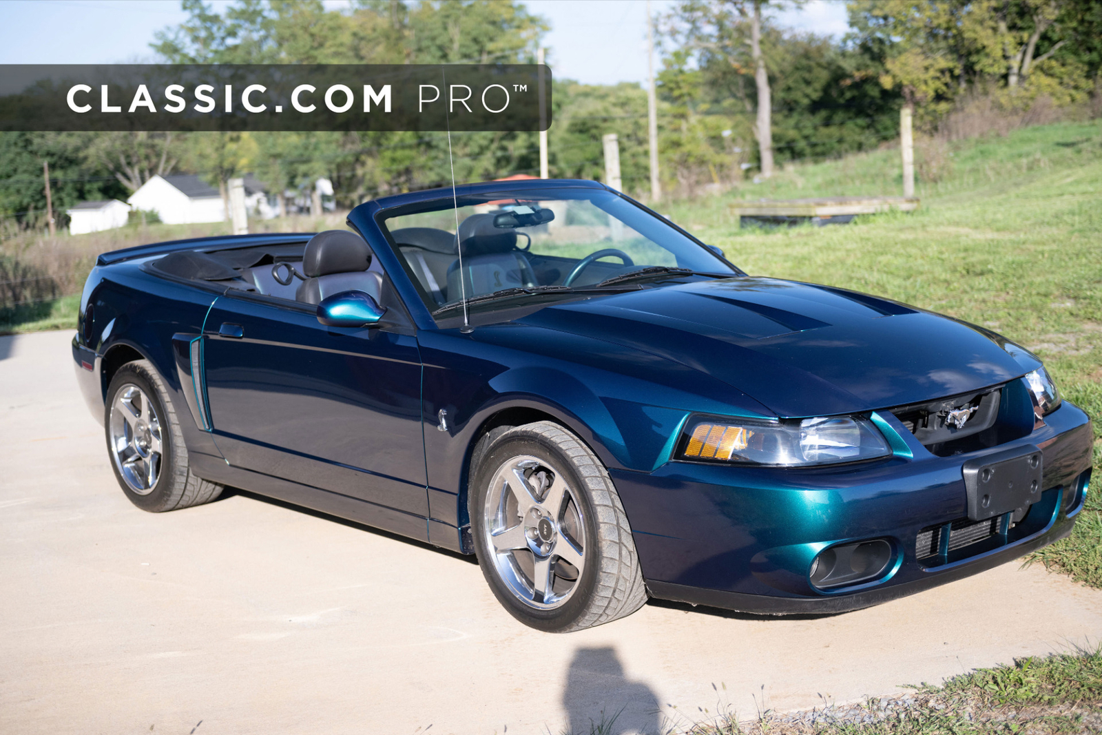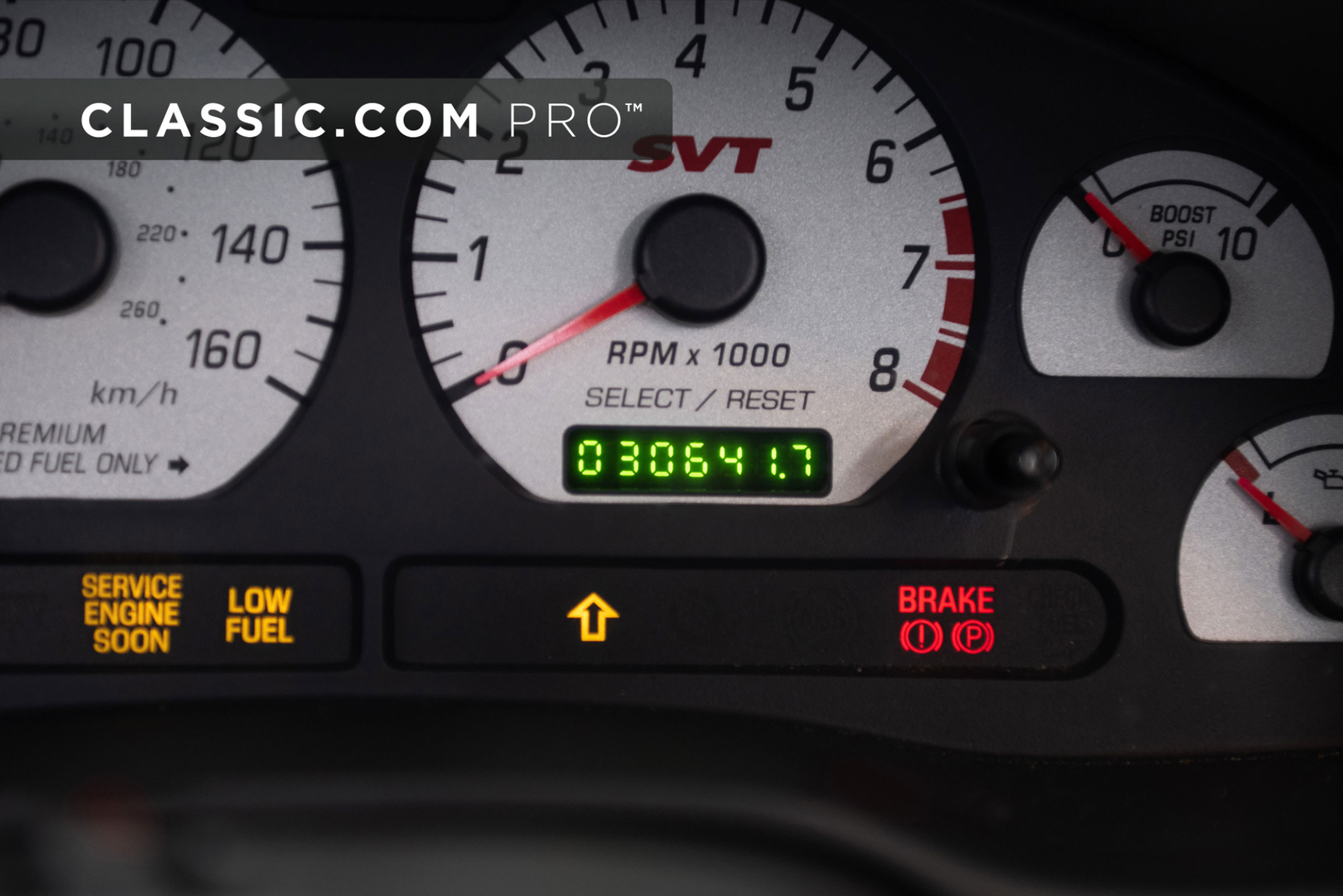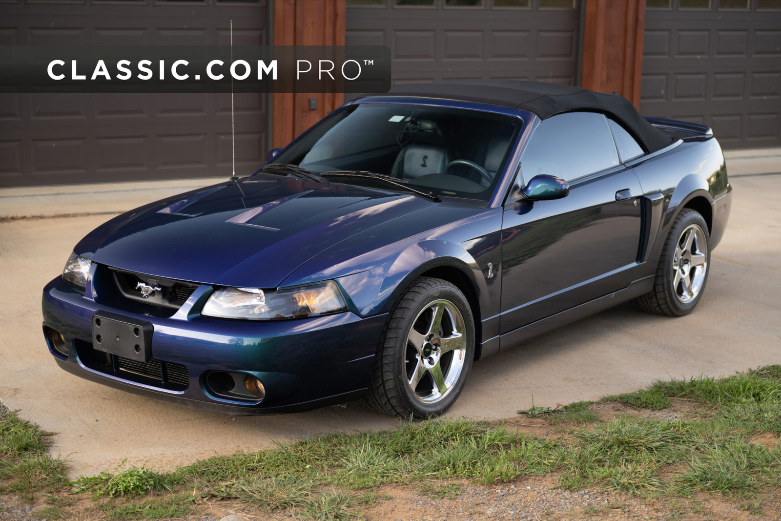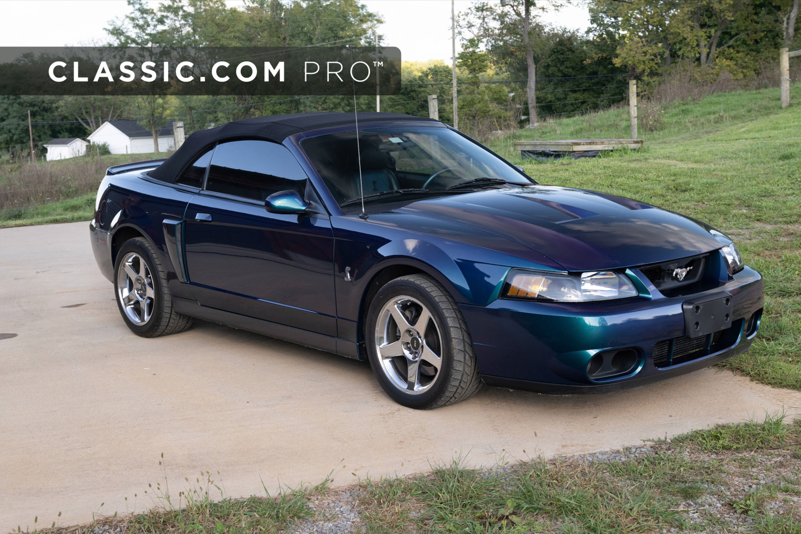 This low-mileage 2004 Ford Mustang SVT Cobra convertible has just 30,642 miles accumulated by three previous owners in Texas. It wears its original Mystichrome paint with a black soft convertible top and a two-tone black and Mystichrome leather interior. It's powered by a supercharged 4.6L V8 engine driving the rear wheels through a 6-speed manual transmission. Original equipment included an SVT gauge cluster, 5-spoke SVT chrome wheels, a rear spoiler, fog lights, ABS brakes, air conditioning, and cruise control. A reproduction window sticker is included in the gallery. This example has been modified with the addition of a BBK cold-air induction system to boost available power. The vehicle is located in Virginia.