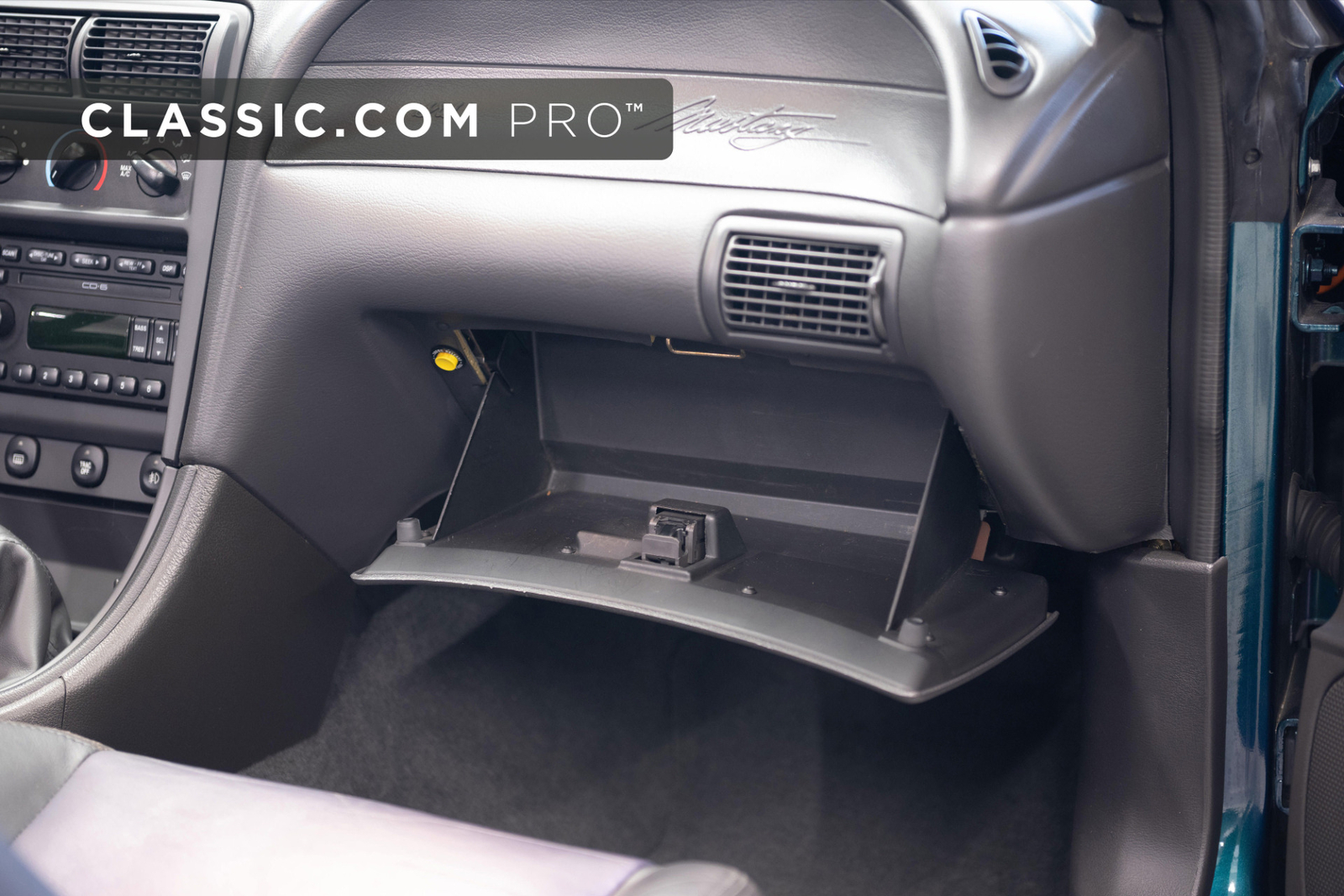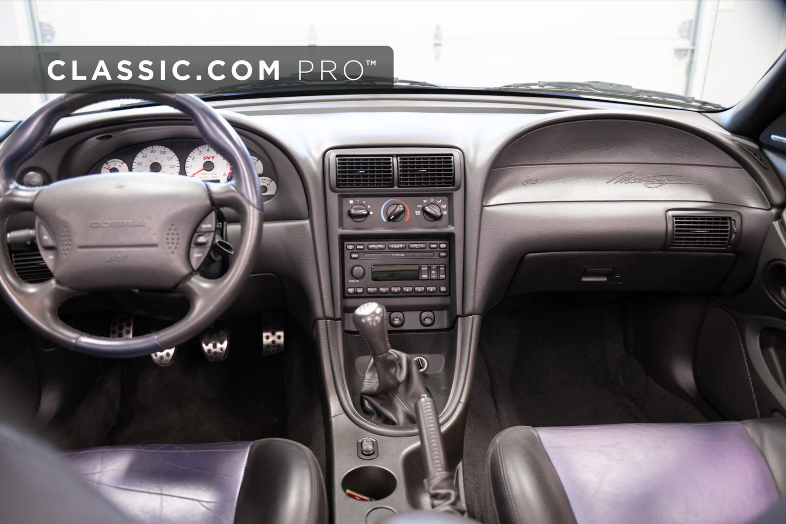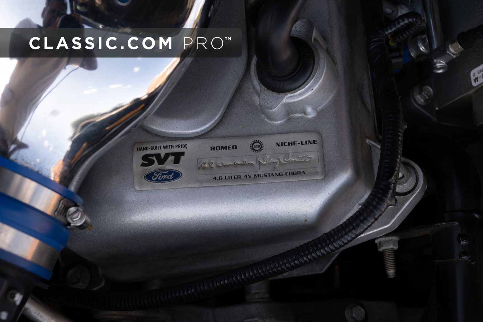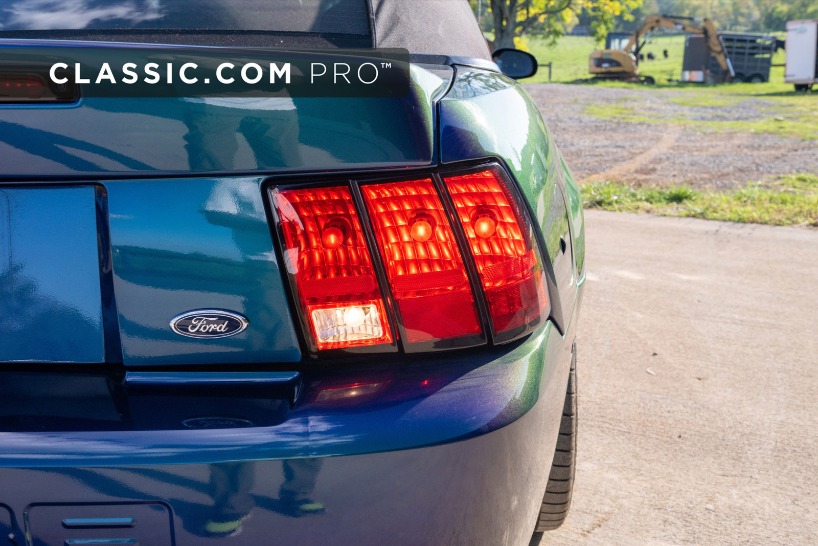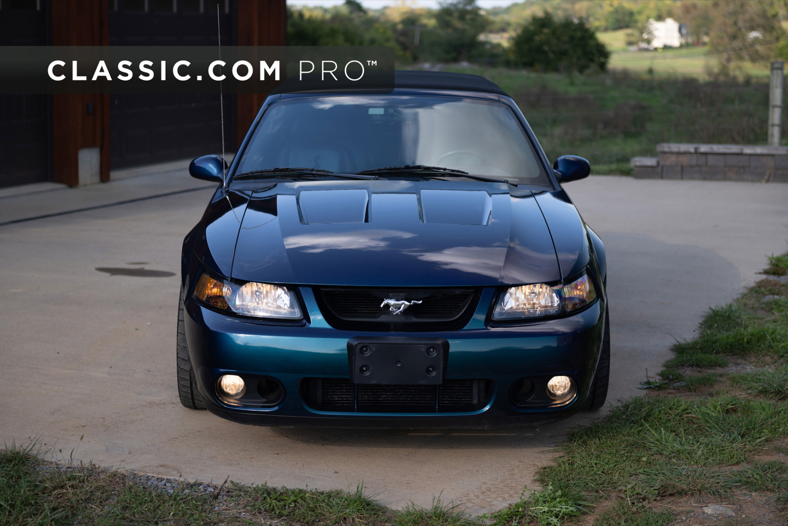 This low-mileage 2004 Ford Mustang SVT Cobra convertible has just 30,642 miles accumulated by three previous owners in Texas. It wears its original Mystichrome paint with a black soft convertible top and a two-tone black and Mystichrome leather interior. It's powered by a supercharged 4.6L V8 engine driving the rear wheels through a 6-speed manual transmission. Original equipment included an SVT gauge cluster, 5-spoke SVT chrome wheels, a rear spoiler, fog lights, ABS brakes, air conditioning, and cruise control. A reproduction window sticker is included in the gallery. This example has been modified with the addition of a BBK cold-air induction system to boost available power. The vehicle is located in Virginia.