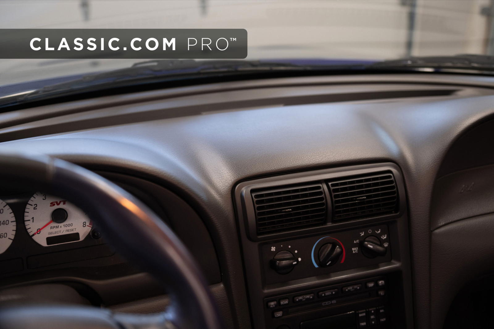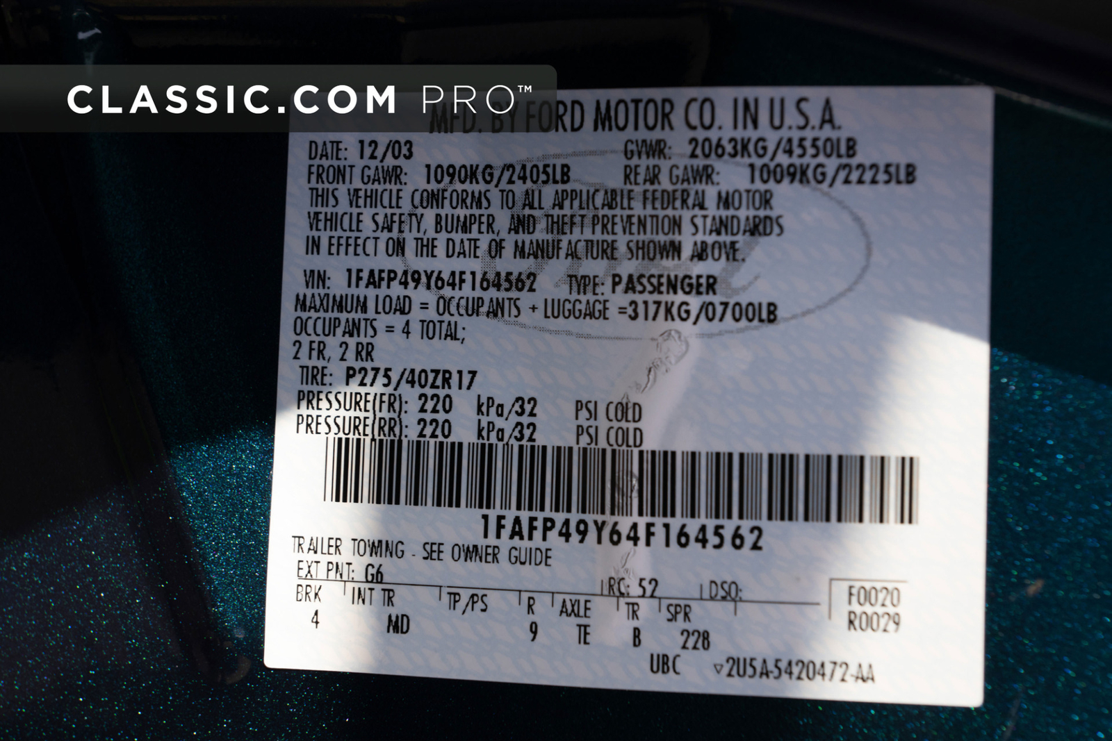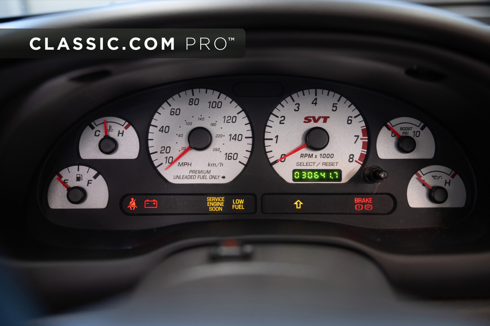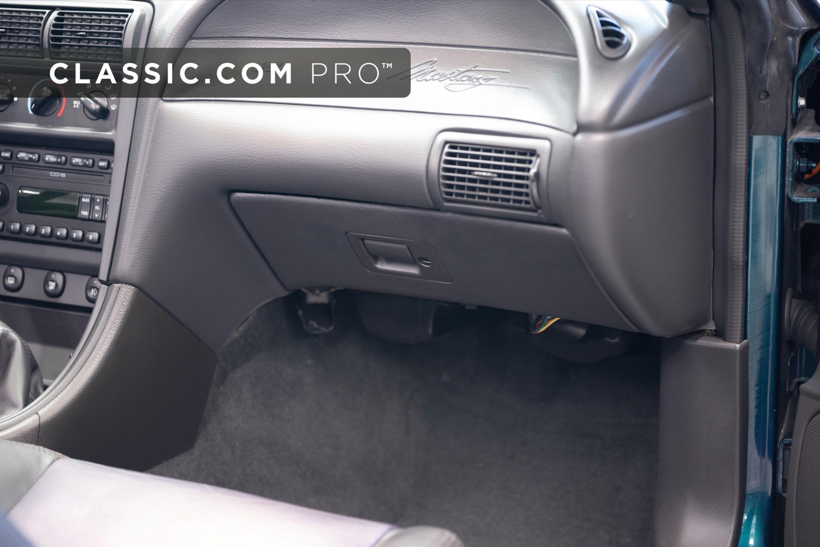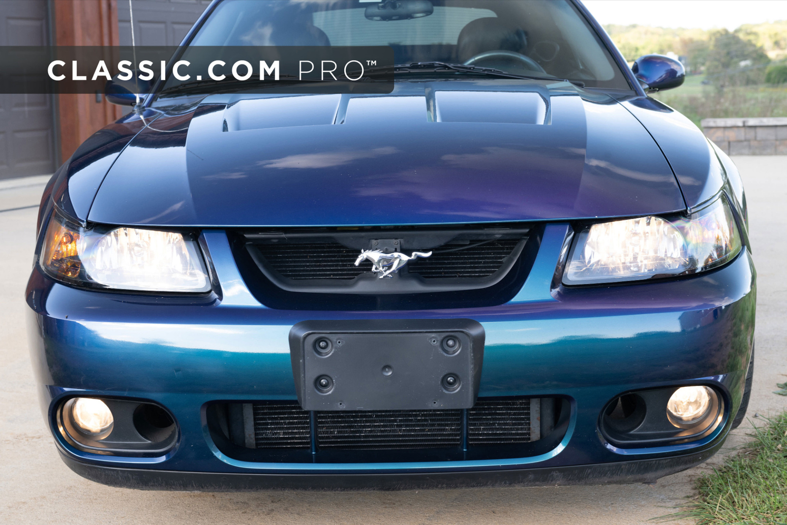This low-mileage 2004 Ford Mustang SVT Cobra convertible has just 30,642 miles accumulated by three previous owners in Texas. It wears its original Mystichrome paint with a black soft convertible top and a two-tone black and Mystichrome leather interior. It's powered by a supercharged 4.6L V8 engine driving the rear wheels through a 6-speed manual transmission. Original equipment included an SVT gauge cluster, 5-spoke SVT chrome wheels, a rear spoiler, fog lights, ABS brakes, air conditioning, and cruise control. A reproduction window sticker is included in the gallery. This example has been modified with the addition of a BBK cold-air induction system to boost available power. The vehicle is located in Virginia.