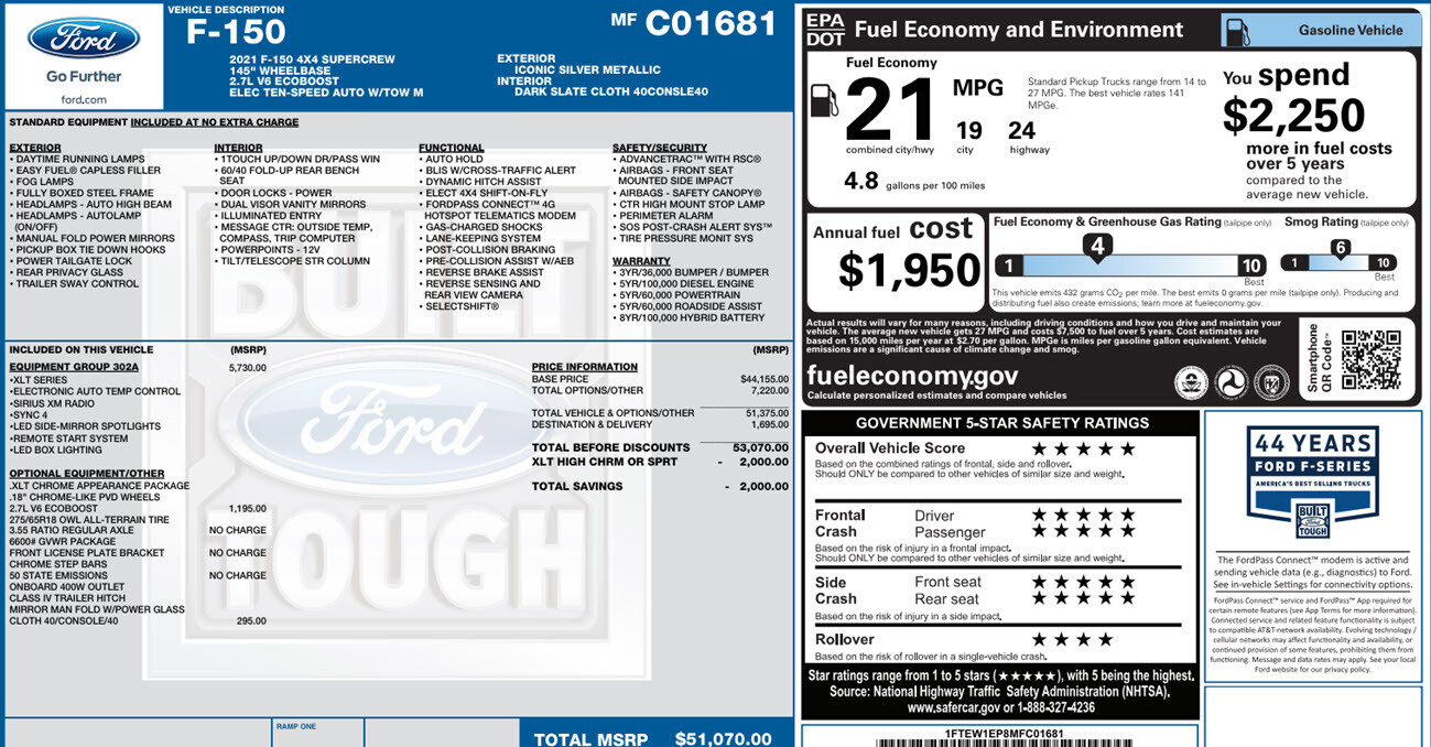 2021 Ford F-150 XLT Salvage, Rebuilder, Repairable C01681