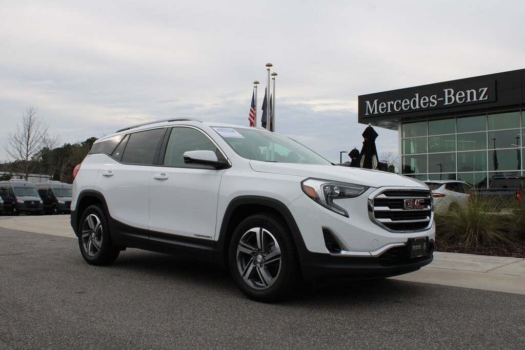 2 USB Data Ports, 2 USB Data Ports w/SD Card Reader, 3.47 Axle Ratio, 4-Way Manual Front Passenger Seat, 4-Wheel Disc Brakes, 6 Speakers, 6-Speaker Audio System Feature, 8-Way Power Driver Seat Adjuster, ABS brakes, Air Conditioning, Alloy wheels, AM/FM radio: SiriusXM, Apple CarPlay/Android Auto, Auto High-beam Headlights, Auto-dimming door mirrors, Auto-dimming Rear-View mirror, Automatic temperature control, Bluetooth For Phone, Brake assist, Bumpers: body-color, Compass, Delay-off headlights, Driver & Front Passenger Heated Seats, Driver door bin, Driver vanity mirror, Dual front impact airbags, Dual front side impact airbags, Electronic Stability Control, Emergency communication system: OnStar and GMC connected services capable, Exterior Parking Camera Rear, Four wheel independent suspension, Front anti-roll bar, Front Bucket Seats, Front Center Armrest, Front dual zone A/C, Front fog lights, Front reading lights, Fully automatic headlights, Heated door mirrors, Heated front seats, High-Intensity Discharge Headlights, Illuminated entry, Low tire pressure warning, Occupant sensing airbag, Outside temperature display, Overhead airbag, Overhead console, Panic alarm, Passenger door bin, Passenger vanity mirror, Perforated Leather-Appointed Seat Trim, Power door mirrors, Power Driver Lumbar Control, Power driver seat, Power steering, Power windows, Radio data system, Radio: GMC Infotainment Audio System w/8 Display, Rear anti-roll bar, Rear seat center armrest, Rear window defroster, Rear window wiper, Remote keyless entry, Roof rack: rails only, Security system, SiriusXM Radio, Speed control, Speed-sensing st