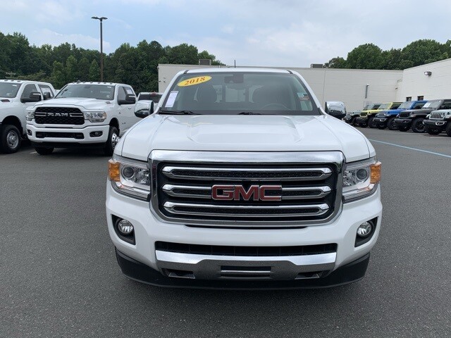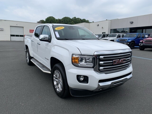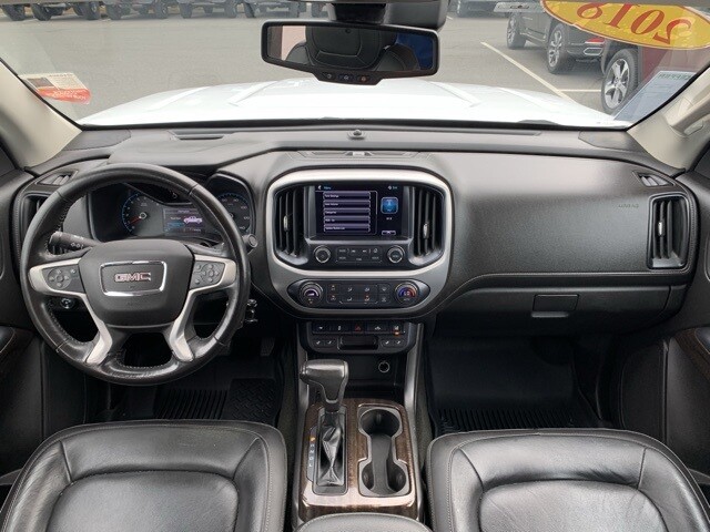 2018 GMC Canyon SLT Backup Camera, Alloy Wheels, Trailer Hitch, All Routine Maintenance Up to Date, NONSmoker, Carfax Certified, Leather, Bluetooth, Canyon SLT, 4D Crew Cab, V6, 8-Speed Automatic, 4WD, Summit White, Jet Black w/Leather-Appointed Seat Trim, 3.42 Rear Axle Ratio, 4-Way Power Front Passenger Seat Adjuster, Black Spray-On Bedliner w/GMC Logo, Bose Premium 7-Speaker Audio System Feature, Bumpers: body-color, Driver 4-Way Power Seat Adjuster, Driver Alert Package, Electronic Stability Control, Exterior Parking Camera Rear, Forward Collision Alert, Fully automatic headlights, Heated door mirrors, Heated Driver & Front Passenger Seats, Heated front seats, Lane Departure Warning System, Leather-Appointed Seat Trim, Power Driver Lumbar Control Seat Adjuster, Power driver seat, Preferred Equipment Group 4LT, Radio: AM/FM Stereo w/8 Color Touch Navigation, Radio: AM/FM Stereo w/8 Color Touch Screen, SiriusXM Satellite Radio, Speed control, Steering wheel mounted audio controls, Tow/Haul Mode, Traction control, Trailering Assist Guideline Hitch Guidance, Trailering Package, Wheels: 18 x 8.5 Polished Cast Aluminum. Certified. Certification Program Details: 3-Month/3,00 mile Maximum Care Coverage 125-Point Inspection Carfax Vehicle History Report 24-Hour Roadside Assistance Car Rental Allowance SiriusXM Satellite Radio 3-Month Trial Subscription