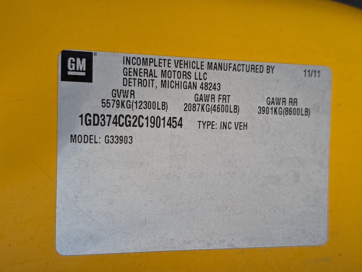 • GVWR, 12,300 lbs. (5579 kg) (Includes (R05) dual rear wheel configuration on the *G33503 model. Not available with (R04) single rear wheel configuration. Reference the Engine/Axle page for availability.)