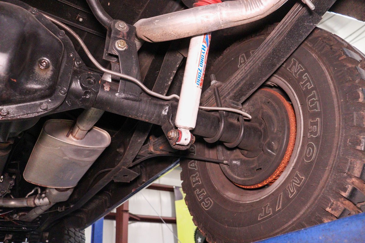 Under the hood, the Grand Wagoneer boasts a powerful 5.9L V8 engine paired with an automatic transmission. The suspension has been upgraded with a 3-inch lift featuring new springs and Skyjacker gas shocks, providing an enhanced ride height and improved off-road performance. The upgraded transfer case now includes a floor shifter for precise control, complemented by Selectro manual locking front hubs for superior traction. The M/T tires ensure grip on the toughest terrains, making this Jeep as capable off the road as it is on.