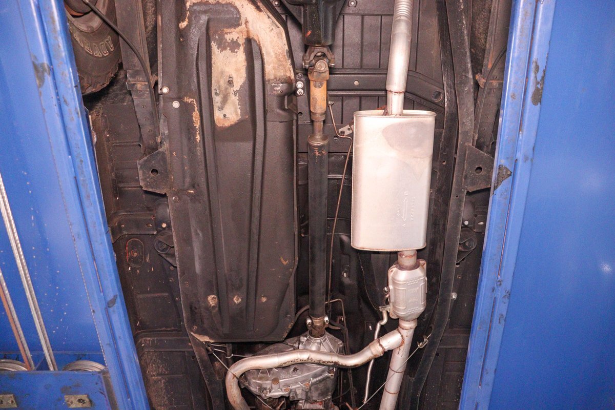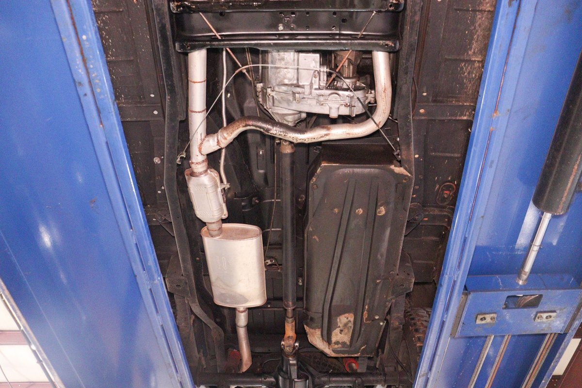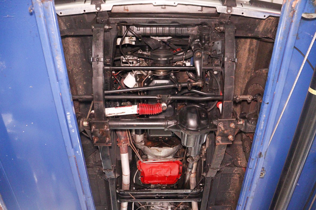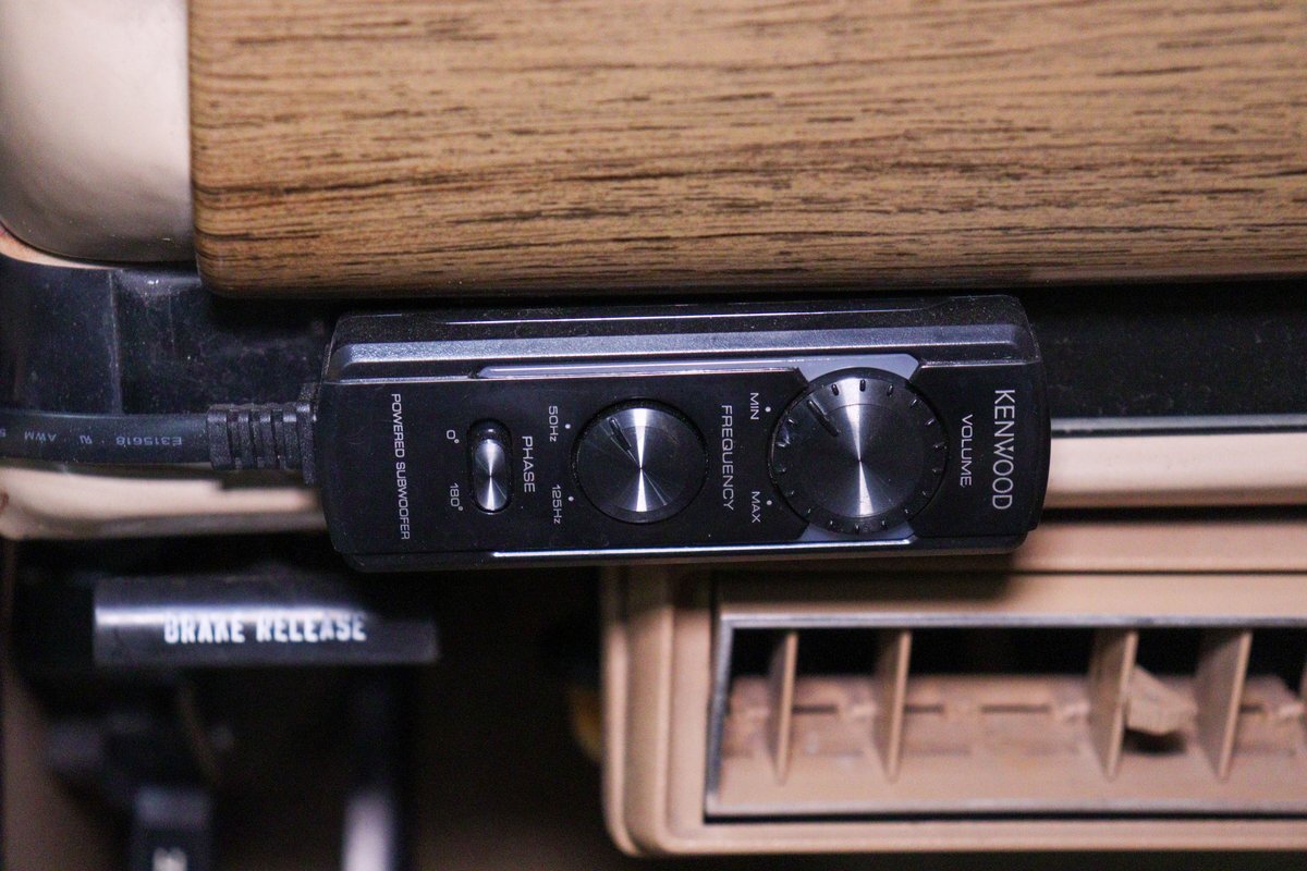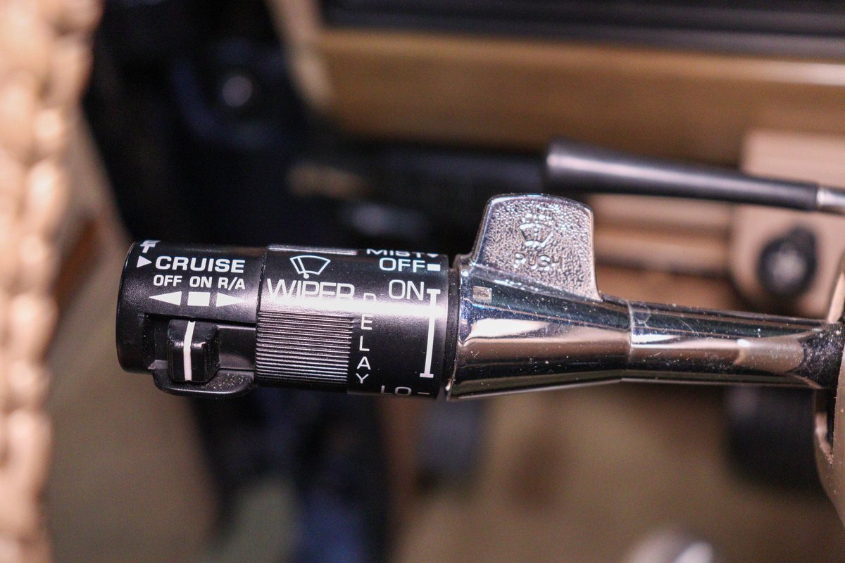 The interior maintains its classic charm with tan leather seats, carpets, and floor mats all in great condition. Modern amenities include a Kenwood single DIN aftermarket head unit with Bluetooth, USB, Pandora, and AM/FM radio capabilities, complemented by Infinity speakers and a hidden subwoofer in the cargo area for premium sound quality. The door locks now feature modern relays with a keyless remote that also triggers the parking lights. A rebuilt motherboard in the compass/thermometer in the overhead console ensures all the original features are functional.