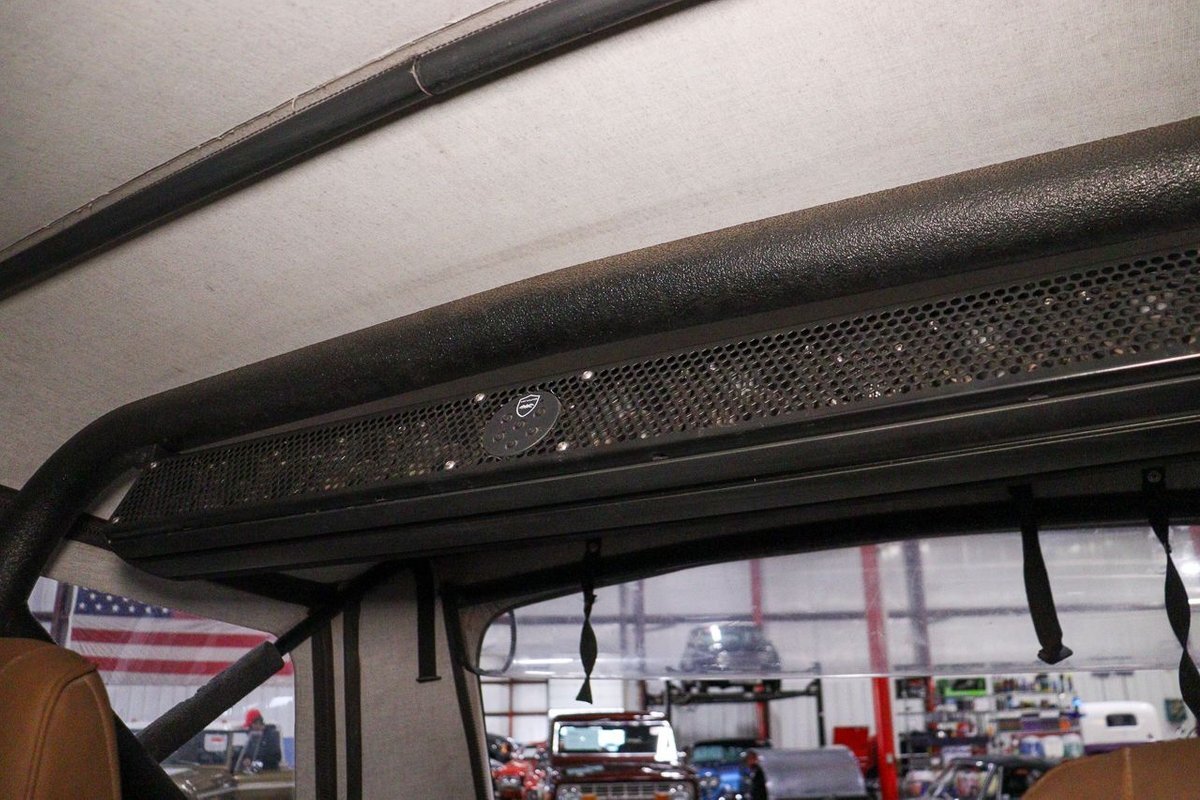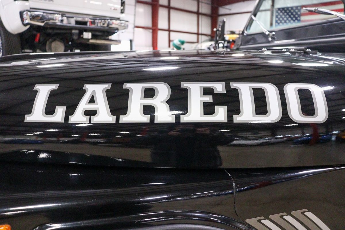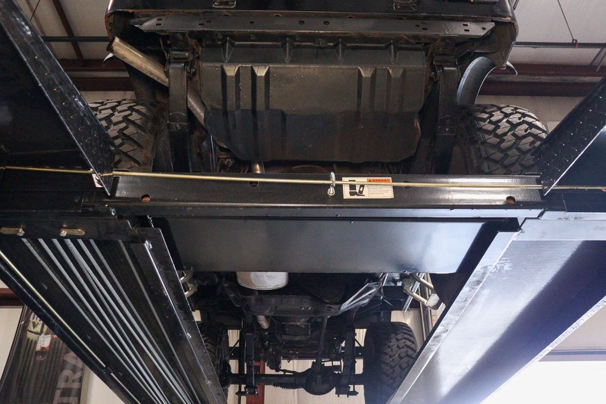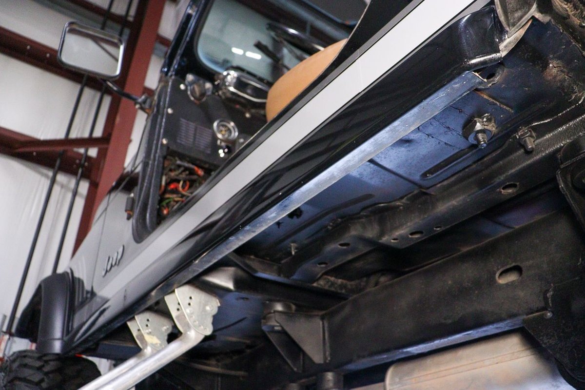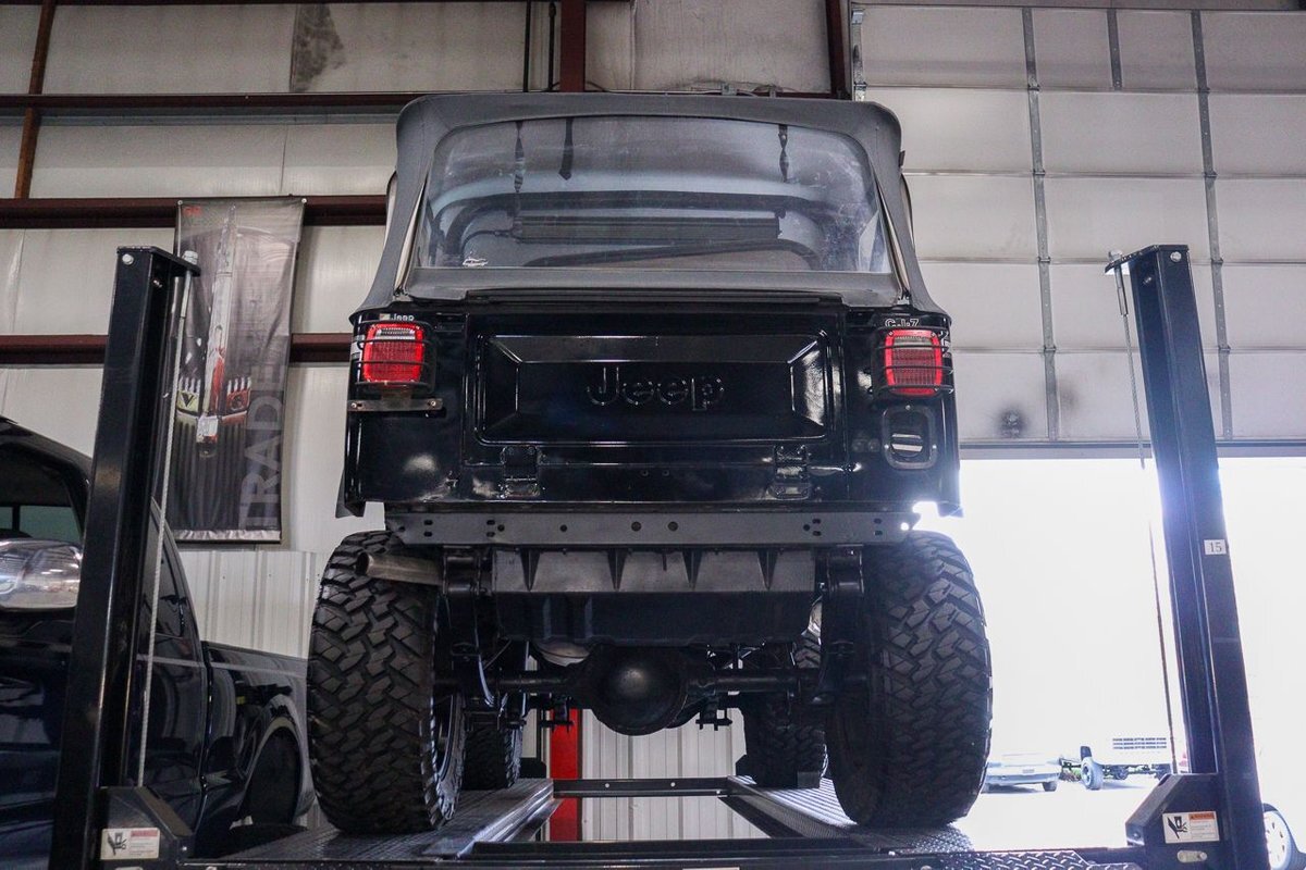 Externally this Jeep is very clean with its black paint that sports accenting silver striping throughout the front of the vehicle. It rides on 20-inch Fuel Off-Road wheels wrapped in Nitto Trail Grappler tires. Inside the vehicle are tan bucket seats in the front and a bench seat in the rear. The floors have been professionally sprayed with bed liner and a Pioneer radio has been installed.
