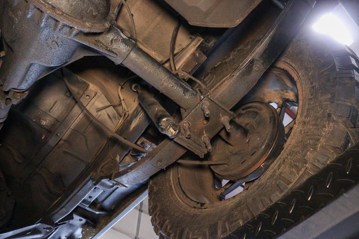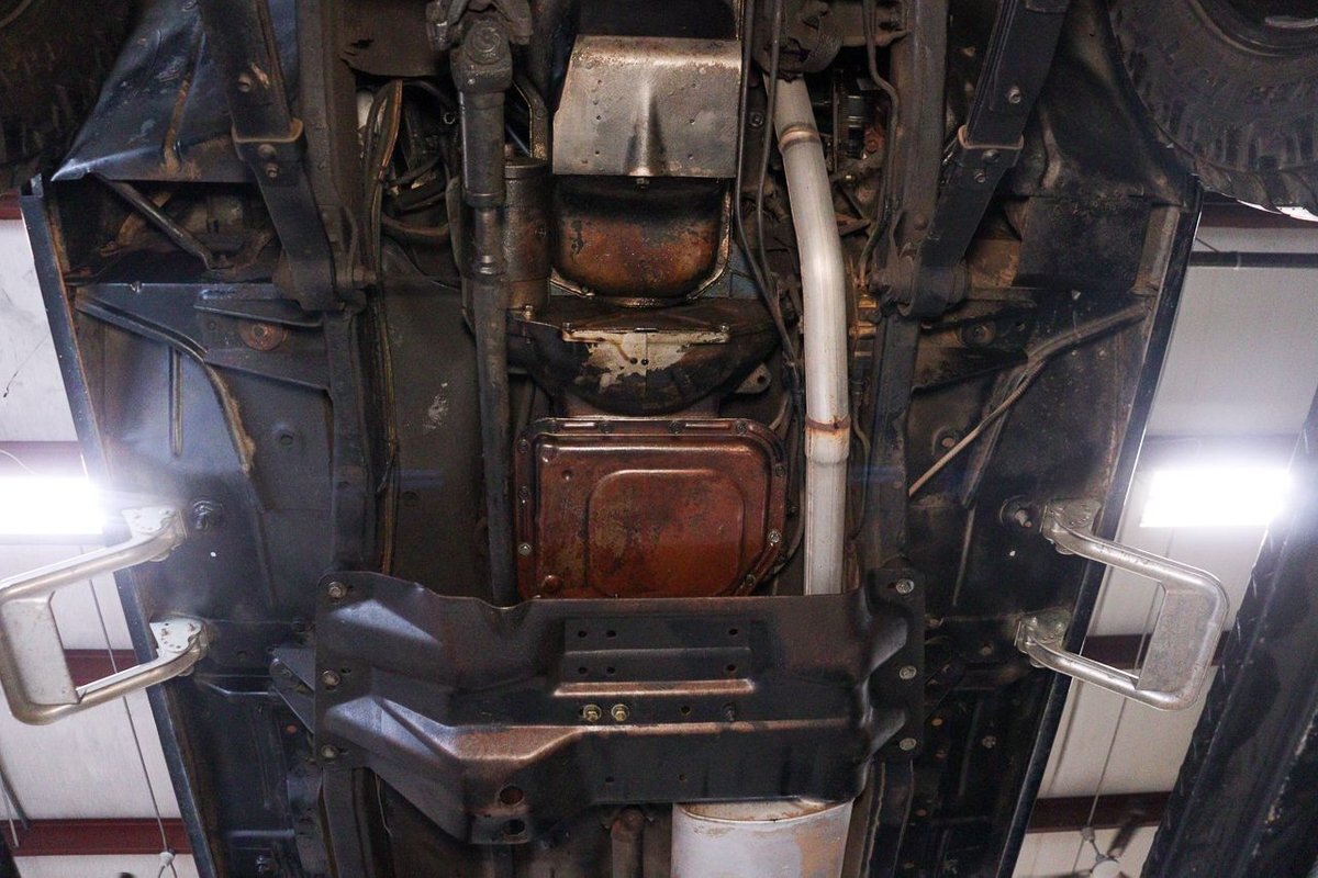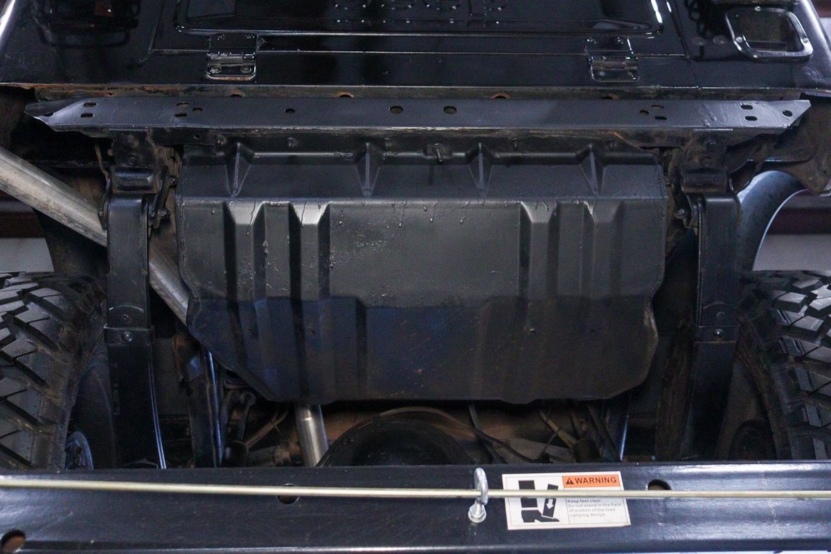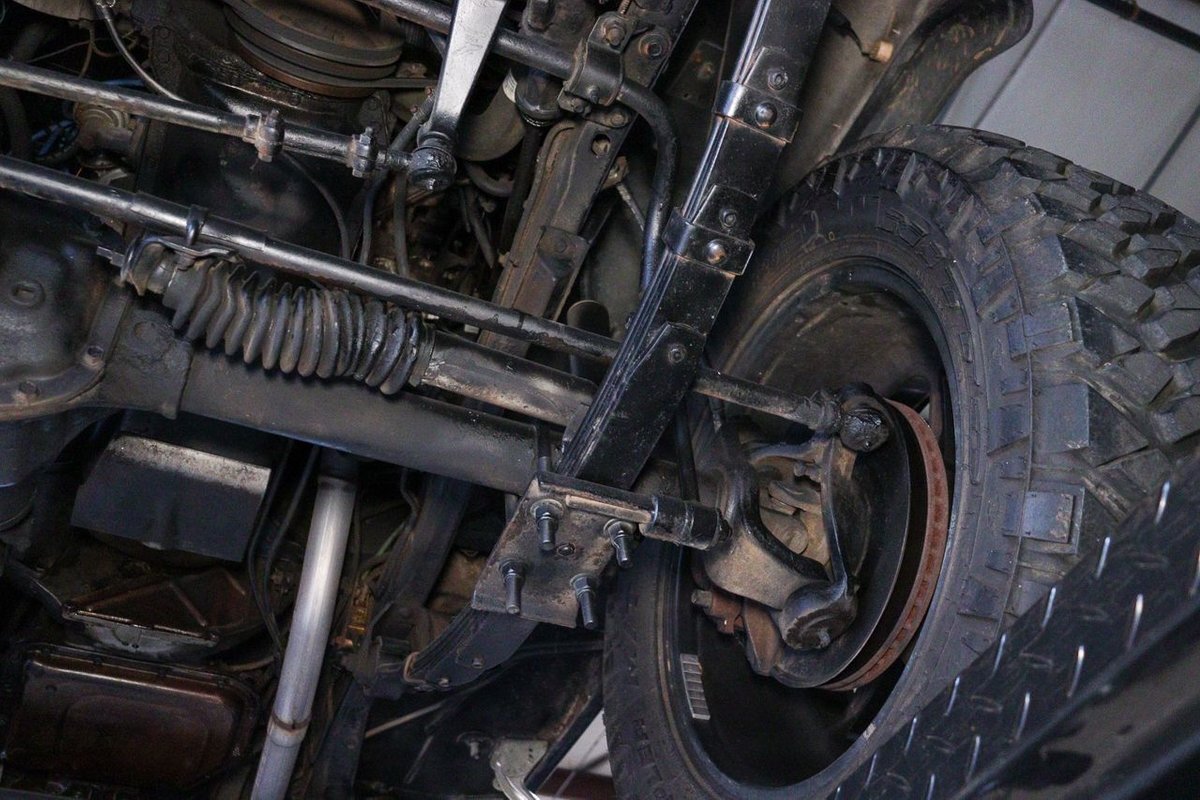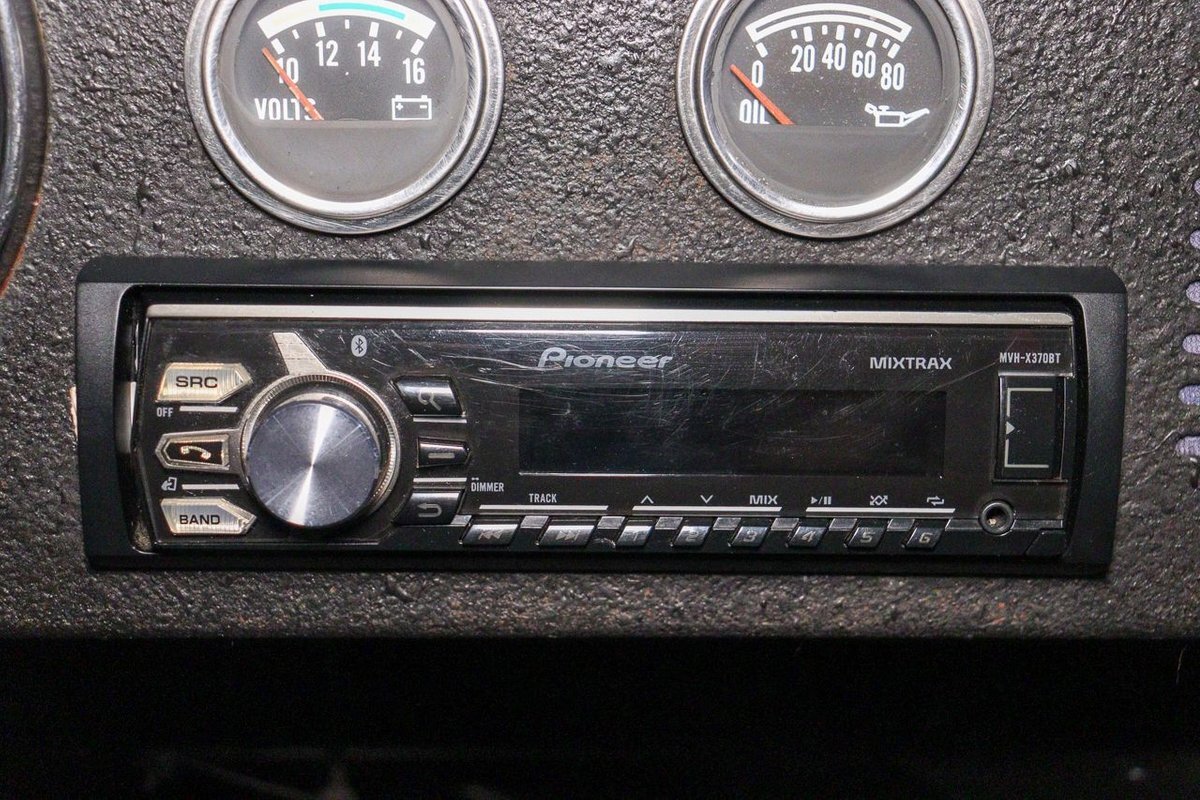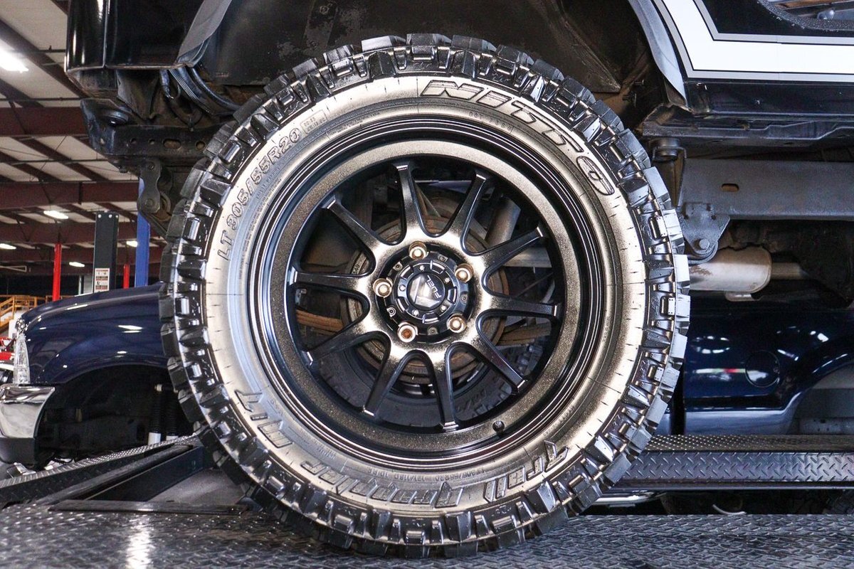 Externally this Jeep is very clean with its black paint that sports accenting silver striping throughout the front of the vehicle. It rides on 20-inch Fuel Off-Road wheels wrapped in Nitto Trail Grappler tires. Inside the vehicle are tan bucket seats in the front and a bench seat in the rear. The floors have been professionally sprayed with bed liner and a Pioneer radio has been installed.