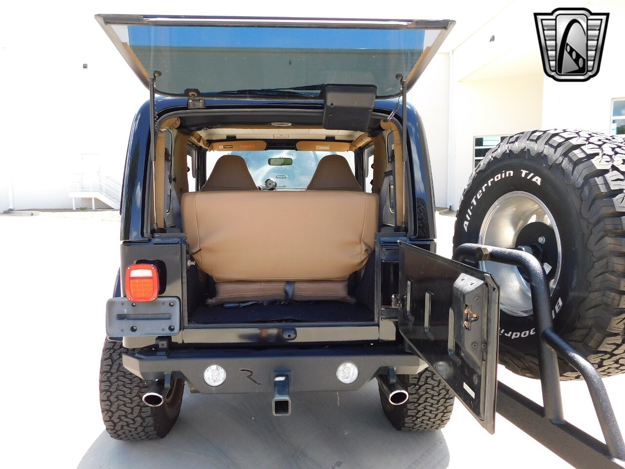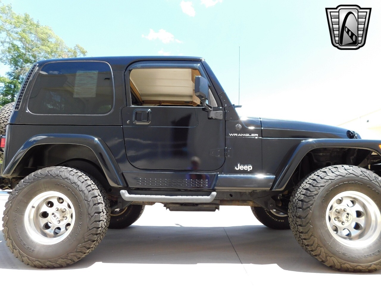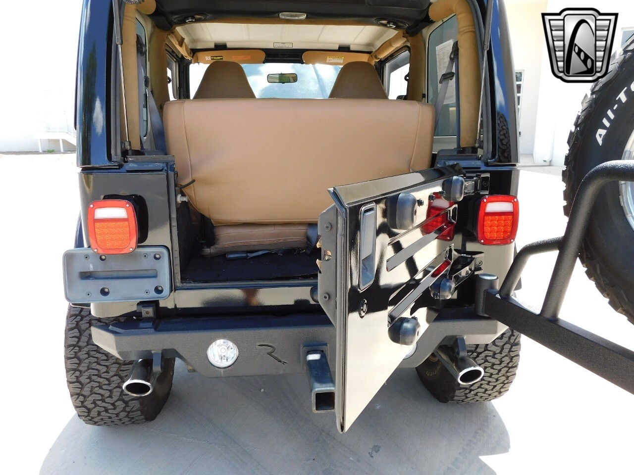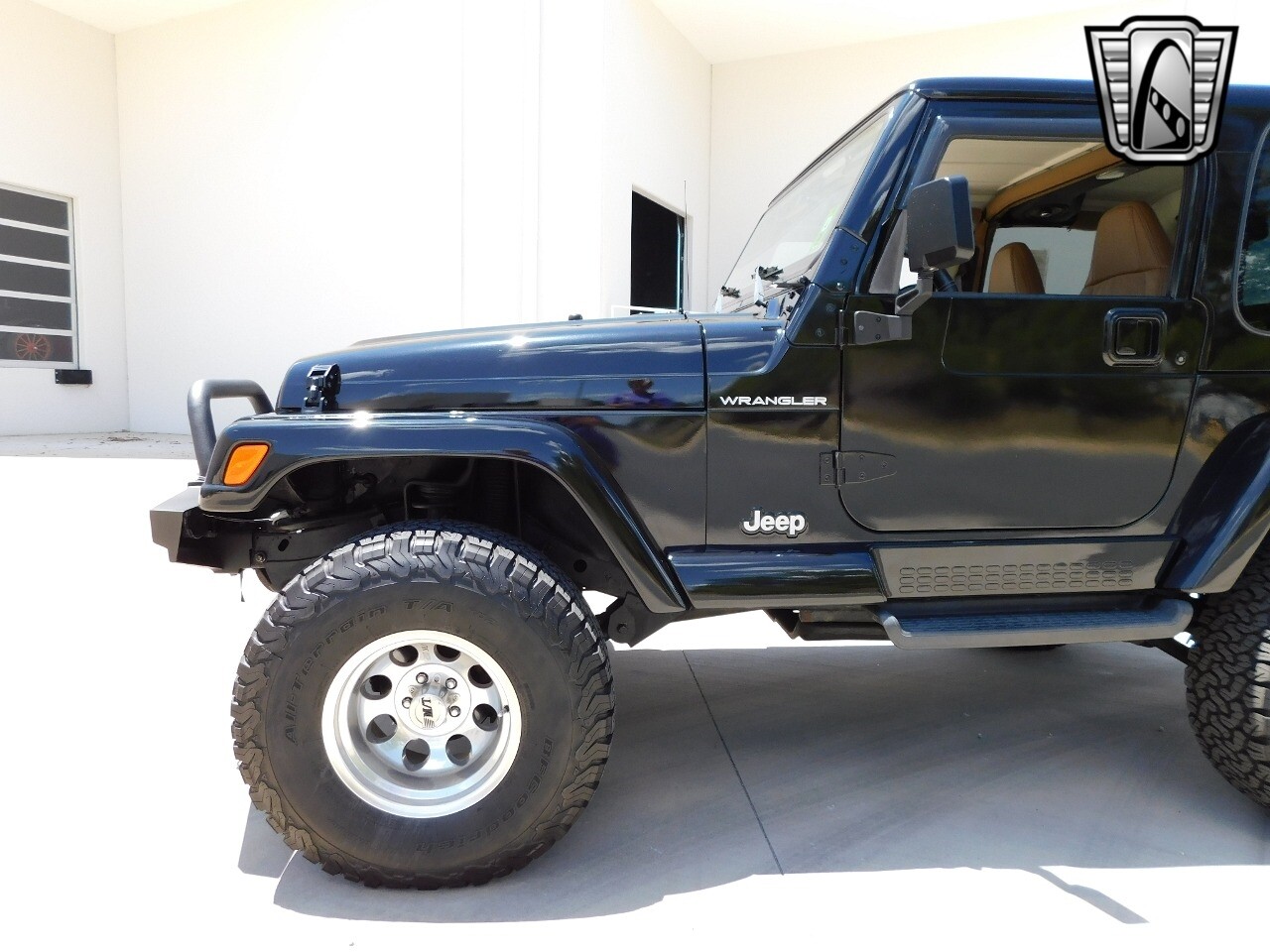 Introducing the 1998 Jeep Wrangler Restomod 350, a striking blend of classic ruggedness and modern performance. This iconic off-roader is presented in a sleek black exterior color that truly complements its robust design. Step inside to find a luxurious tan leather interior, offering a refined contrast and a comfortable ride for both driver and passengers.