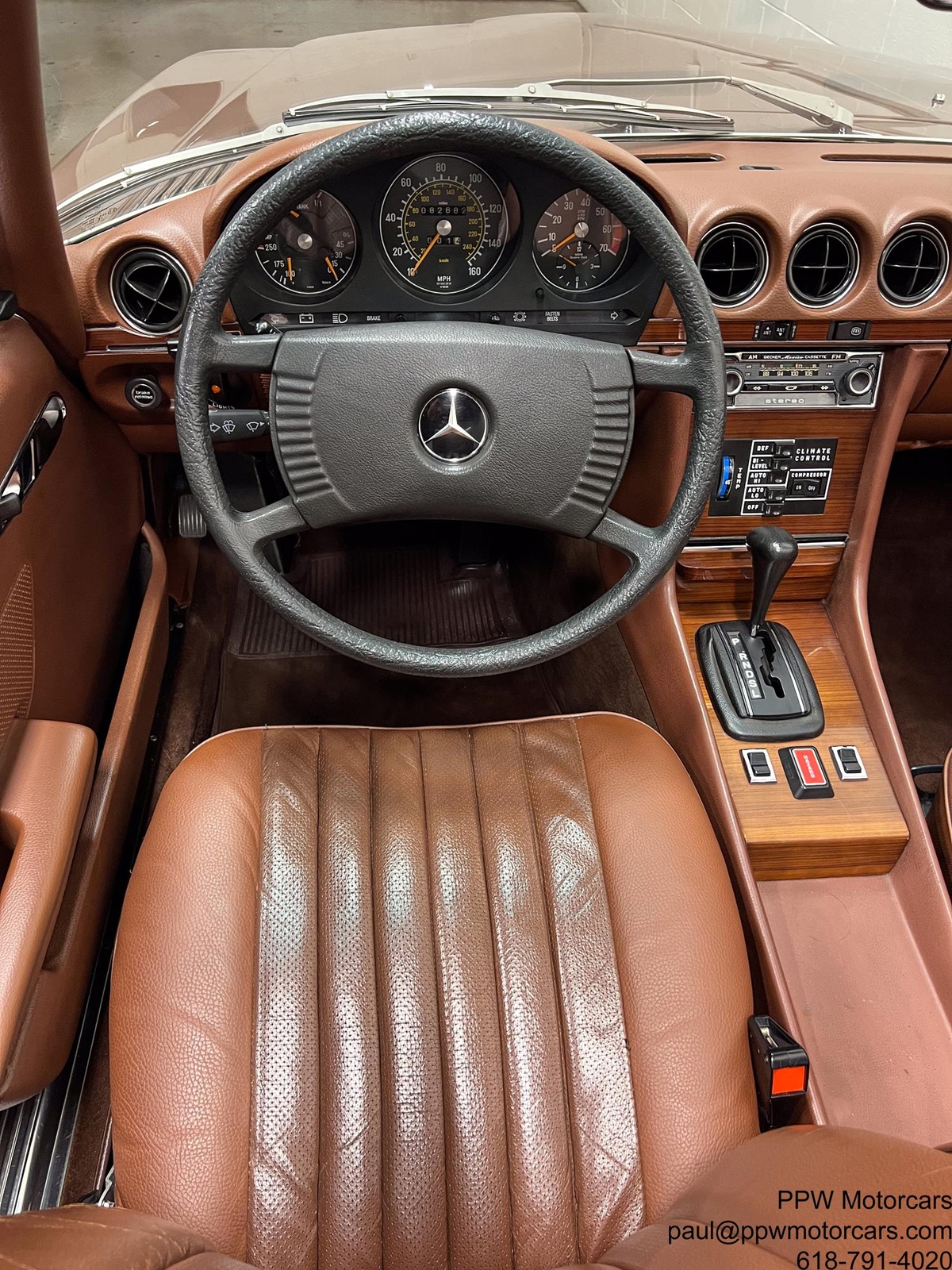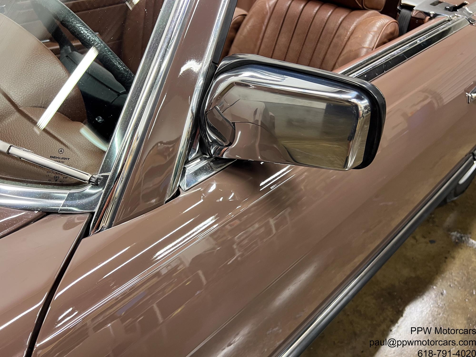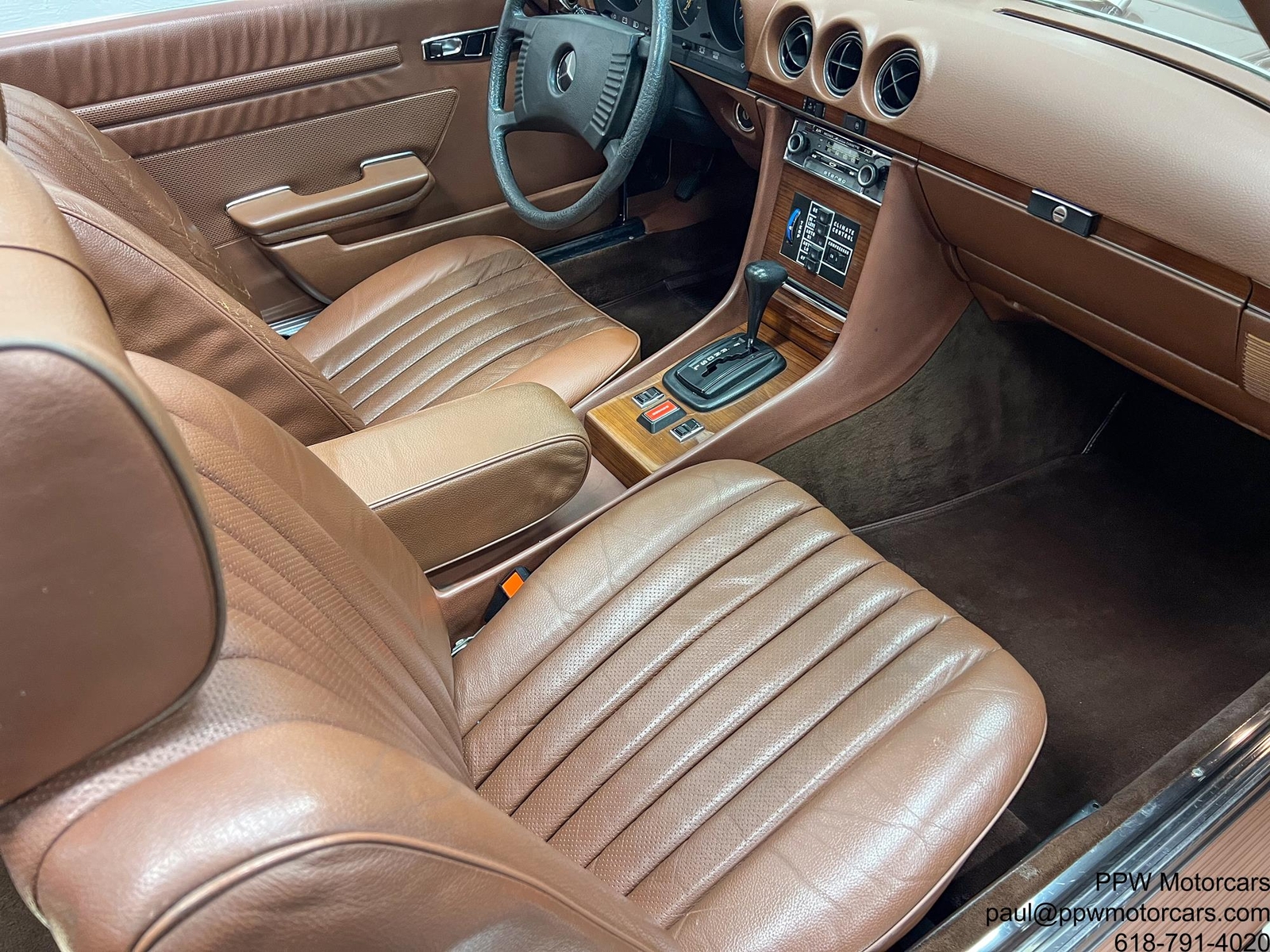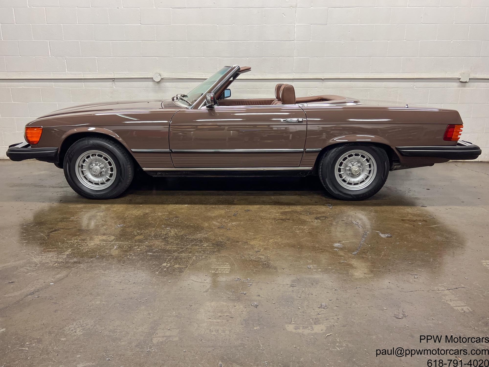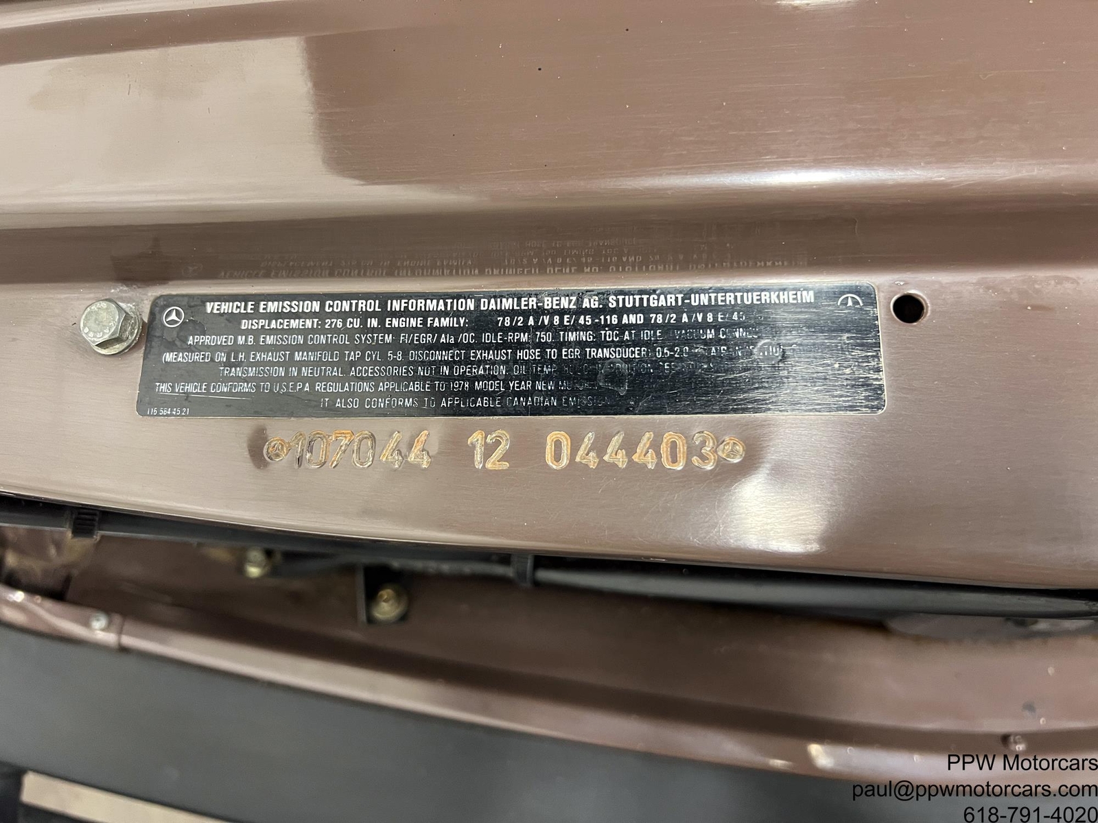 PPW Motorcars is pleased to offer what is one of the finest Mercedes-Benz 450SLs that we have had to date. This beautiful and highly original 1978 Mercedes-Benz 450SL, which was exquisitely ordered in the Original Special Order Only Topaz Brown over a soft, supple, and original Chocolate Leather Interior is as good as they come. This is one of the only 450’s we have had with original paint and interior and we have sold over 100 450SLs. This particular example has been ordered with every option available; fitted with Climate Control Air Conditioning, Topaz Brown Paint, Chocolate Leather Seats, Cruise Control, Power Windows, Hardtop, Right Outside Mirror, Fully Functioning Becker Europa Stereo, Electric Antenna, and Silver Bundt Wheels.