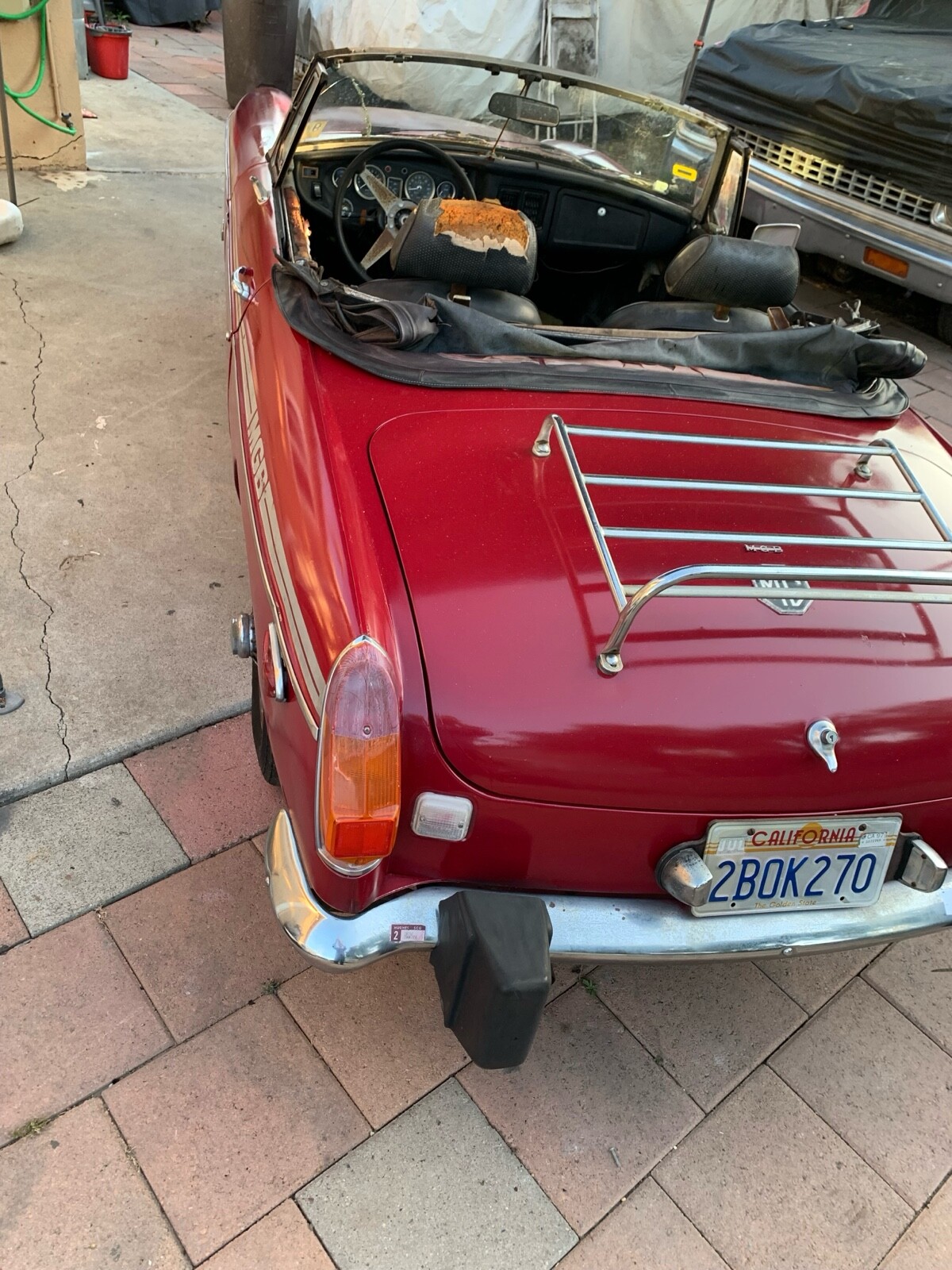 This is a 1974 MG that will not need to be smog in California or I think anywhere else lol the car has been sitting since 1997 this car is a one owner bought it brand new All original absolutely zero rust, anywhere clean floors, frame, quarters fenders trunk, etc. no rust as can see in the pictures the car will need to be restored and will be sold as is complete car no parts missing I have the original title of ownership. The car was running before it sat and the engine does turn with a battery if interested in seeing a video of it sitting, let me know and I’ll send it to you or for more info. Feel free to give me a call at 424-204-3365. Car will be sold with no reserve, good luck and thanks