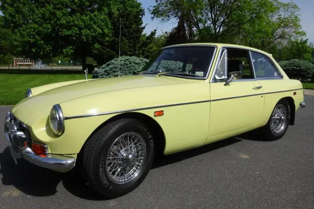 The vehicle is located in Kennebunk, Maine. Buyer is responsible for pickup or shipping.1969 MGB GT. Finished in Primrose Pale Yellow over a black interior and is powered by a replacement 1.8-liter inline-four mated to a four-speed manual transmission with overdrive. Additional equipment includes a Weber carburetor, ANSA exhaust tips, front driving lamps, 14” wire wheels, front disc brakes, a Sanyo cassette radio, and a wood shift knob. This MGB GT is now offered with a British Motor Industry Heritage Trust Certificate, an owner’s manual, records beginning in 2013, and a clean Maine title in the seller’s name.The car was finished from the factory in Pale Primrose Yellow and was reportedly repainted following the completion of repairs around the floors and sills during prior ownership. Exterior features include driving lamps, chrome bumpers, a fender-mounted passenger-side mirror, side moldings, MGB-branded mudflaps, and ANSA exhaust tips. Paint has some very minor flaws befitting its driver status.Chrome-finished 14” wire wheels are mounted with 185/70 Cooper Evolution Tour tires that were installed in 2019. A spare tire is in the trunk. The cabin houses bucket seats that have been re-covered in black cloth with darker piping, along with black vinyl door panels and matching carpets. Appointments include lap belts for front occupants, a Sanyo cassette radio wired to Pyle speakers in the doors, a cigar lighter, MG-branded floor mats, a wood shift knob, and crank windows. Air conditioning, a dealer installed option, was installed and then, understandably removed.A three-spoke wood-rimmed steering wheel fronts Smiths instrumentation consisting of a 7k-rpm tachometer, a 120-mph speedometer, and auxiliary gauges for fuel level, oil pressure, and water temperature. The speedometer was serviced in 2023.The replacement 1.8-liter inline-four was installed during prior ownership and was fitted with a Weber carburetor with an electric choke in 2013. The fuel tank was replaced in 2016. Work in 2019 included replacing the fuel pump, battery, speedometer cable, starter, and oil pressure sending unit. The water pump was replaced in 2020, along with the windshield washer pump. Power is sent to the rear wheels through a four-speed manual transmission. A replacement clutch, hydraulic cylinders, and overdrive unit were installed in 2013. Receipts are available.The British Motor Industry Heritage Trust certificate shows a May 1969 production date as well as factory colors and identification numbers. An owner’s manual is also included in the sale along with various parts and repair manuals.No rust. The vehicle drives without any problems.The vehicle is not driven in the winter and is stored inside from October to May.Please contact seller with questions.