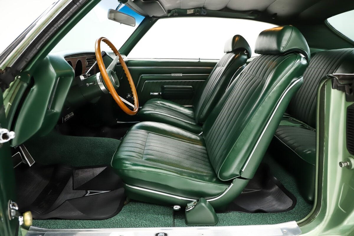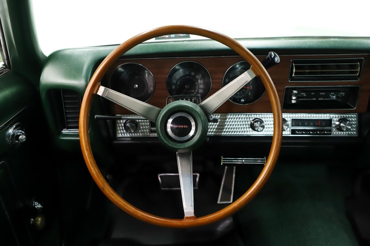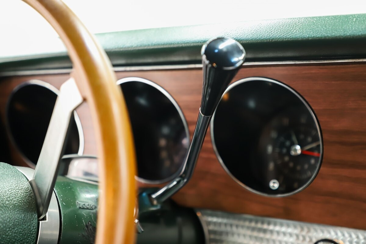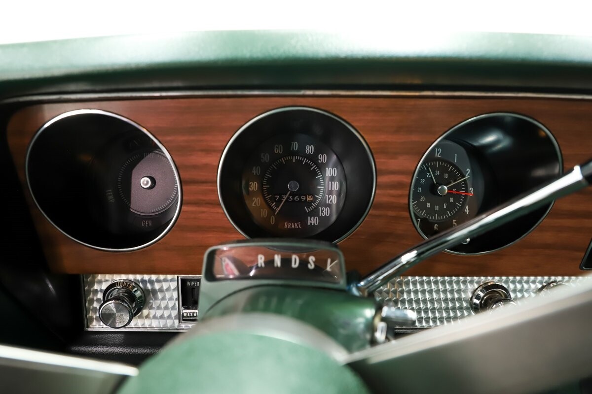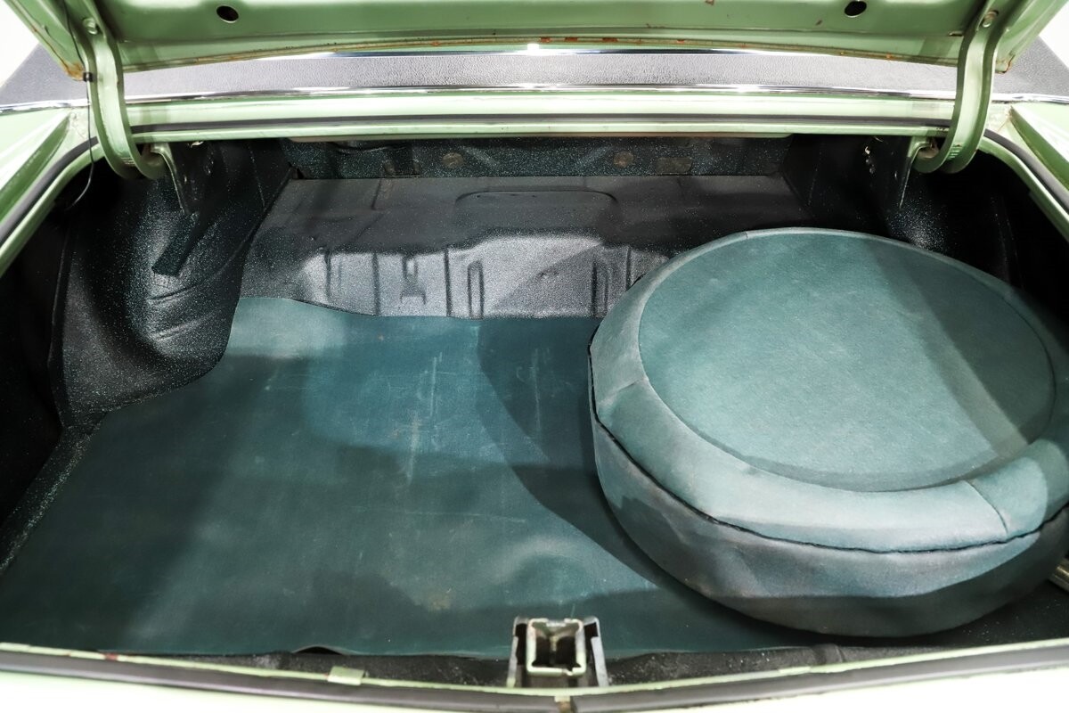 TRUNK COMPARTMENT: 100% original metal; no cuts or splices. Under the trunk lid and the jamb still have the original green paint and the original jacking instructions decal is still in place! The trunk mat and tire cover were replaced. It does have complete jack and spare assembly.