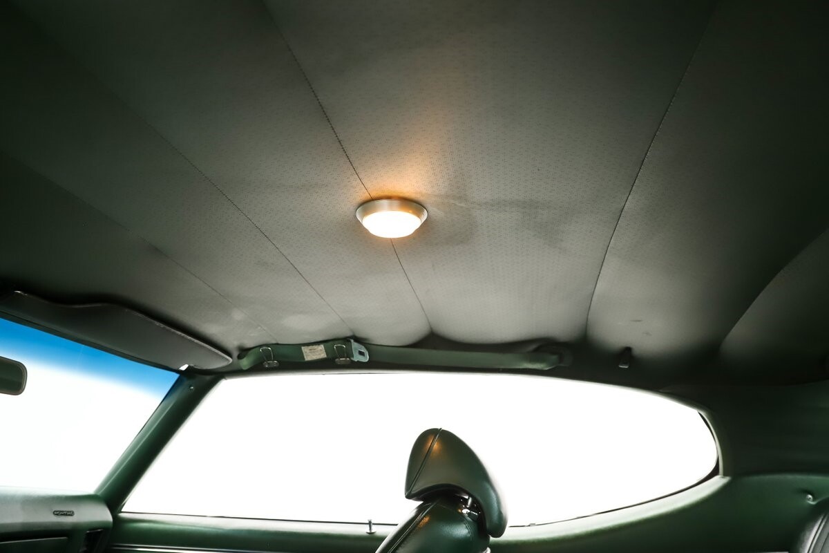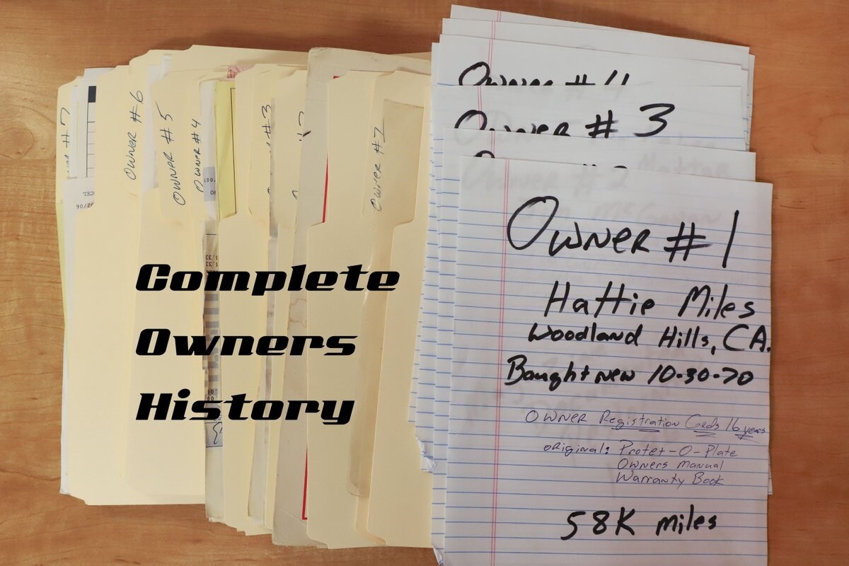 EXTERIOR: California built car with all its original sheet metal including the fenders, quarters, hood, trunk, doors, roof, floors, rockers etc. The car is arrow straight, all the panels fit square and flush. No rust or damage. It's only been repainted one time, back in 1986. Beautiful original Palisade Green color. They used the correct ditzler acrylic lacquer. It looks like it was just done a few weeks ago! It's very smooth and glossy. Even the front rubber bumper is still in excellent shape. There are a few minor imperfections I point out in the video. All four correct T3 headlamps. Original windshield. The vinyl top was replaced. Stainless trim is straight and shiny, rear bumper was rechromed. It's sitting on a set of restored Rally ll wheels and reproduction redline tires.