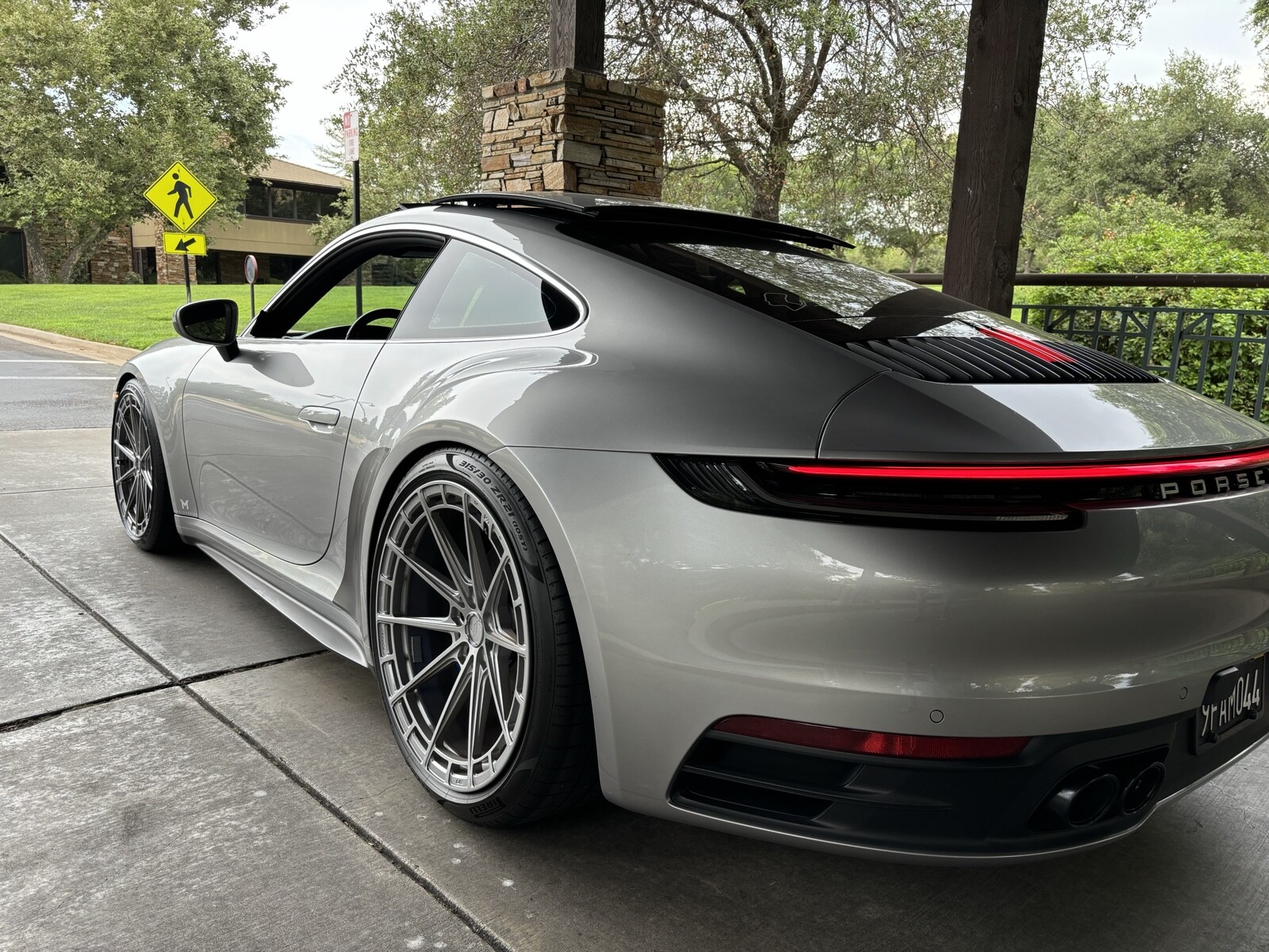 This is a gorgeous 2020 Porsche 911 Carrera S. This vehicle has the sport chrome as well as the embossed Porsche crests in the seat headrest. The car sits on a new set of very lightweight 21 inch forged wheels.Car is lowered with H&R height adjustable springs which make the car handle amazingly.The back seat of the car has a custom powder coated Studio RSR cage with fire extinguisher mounted on cage.You will notice custom tartan plaid interior I had done in the very rear window as well as the backseat lumbar support pads. I had the exhaust tips powder coated satin black instead of the factory silver. I also installed an M tune on the car boosting the Turbo’s to 19 psi and giving the car 540 horsepower. I was building this car to take to car shows but unfortunately I have 2 other projects I need to finish so I’m letting this one go. Registration was paid last month!